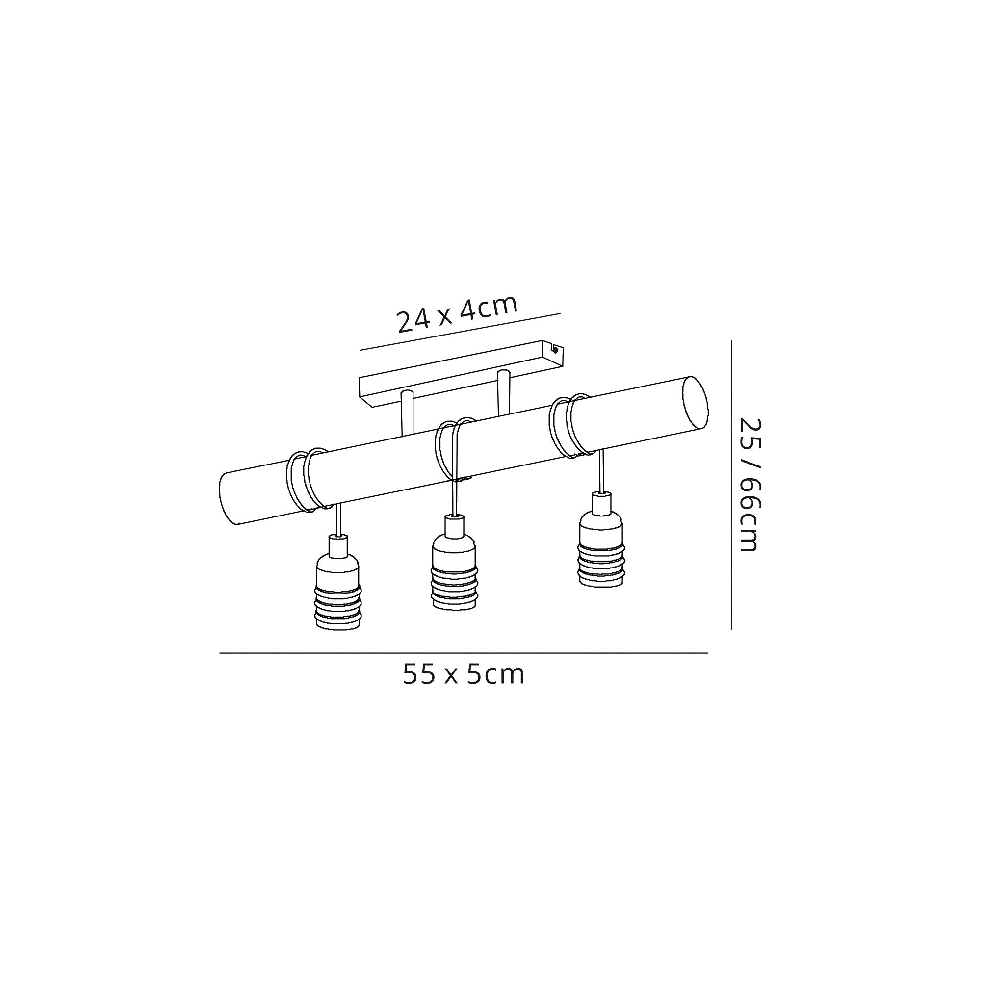 Bohar Flush Ceiling, 3 x E27, Medium Oak/Antique Brass