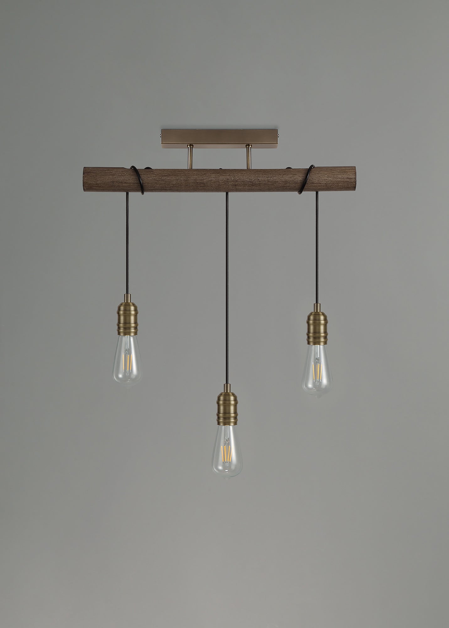 The popular trend of using woodland materials in interior design has been interpreted by our designers to create the Bohar collection. The medium oak logs are kached with the black cable of the E27 lampholders presenting the imagery of vines around tree branches, while the antique brass metalwork is still in keeping with theme of this design. Available as a ceiling light, pendant, wall lamp or table lamp, Bohar creates a natural, rustic ambience.
