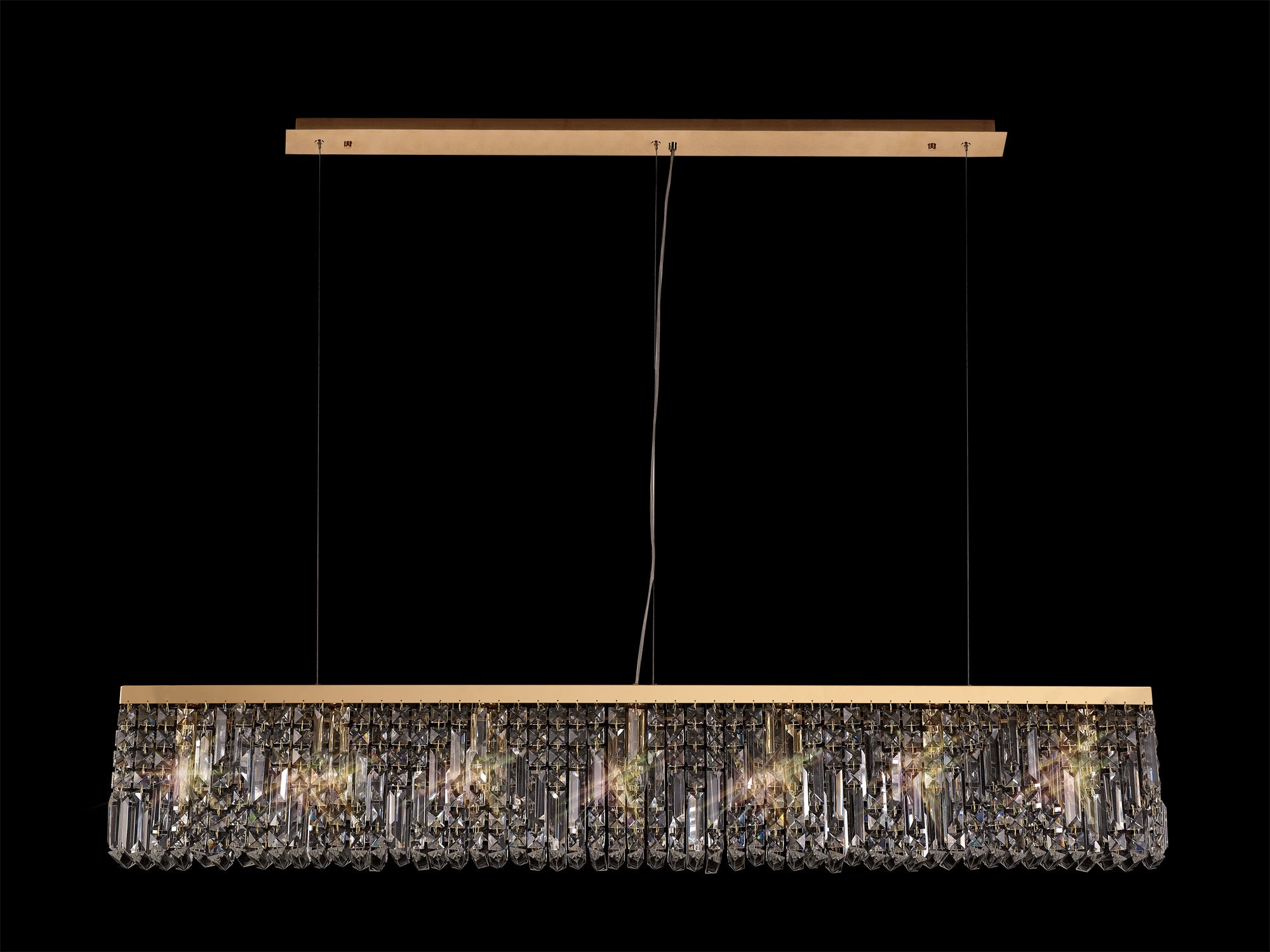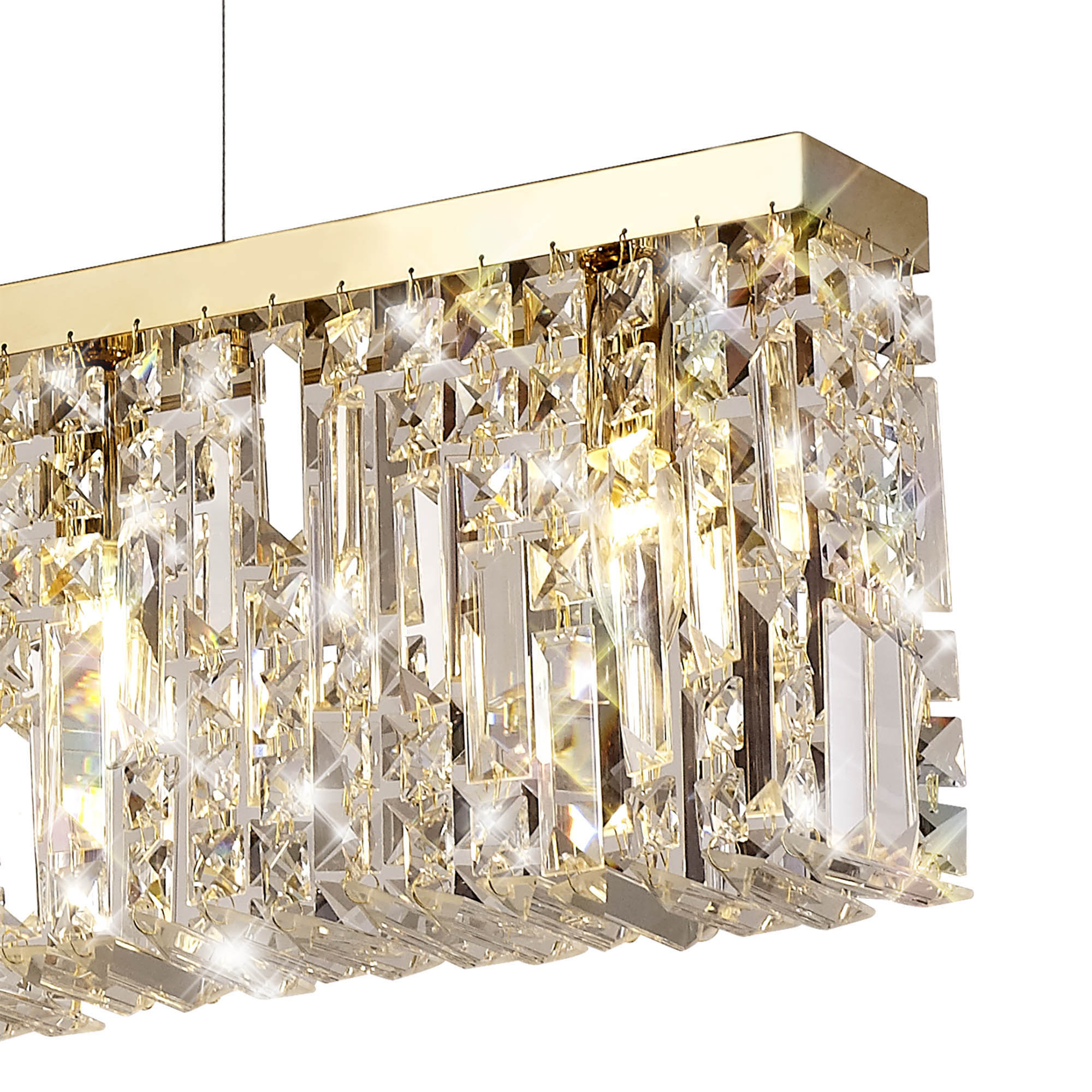 Mayfair 138x9cm Linear Pendant Chandelier, 7 Light E14, Gold/Crystal - LO178193