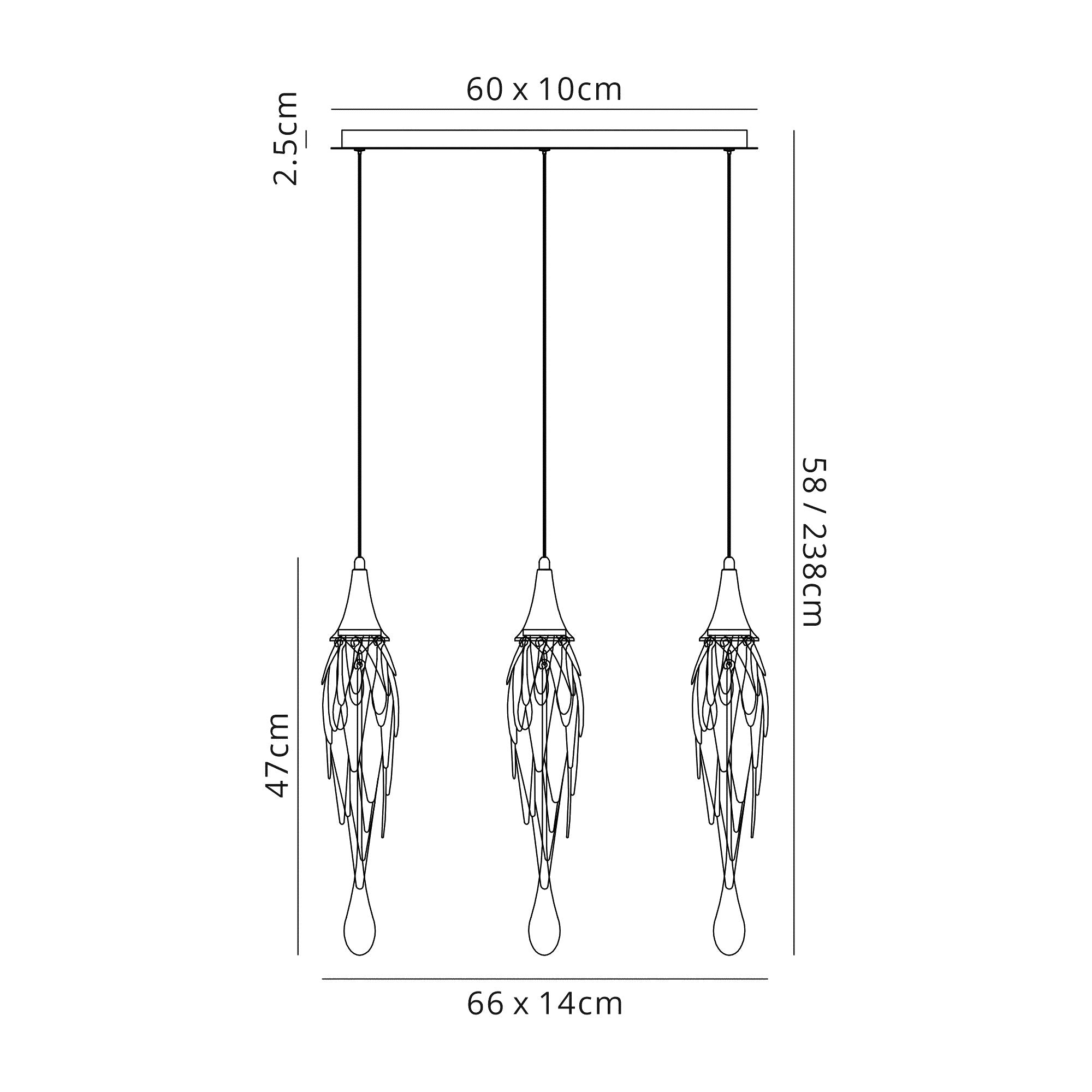 Isotope Linear Pendant Bar, 3 x GU10, Polished Chrome
