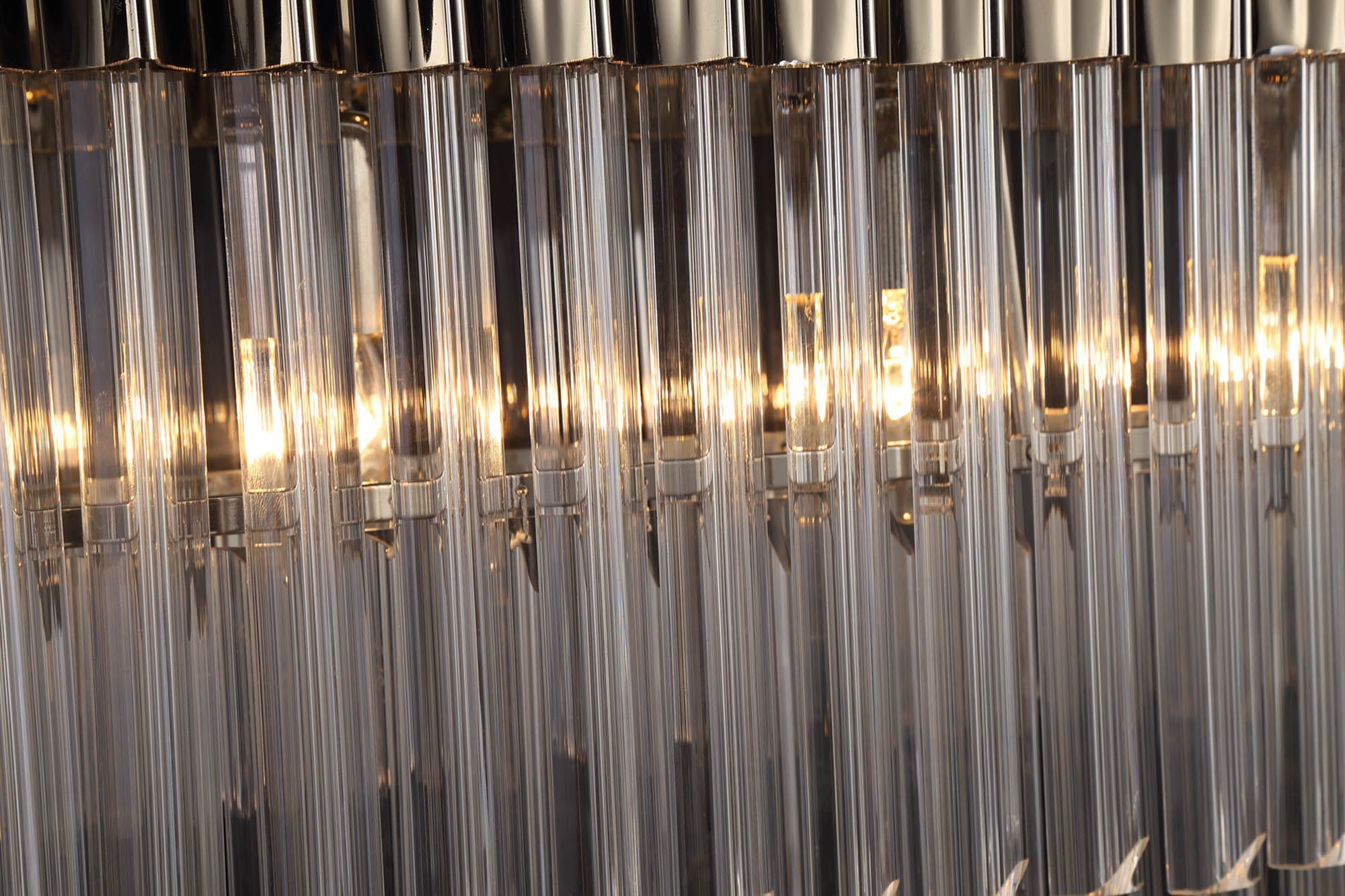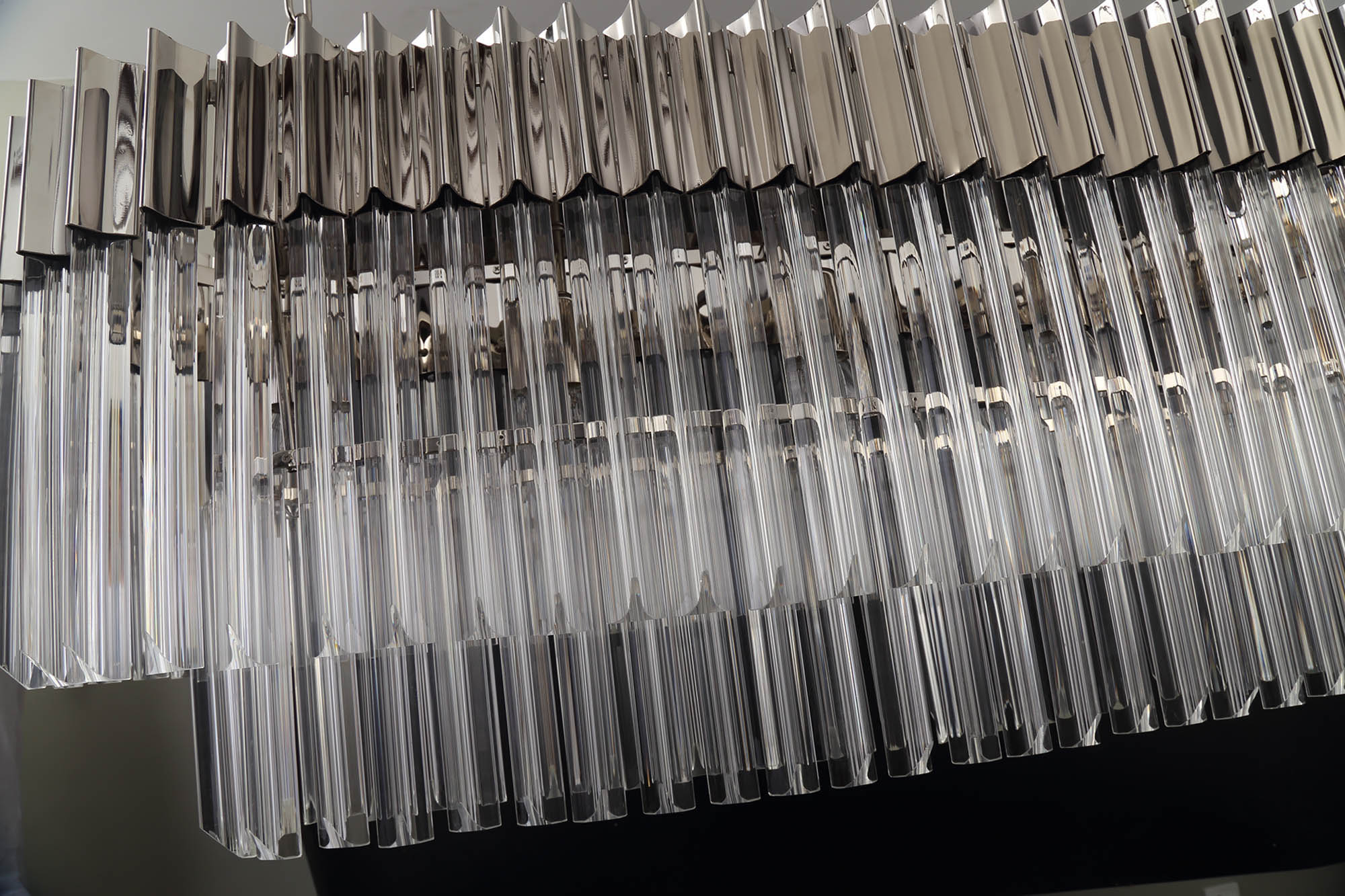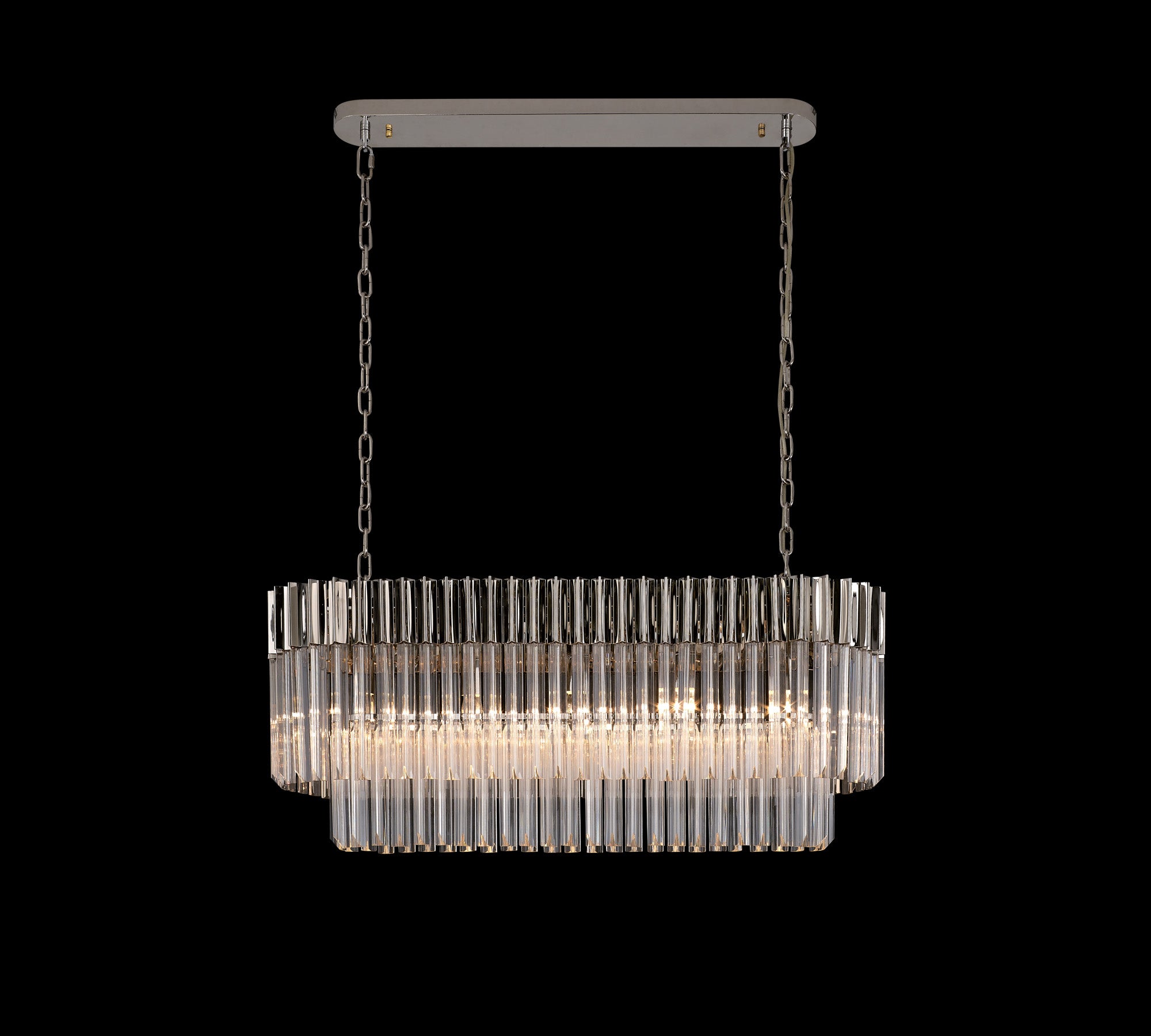 The popularity of the Knightsbridge collections initial release has been so overwhelming that the collection has now been extensively expanded to meet a wider range of specification needs. This contemporary design which originally combined a traditional brass finish with clear crystal glass pieces, now offers a polished nickel finish with either clear or smoked glass. The long angular shape of the glass which are in a tiered form, can now be found on larger more dramatic designs including a five tier and rectangular pendant to name only a few. Knightsbridge has a traditional noble effect composed with modern materials to create a range suitable for either a modern or more traditional room setting. The unique pyramid forms protruding from the frame provide an intriguing overall shape across this comprehensive collection.