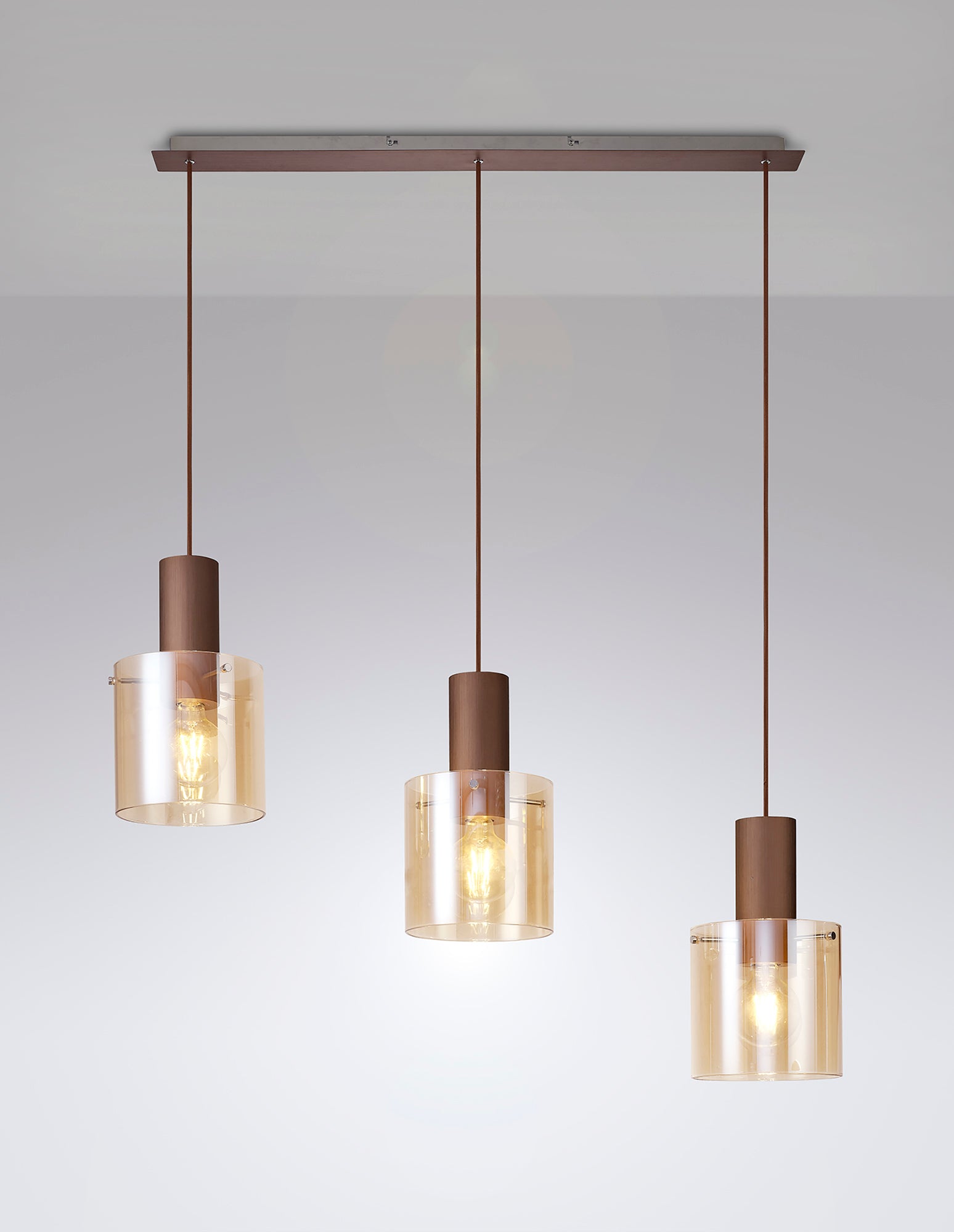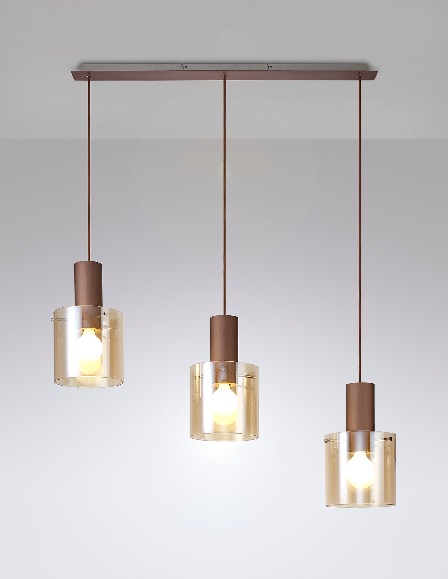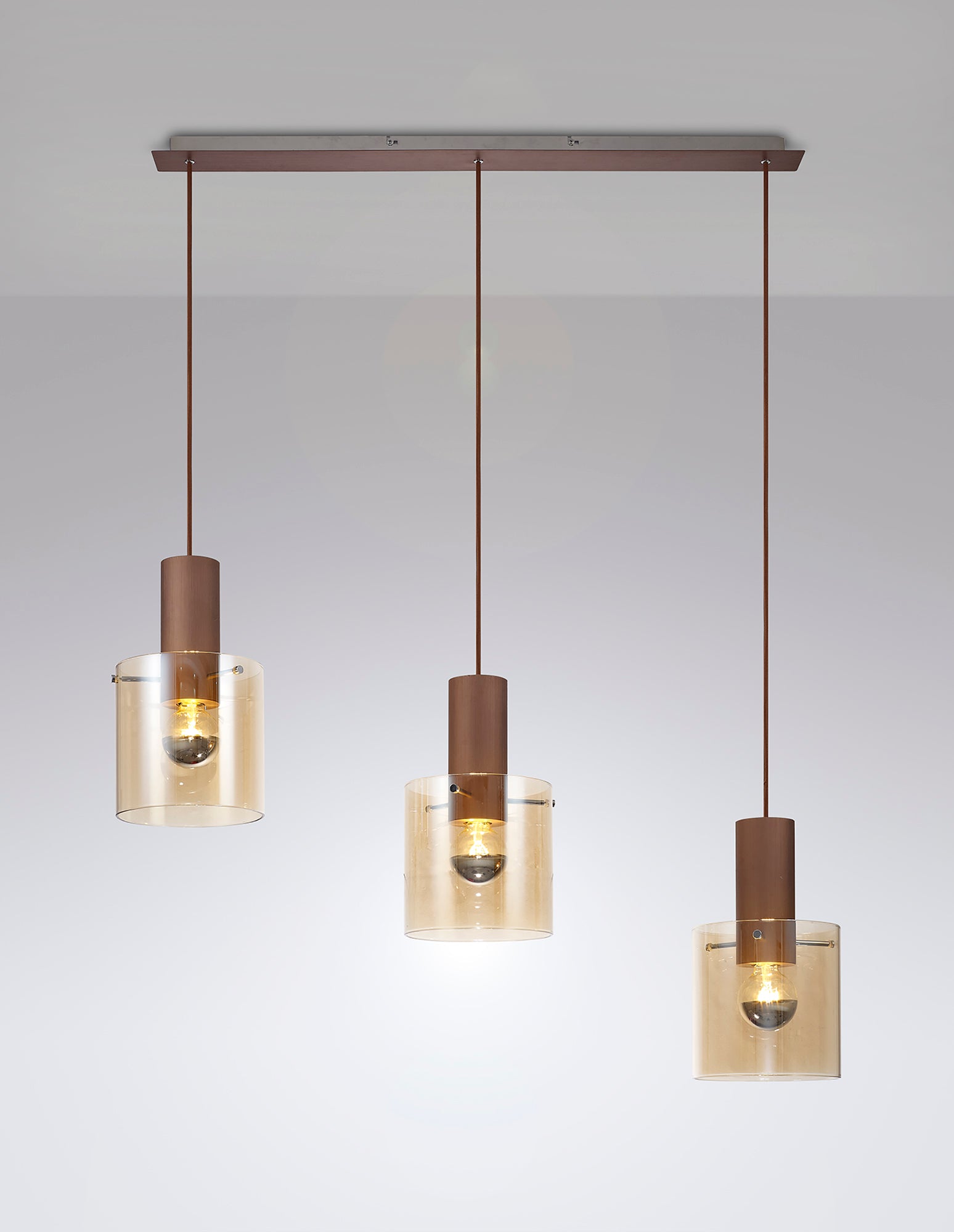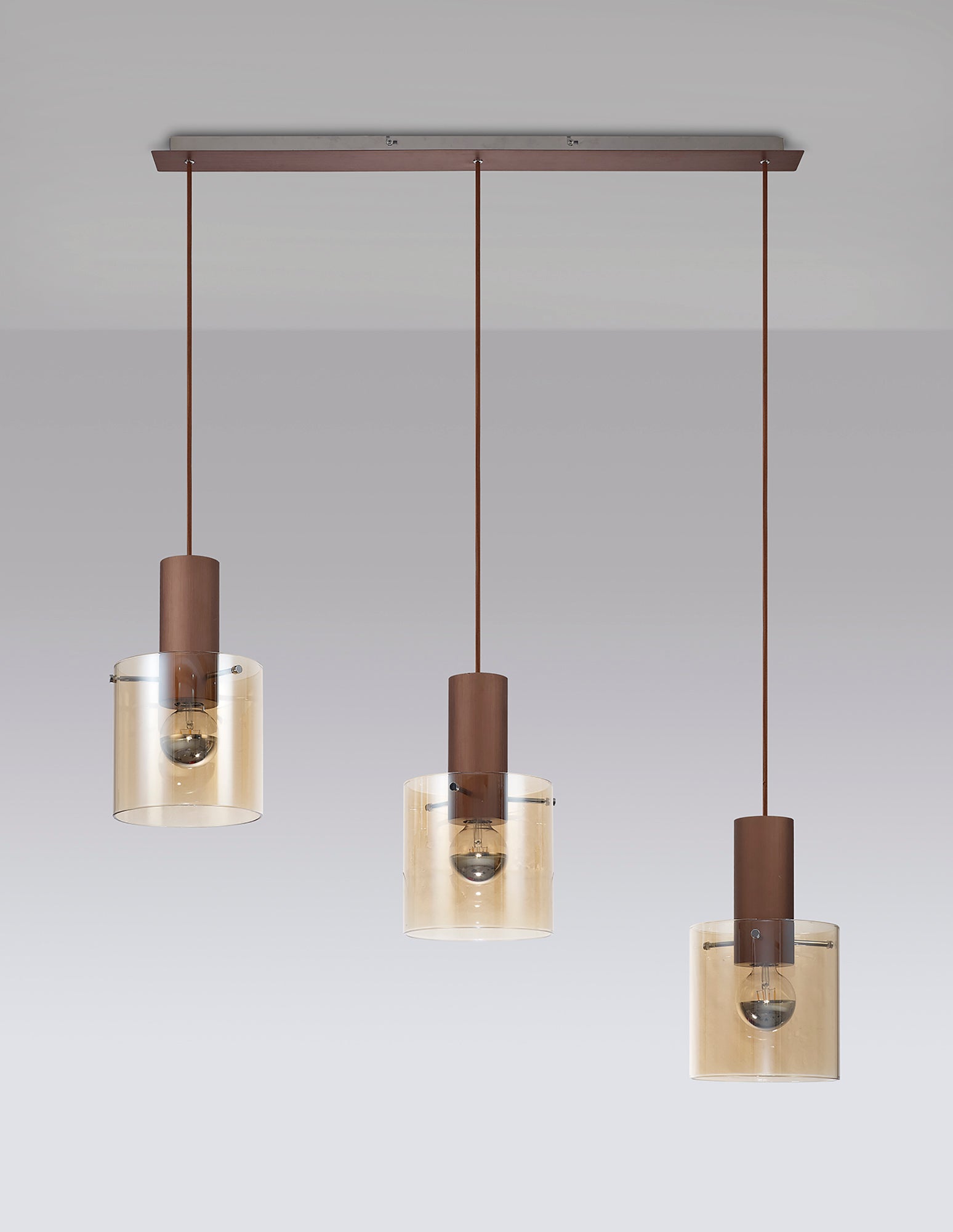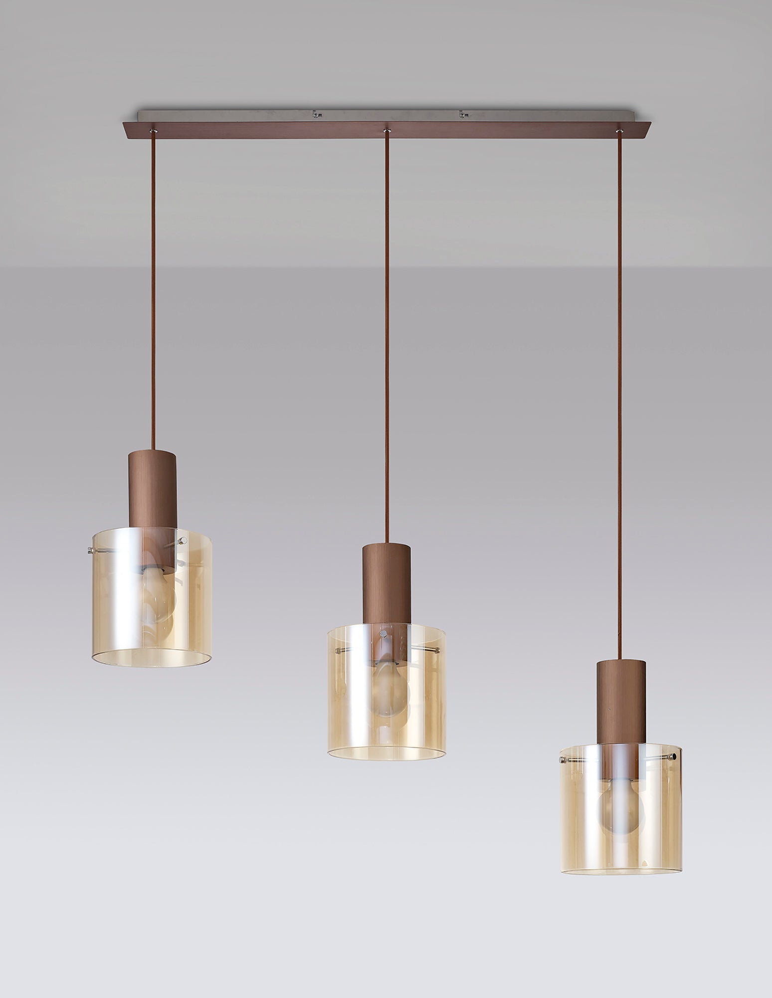 Lois Linear 3 Light Mocha & Amber Smoked Glass Adjustable Pendant LO182623 This beautiful pendant features adjustable height and a modern mocha and amber smoked glass design, perfect for the modern home. Enjoy the perfect balance of style and function with this adjustable pendant light.