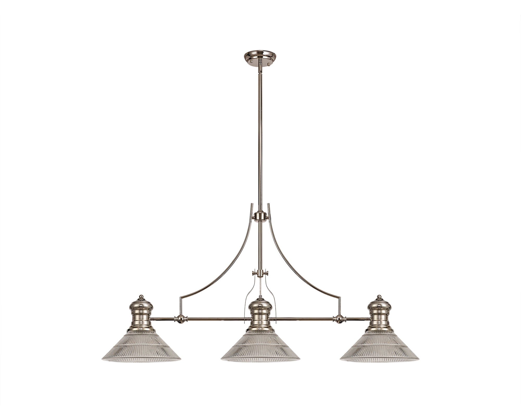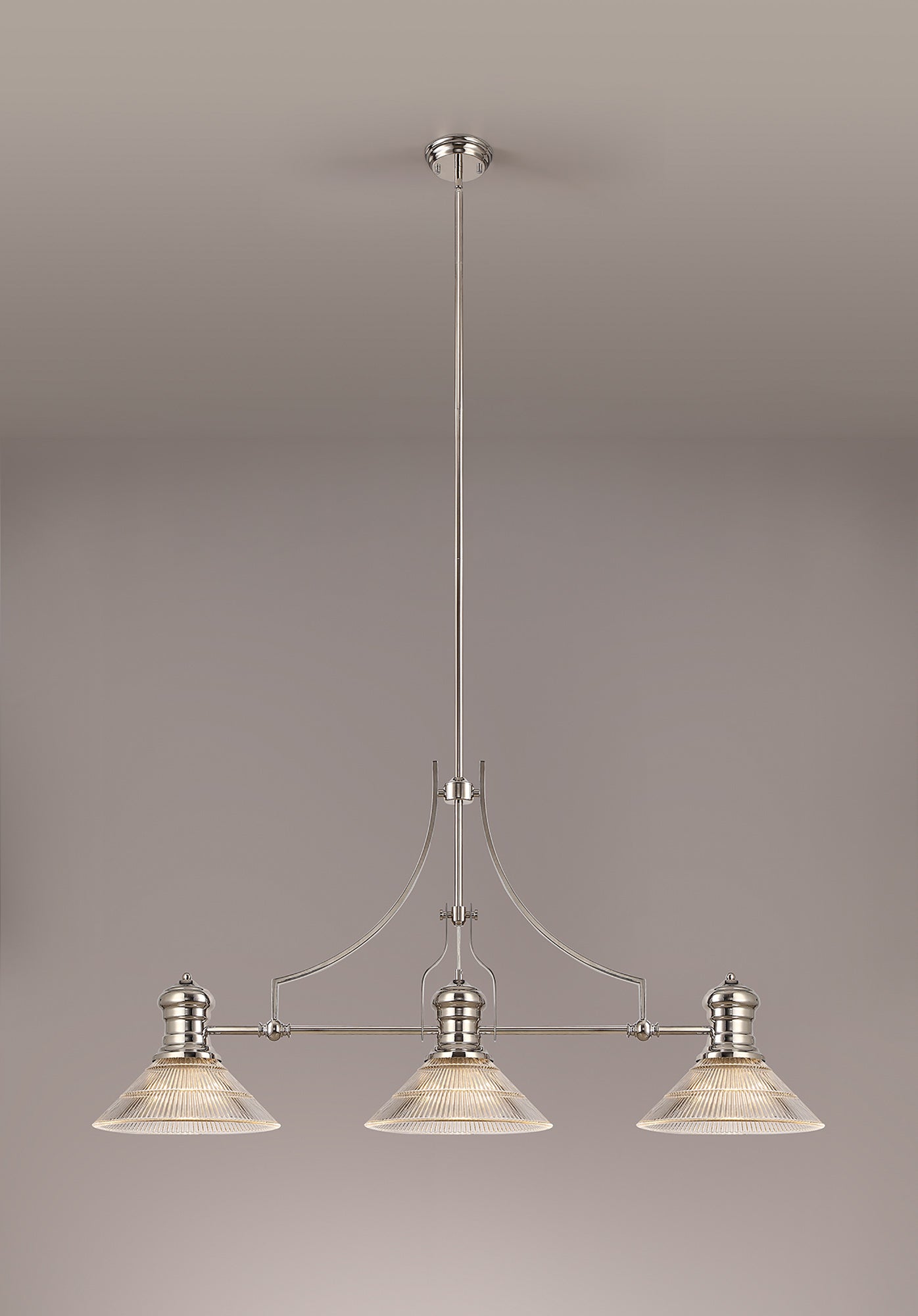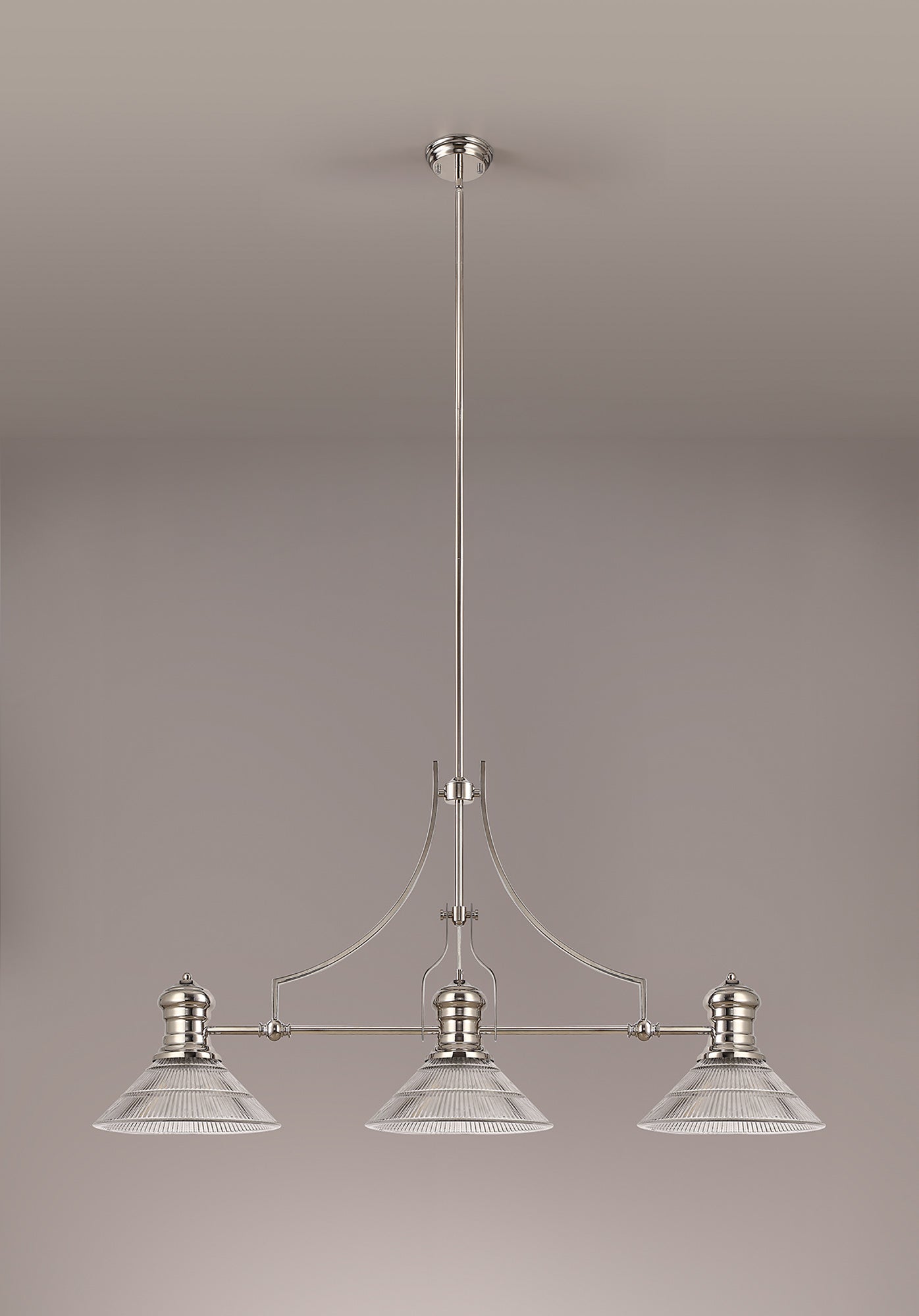 Docker 3 Light Linear Pendant E27 With 30cm Cone Glass Shade, Polished Nickel, Clear