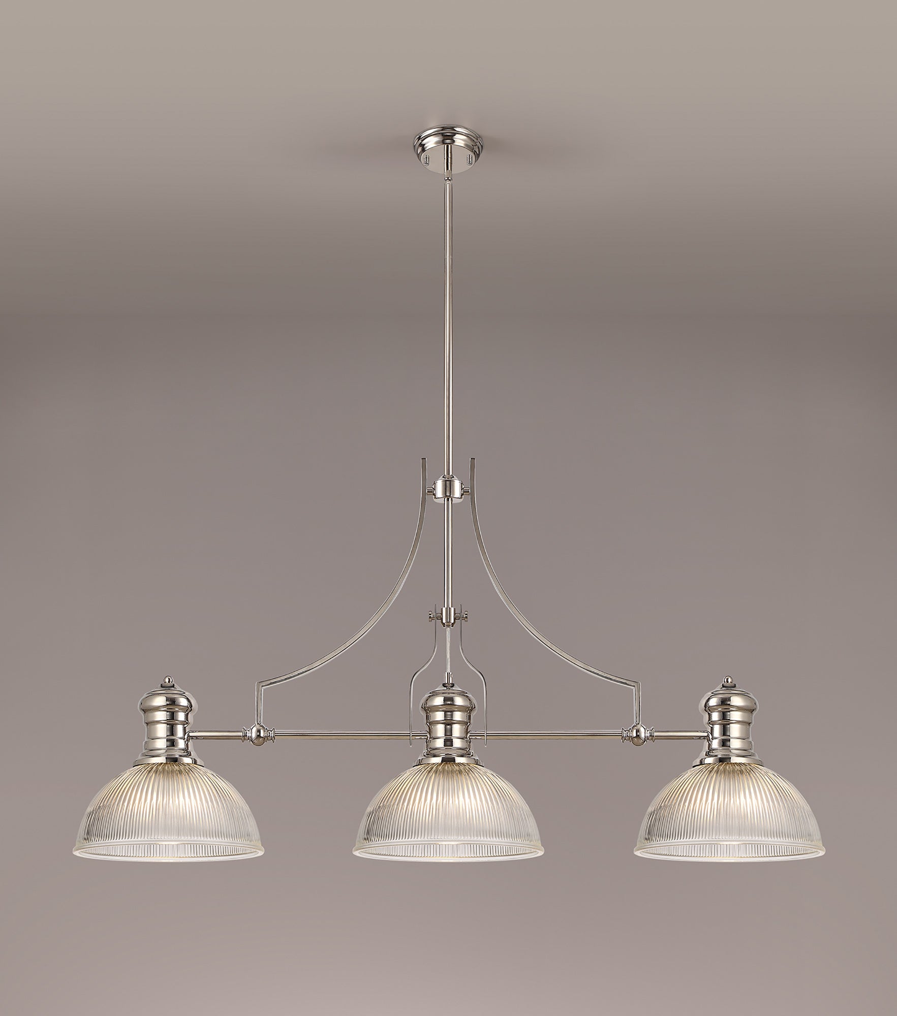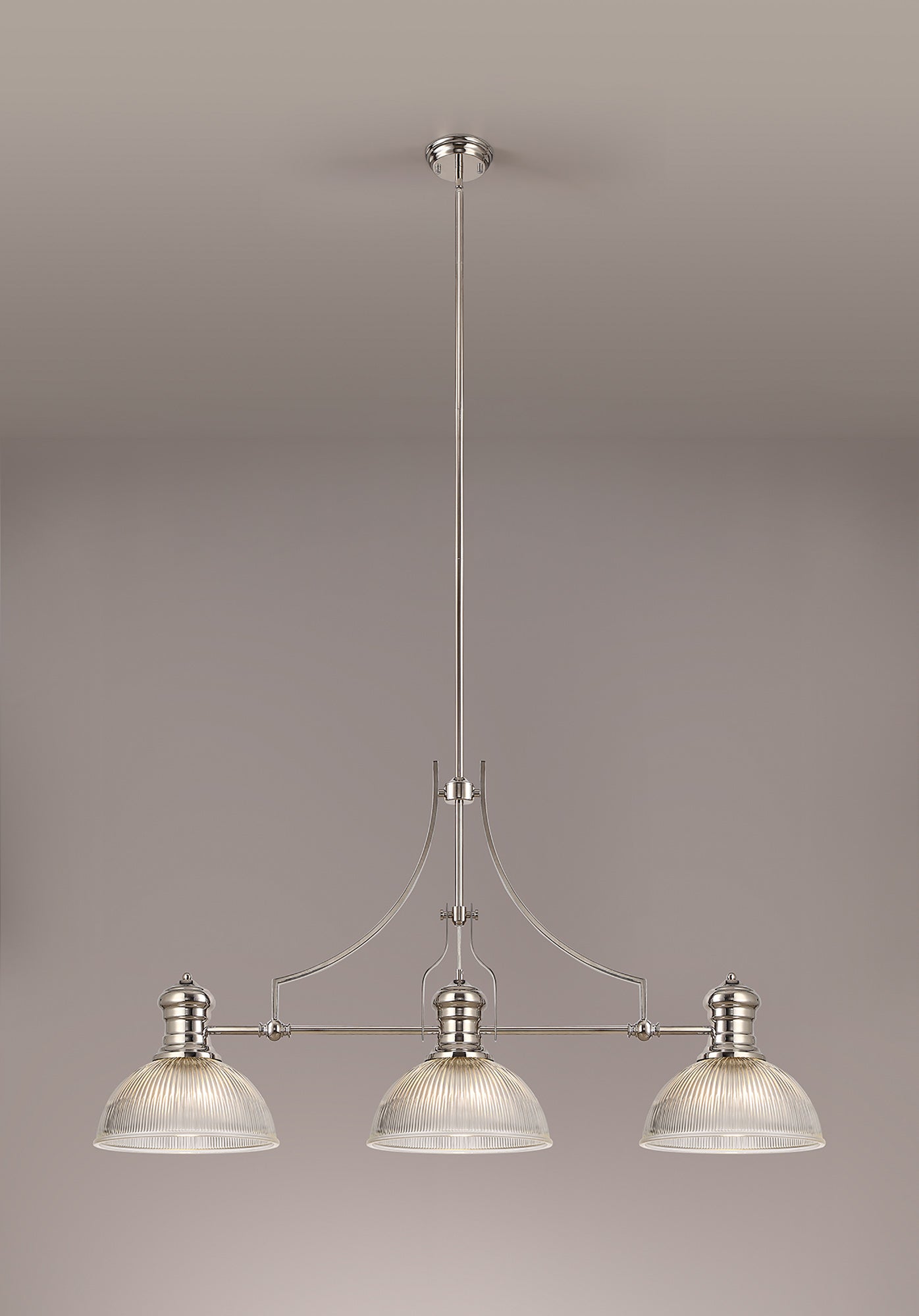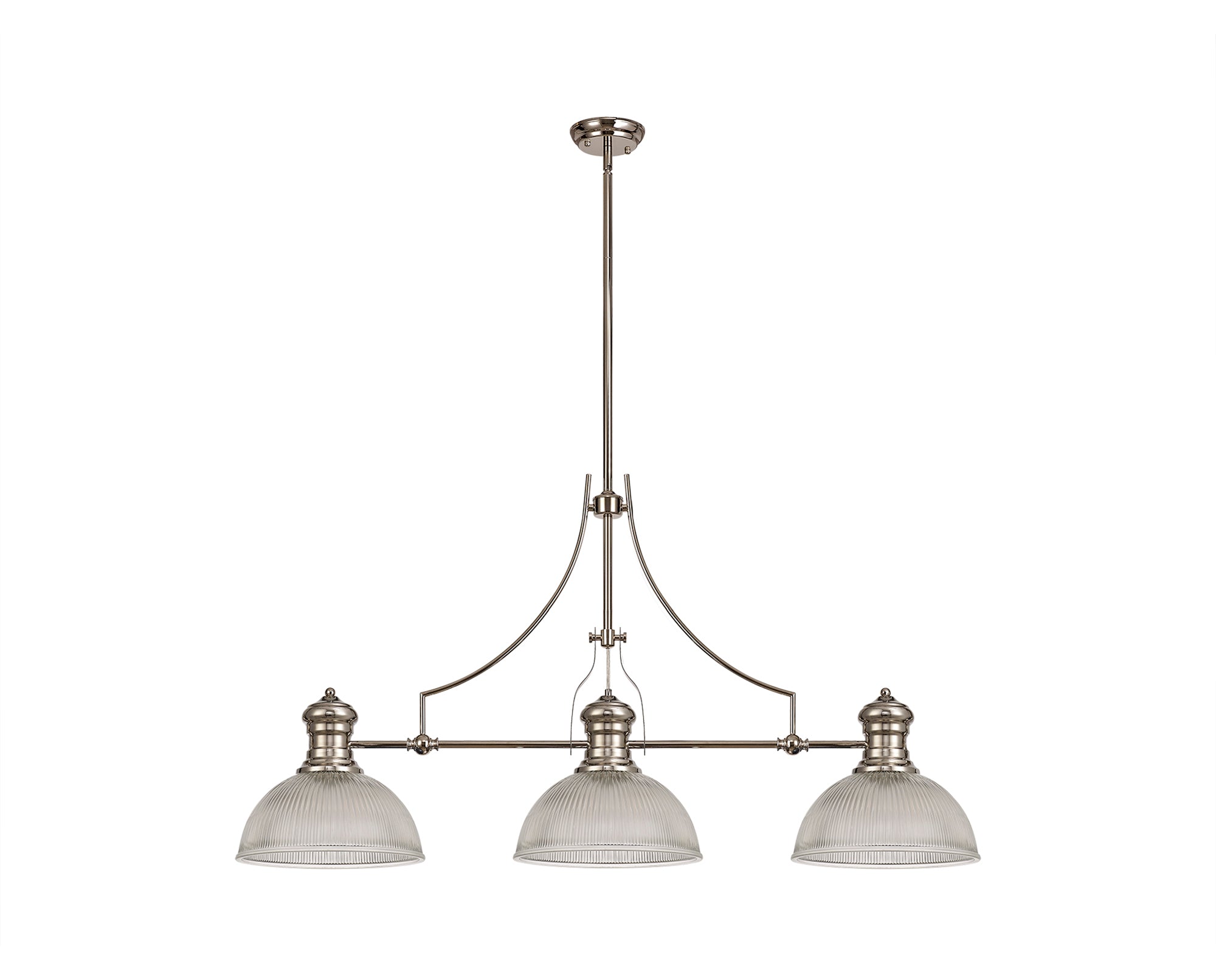 Docker 3 Light Linear Pendant E27 With 30cm Dome Glass Shade, Polished Nickel, Clear