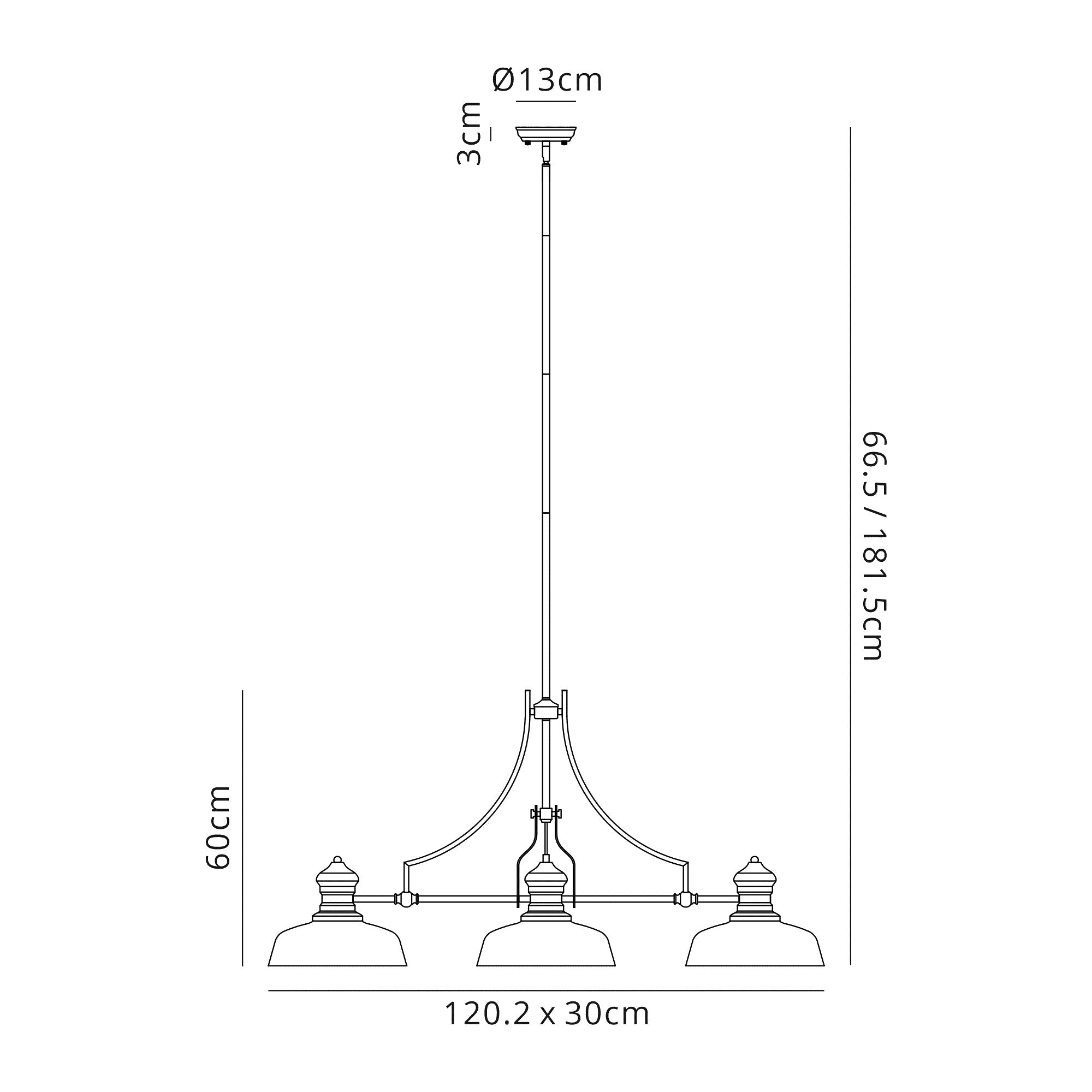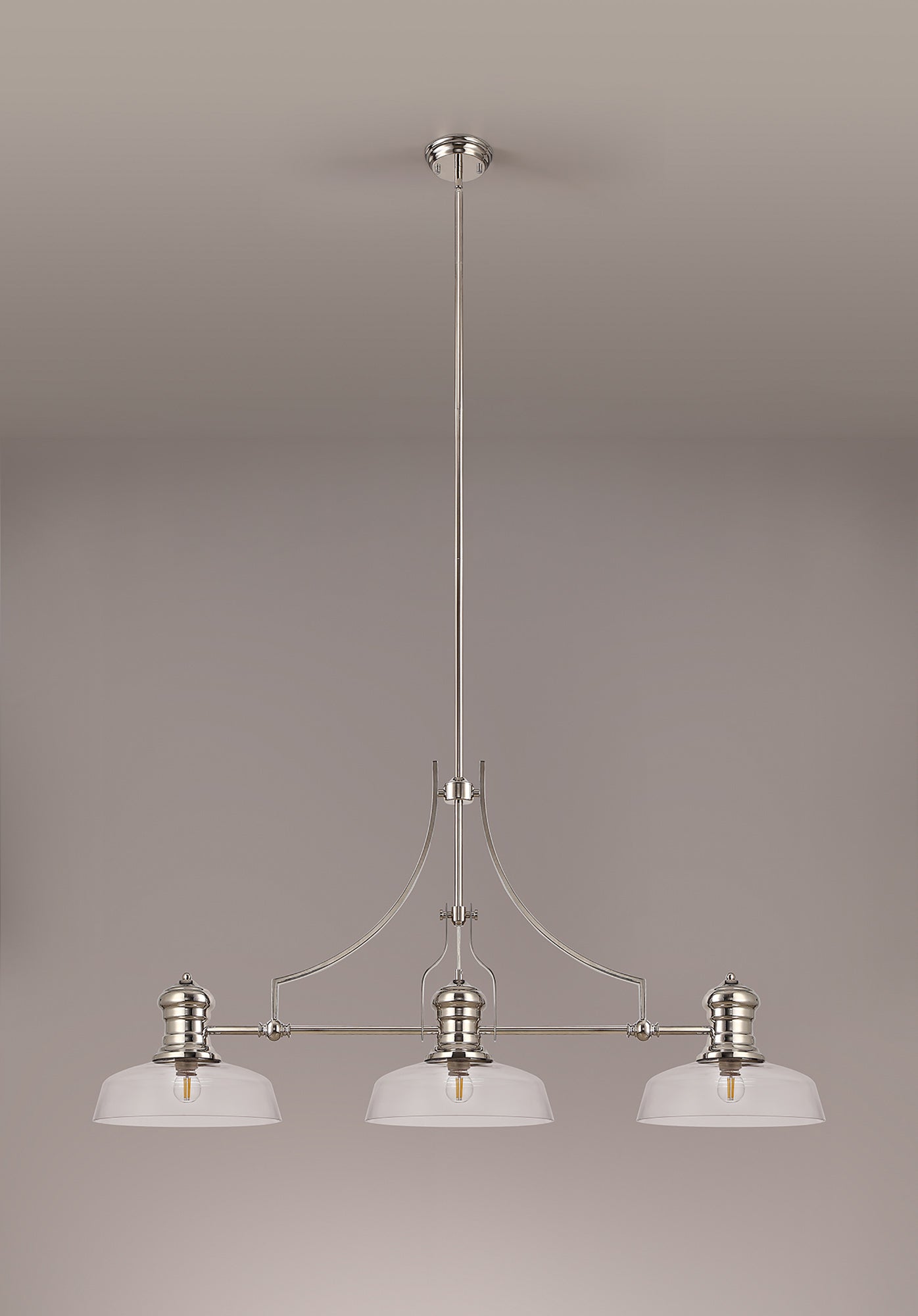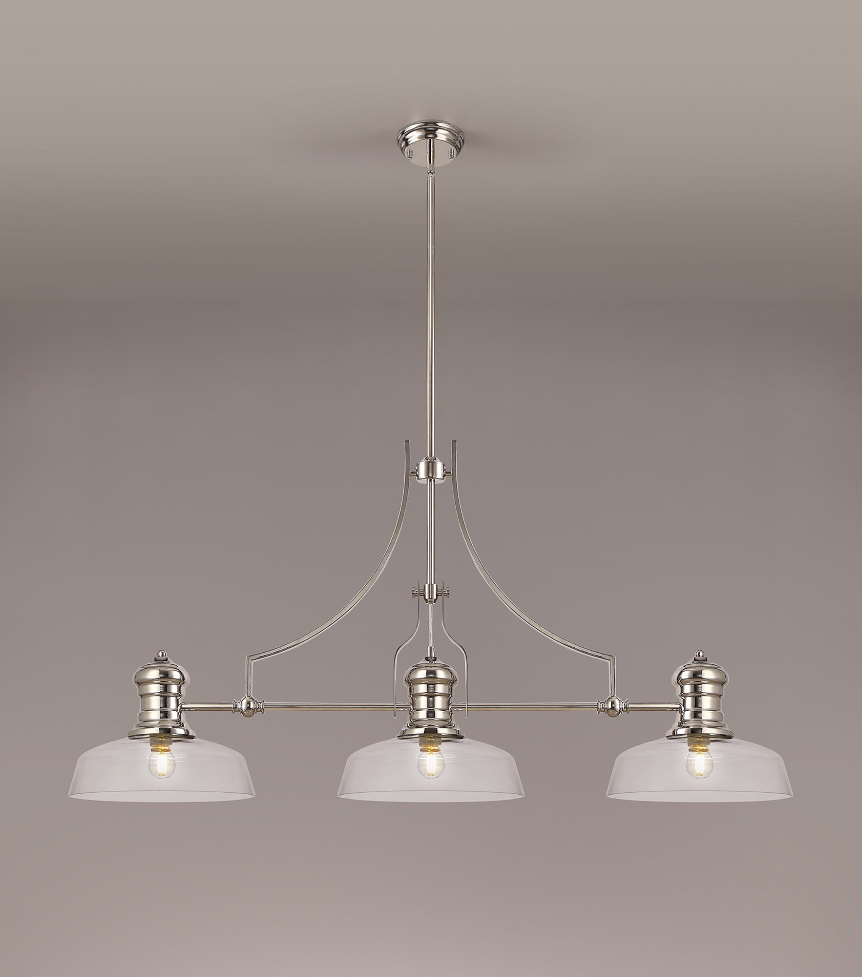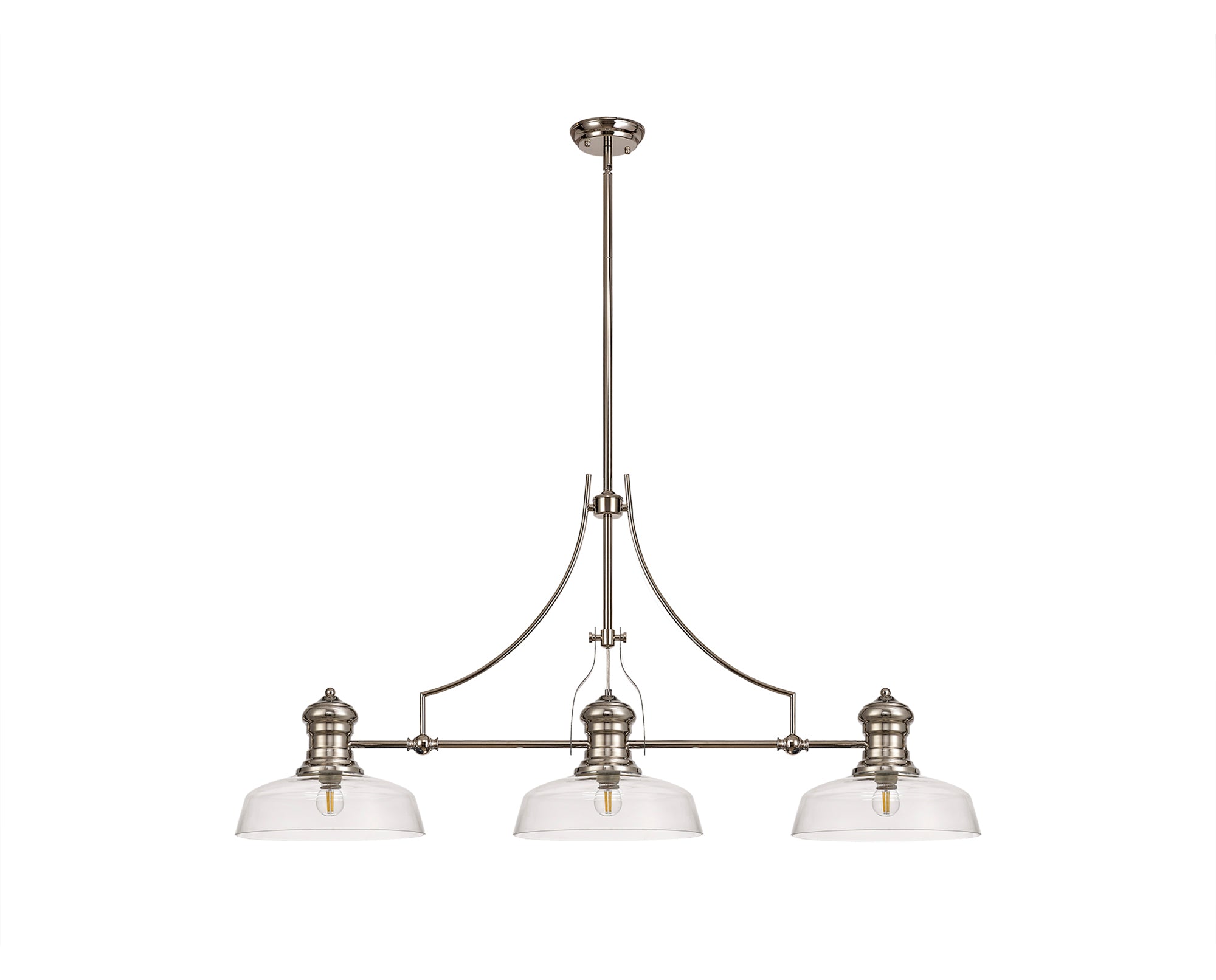 Docker 3 Light Linear Pendant E27 With 30cm Flat Round Glass Shade, Polished Nickel, Clear