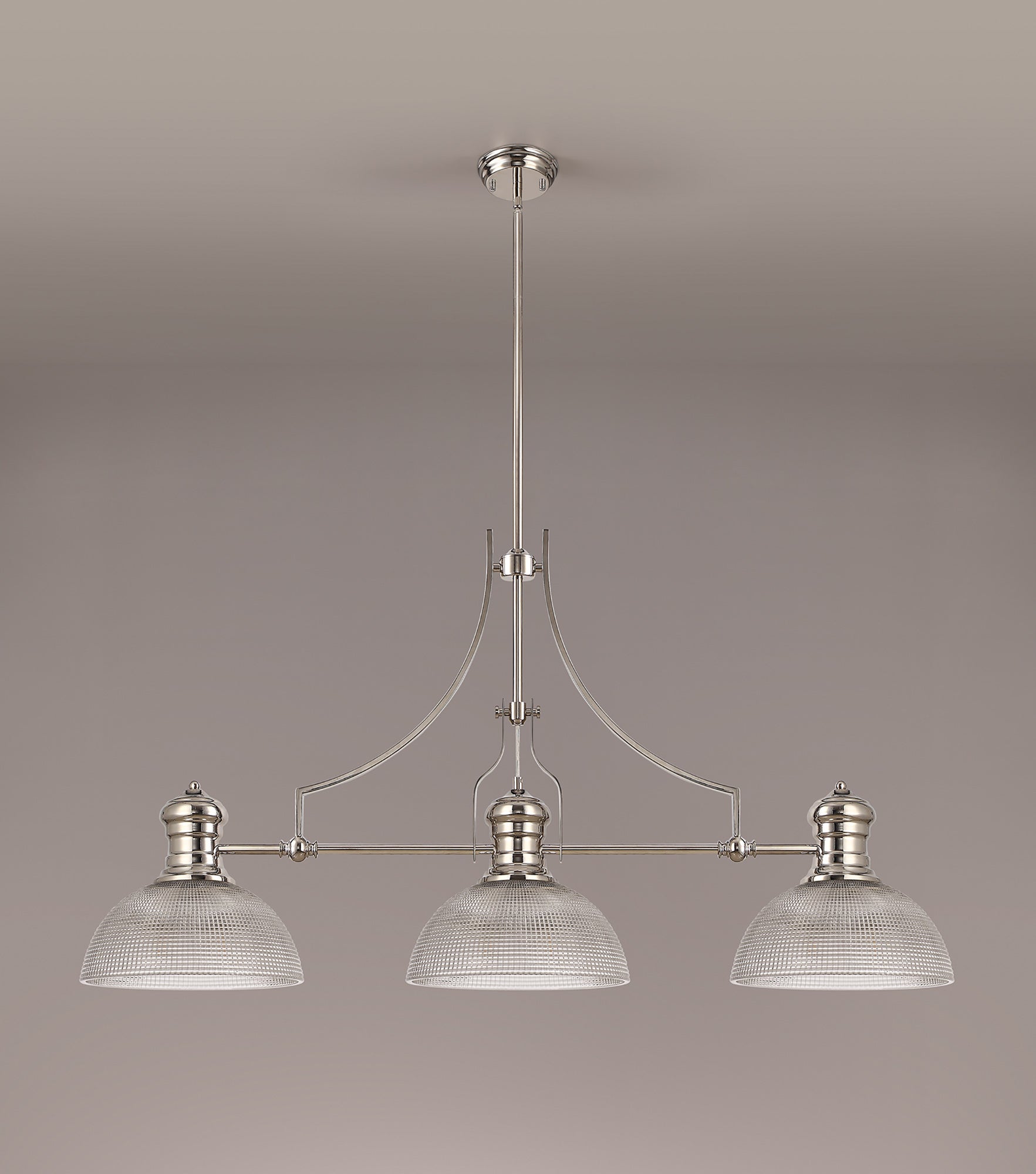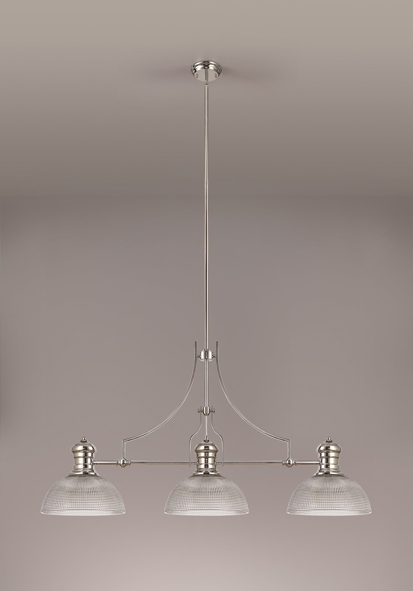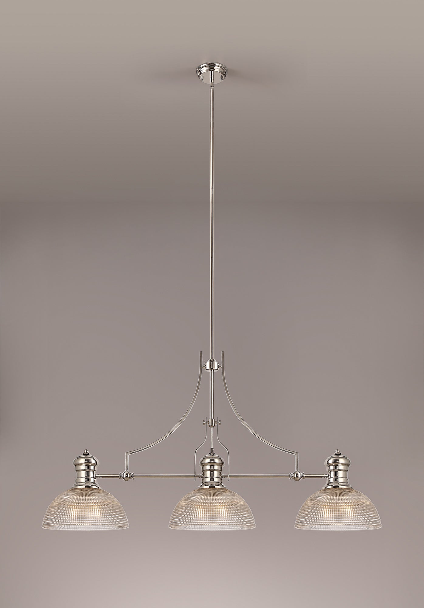 Docker 3 Light Linear Pendant E27 With 30cm Prismatic Glass Shade, Polished Nickel, Clear