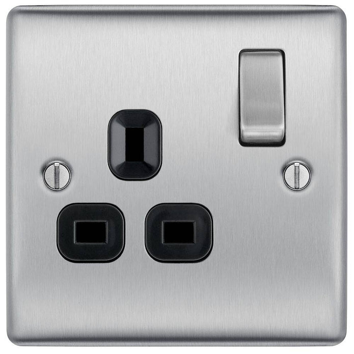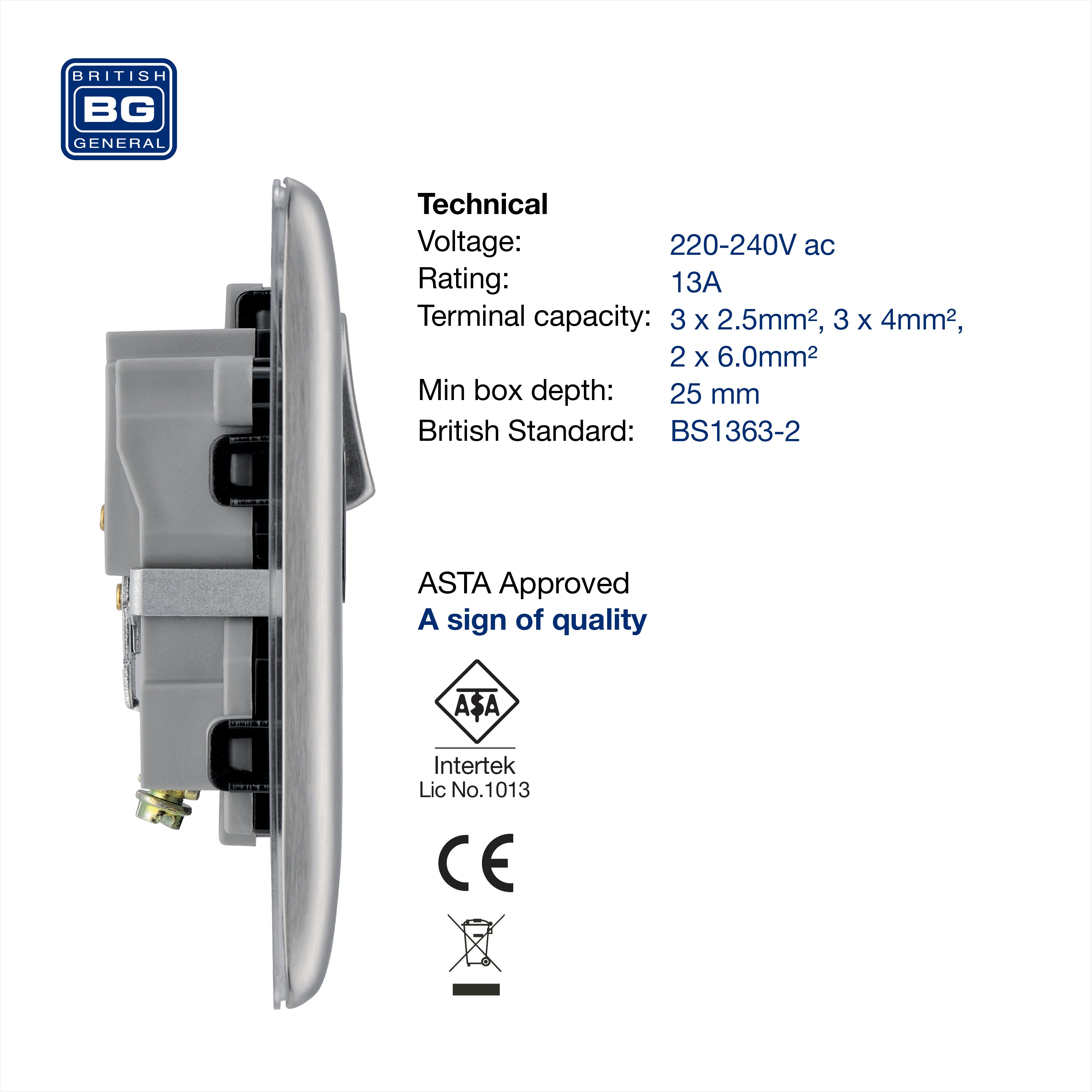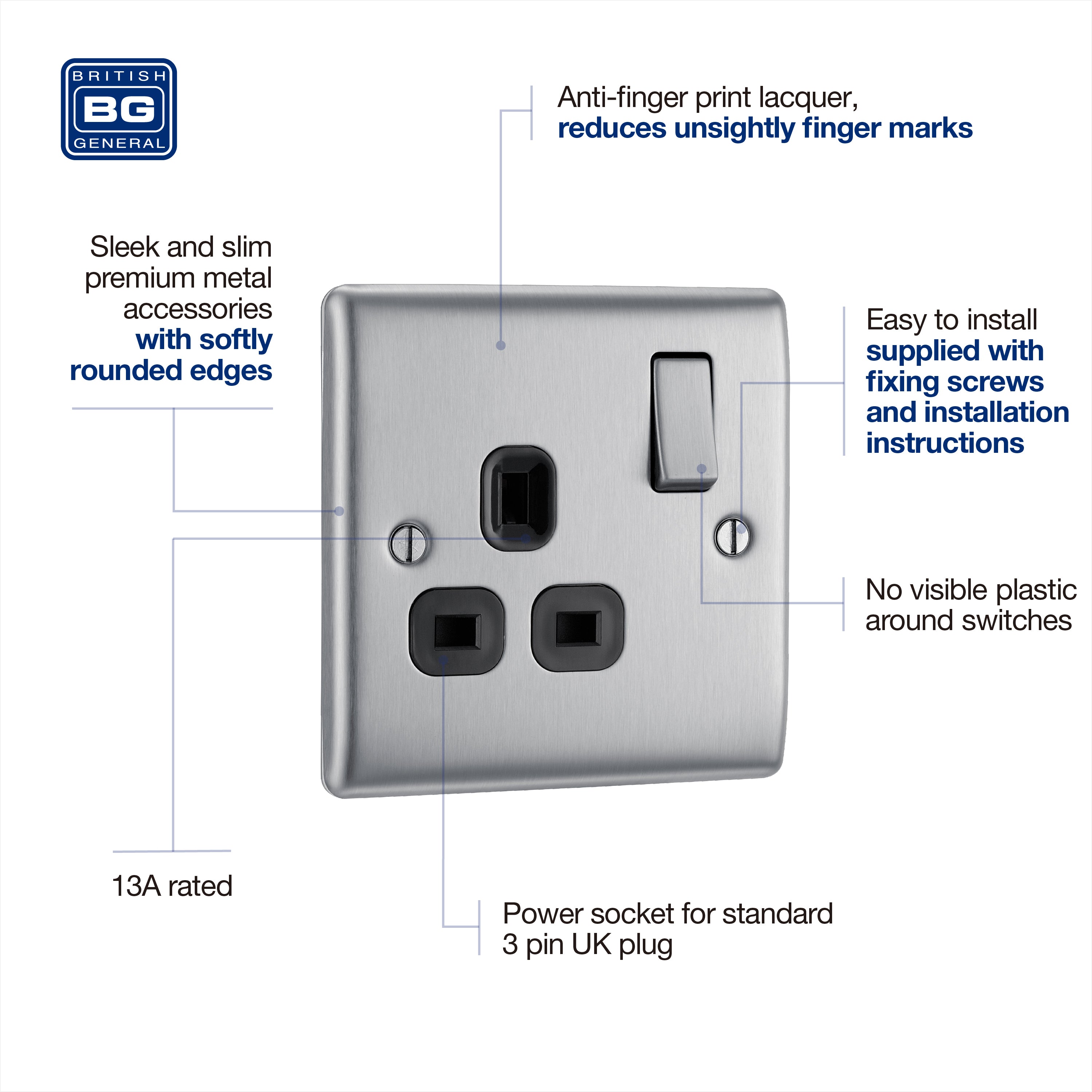 BG Nexus Metal Brushed Steel 13A Single Socket NBS21B