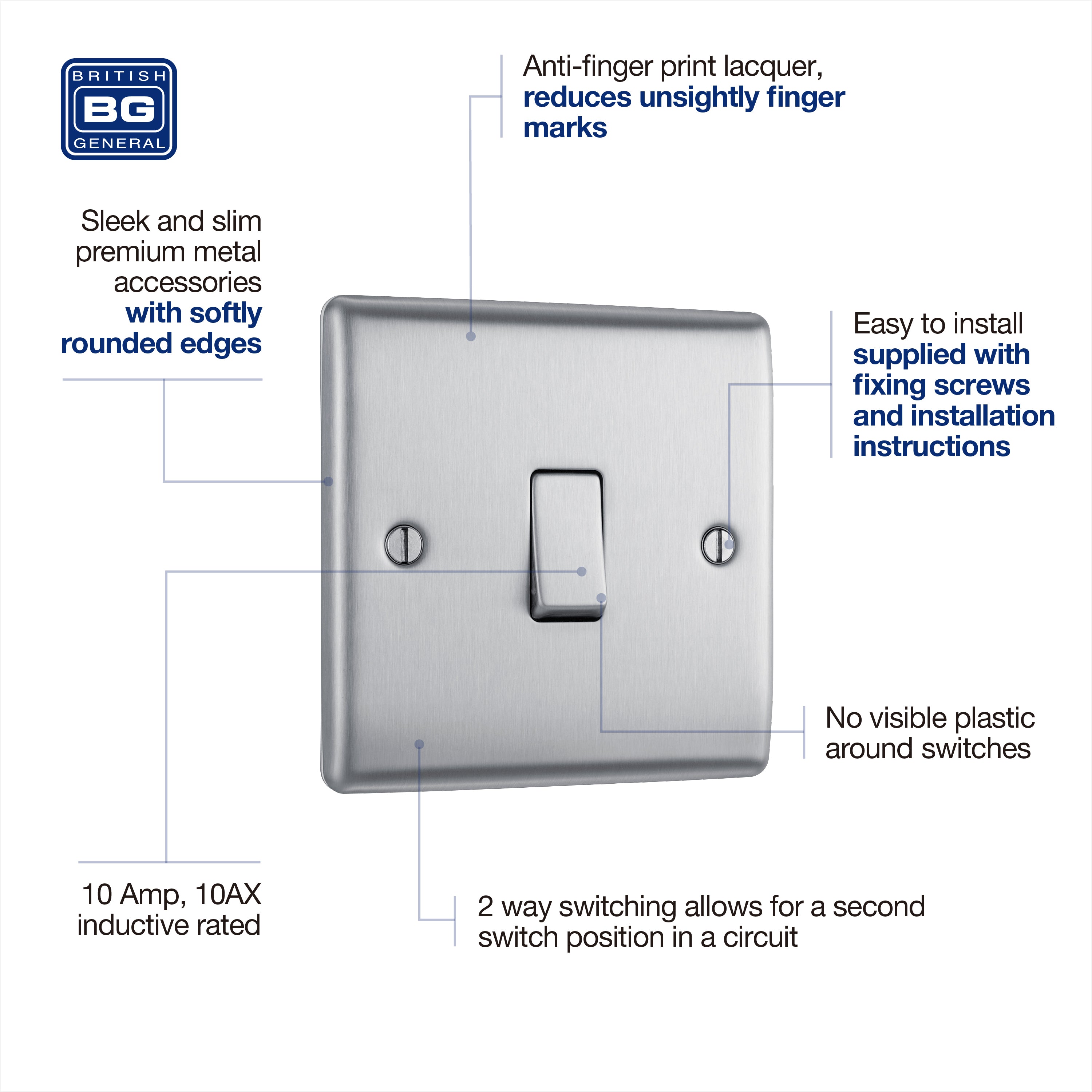BG Nexus Metal Brushed Steel 1G 2W Light Switch NBS12
