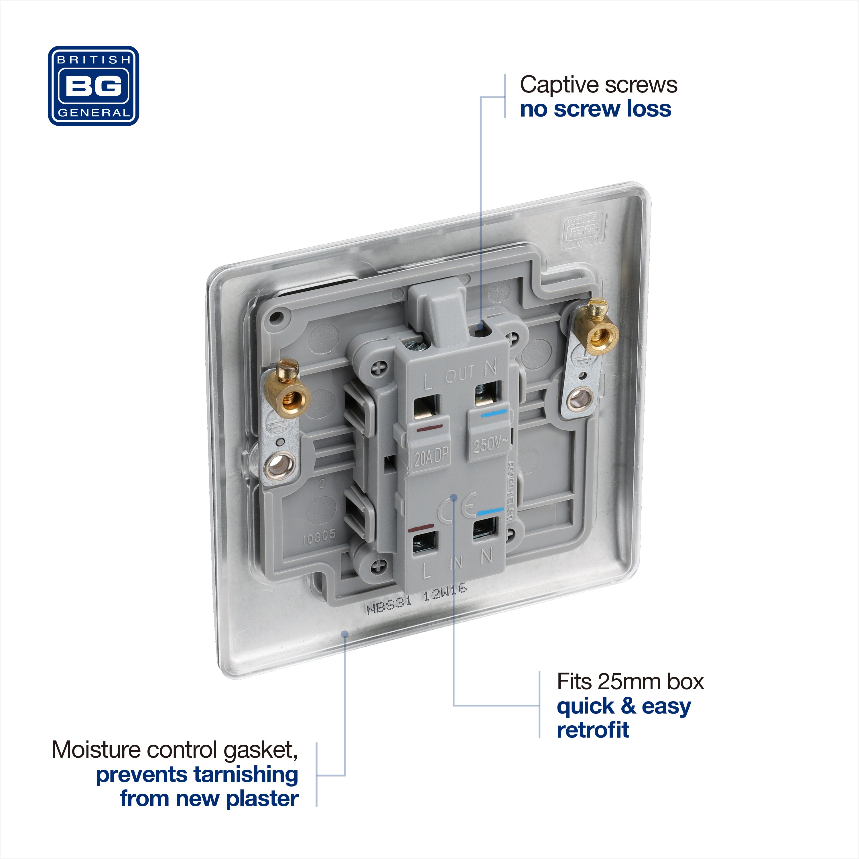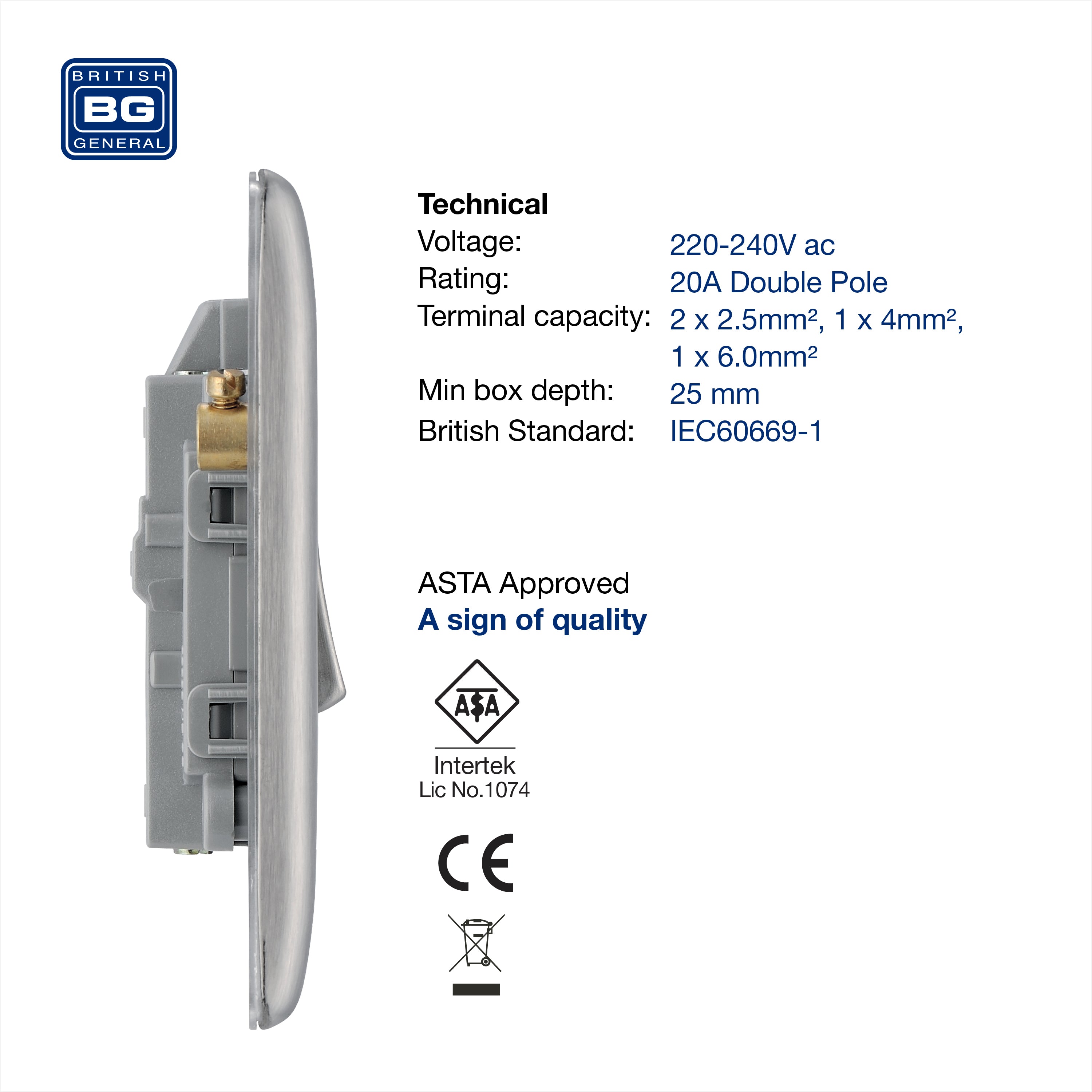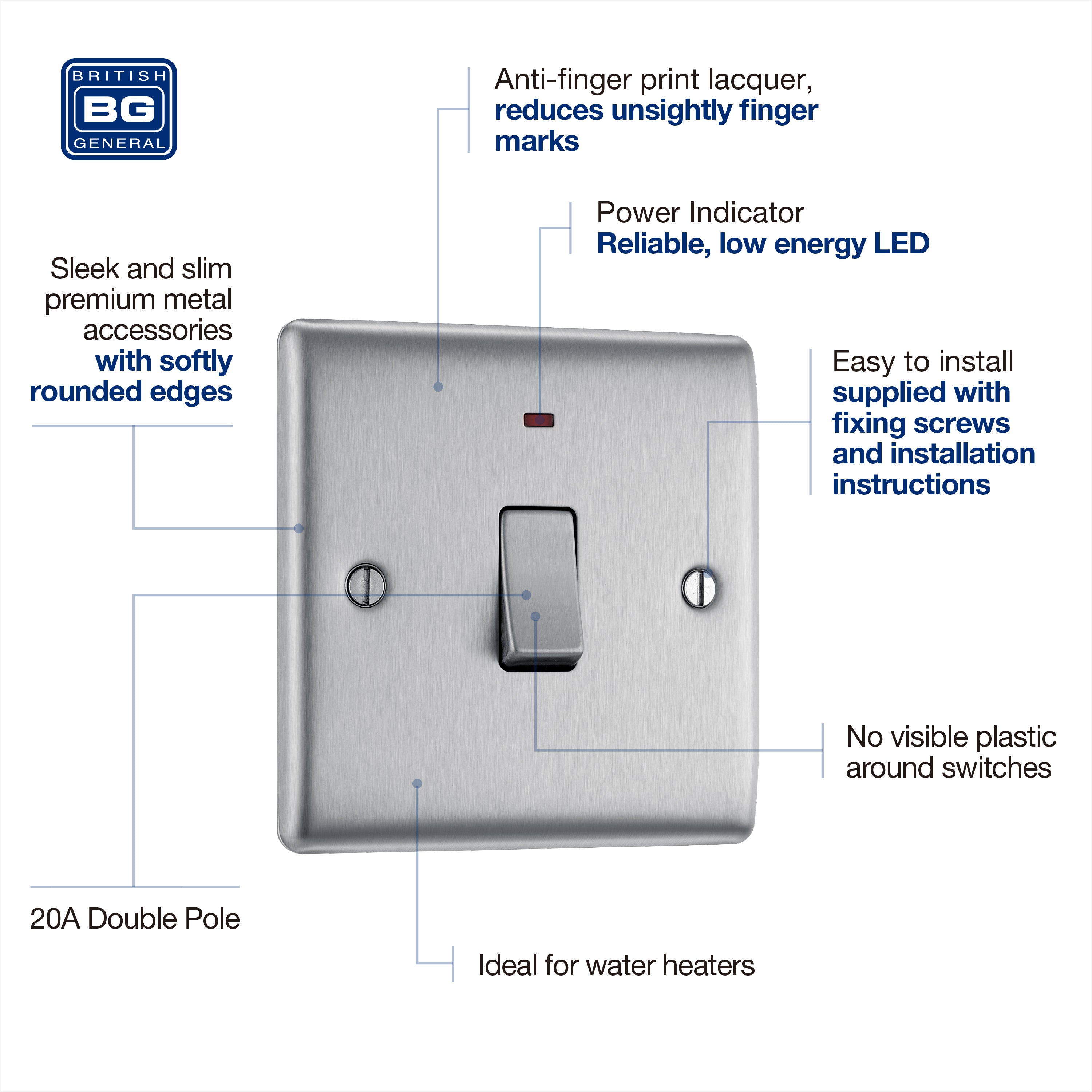 BG Nexus Metal Brushed Steel 20A Double Pole Switch with Neon NBS31