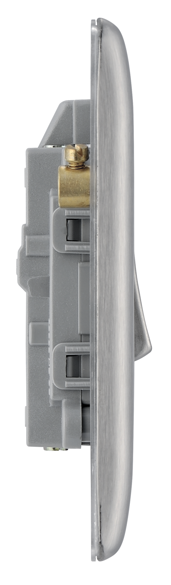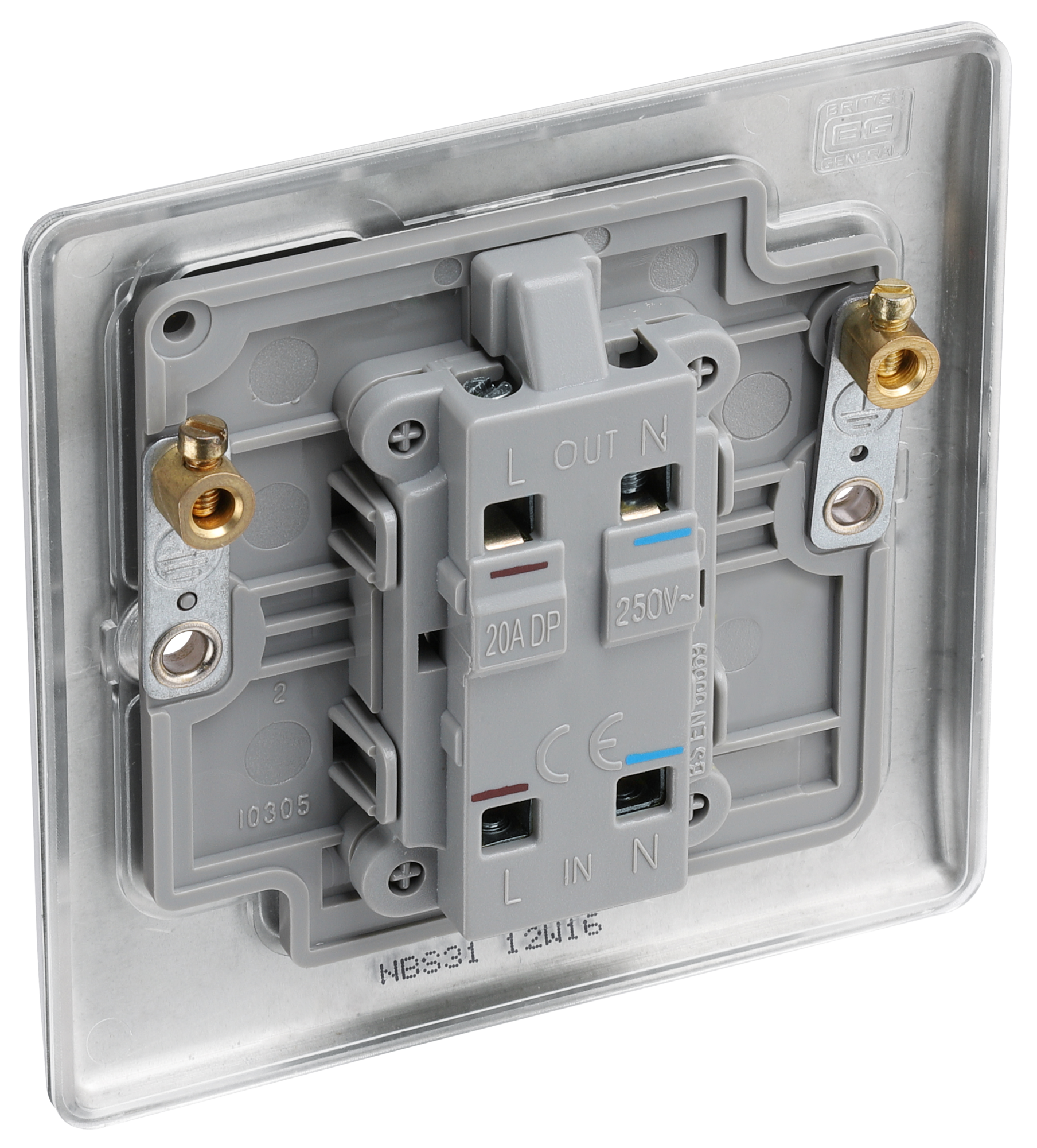 The NBS31 is a 20A Double Pole switch with neon from the BG Nexus Metal range, finished in brushed steel. This range of switches and sockets has been designed with a modern, slim profile and has a lightly lacquered surface to reduce fingerprint marks. The BG Nexus Metal range of switches and sockets comes with colour coded screws and has a full grid system to match.