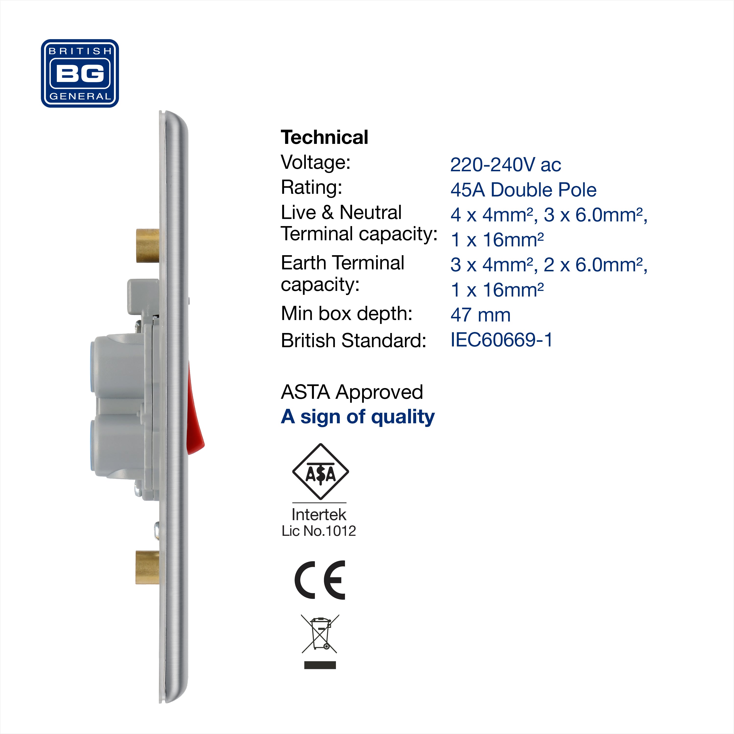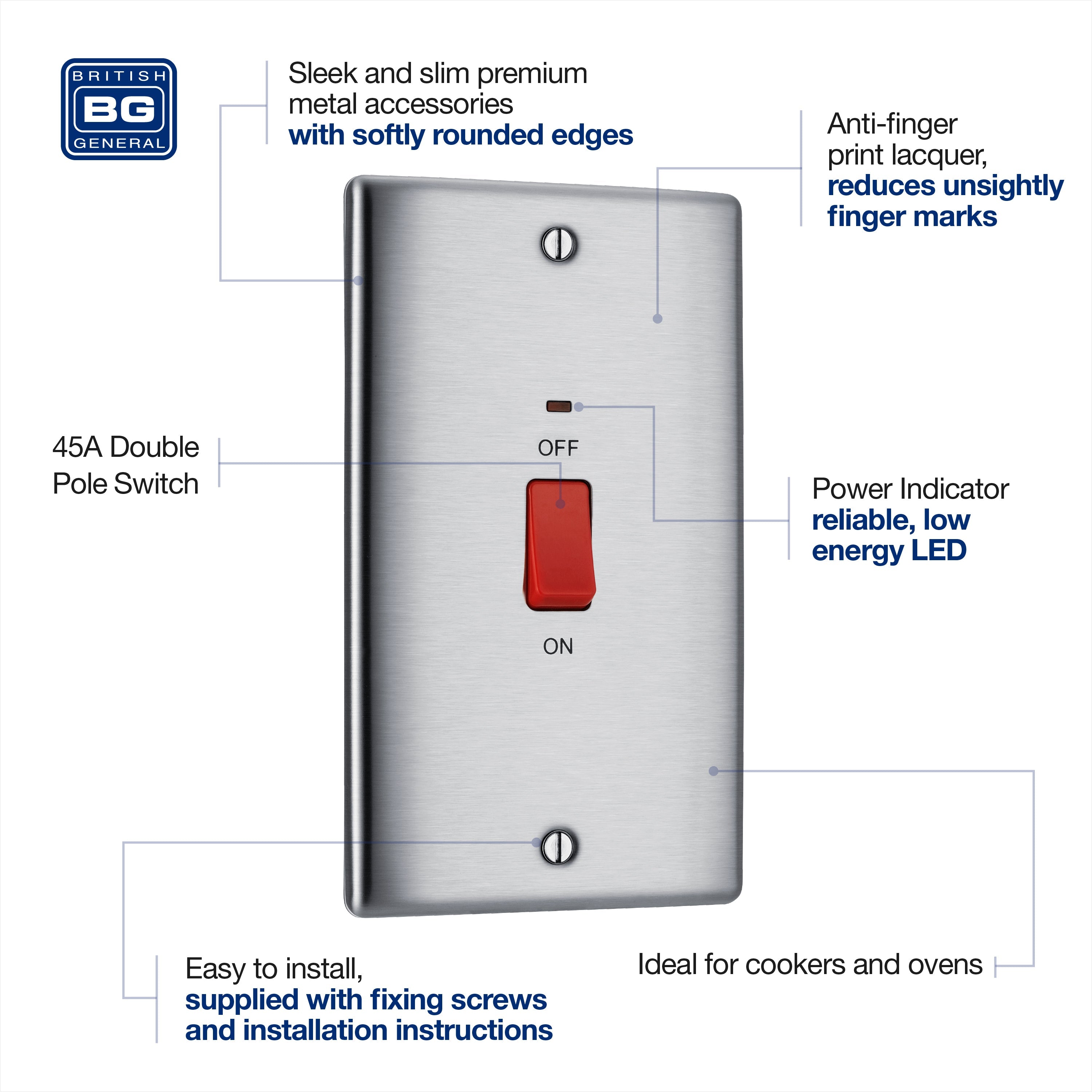 BG Nexus Metal Brushed Steel 45A Cooker Switch NBS72