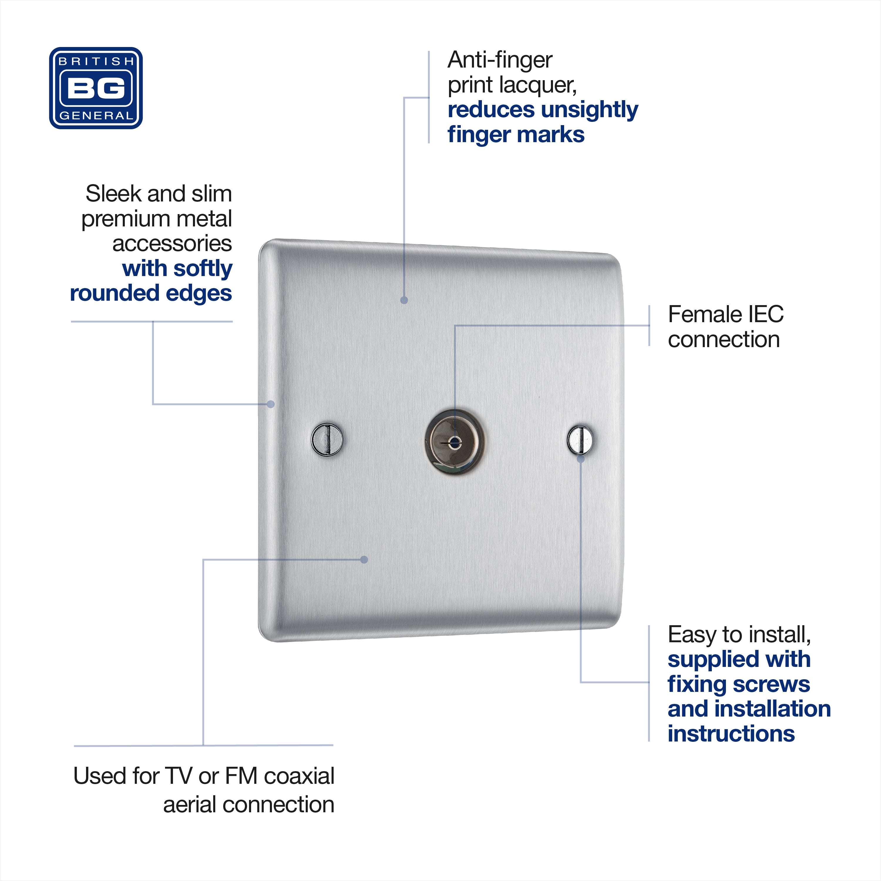 BG Nexus Metal Brushed Steel Co-axial Socket NBS60