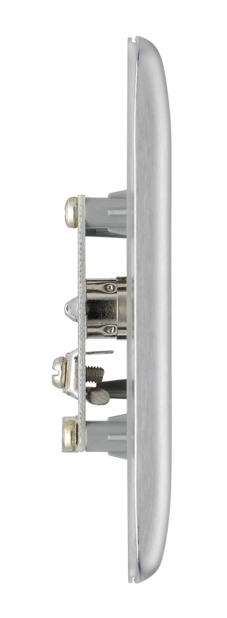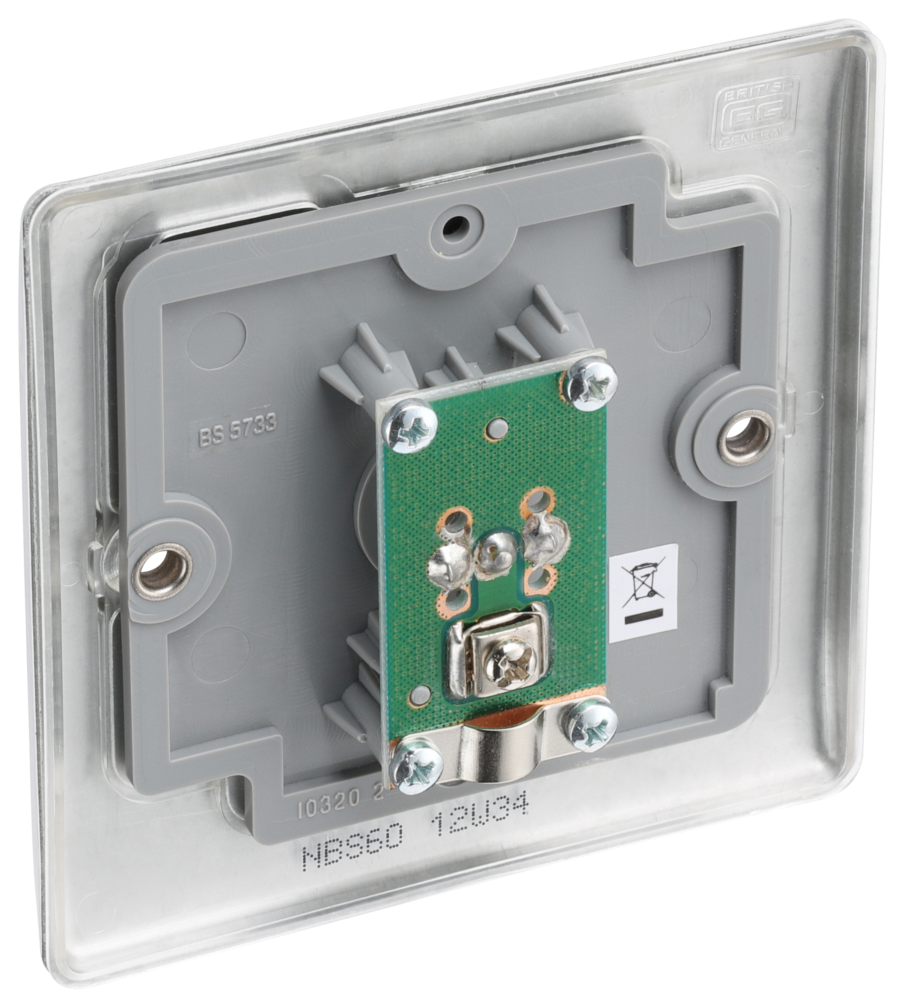 The NBS60 is a co-axial socket from the BG Nexus Metal range, finished in brushed steel. This range of switches and sockets has been designed with a modern, slim profile and has a lightly lacquered surface to reduce fingerprint marks. The BG Nexus Metal range of switches and sockets comes with colour coded screws and has a full grid system to match.