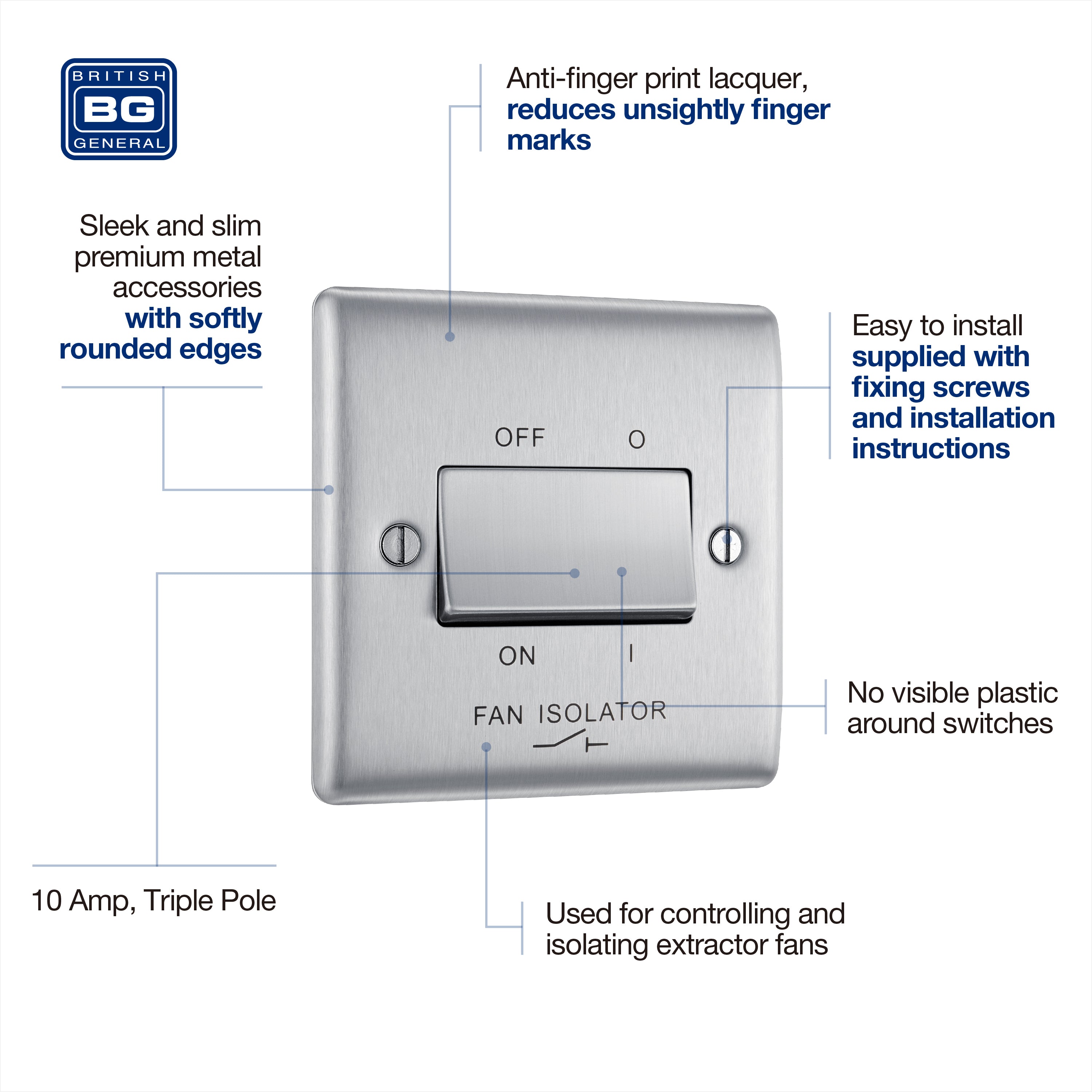 BG Nexus Metal Brushed Steel Fan Isolator Switch NBS15