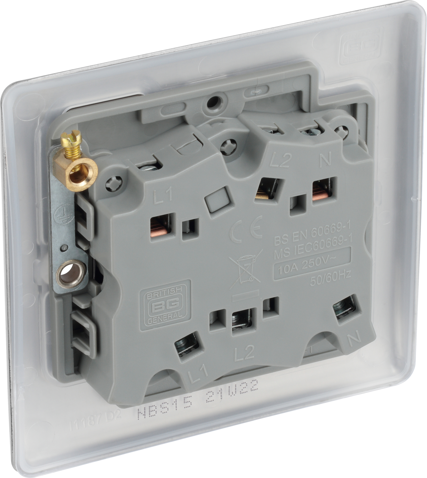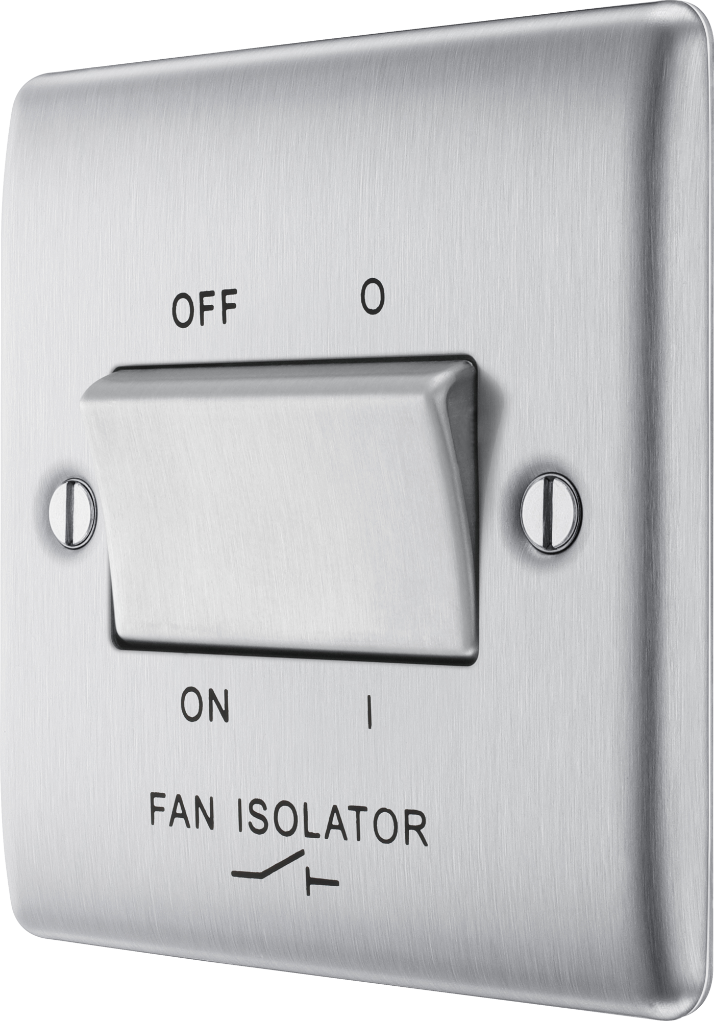 The NBS15 is a fan isolator switch from the BG Nexus Metal range, finished in brushed steel. This range of switches and sockets has been designed with a modern, slim profile and has a lightly lacquered surface to reduce fingerprint marks. The BG Nexus Metal range of switches and sockets comes with colour coded screws and has a full grid system to match.