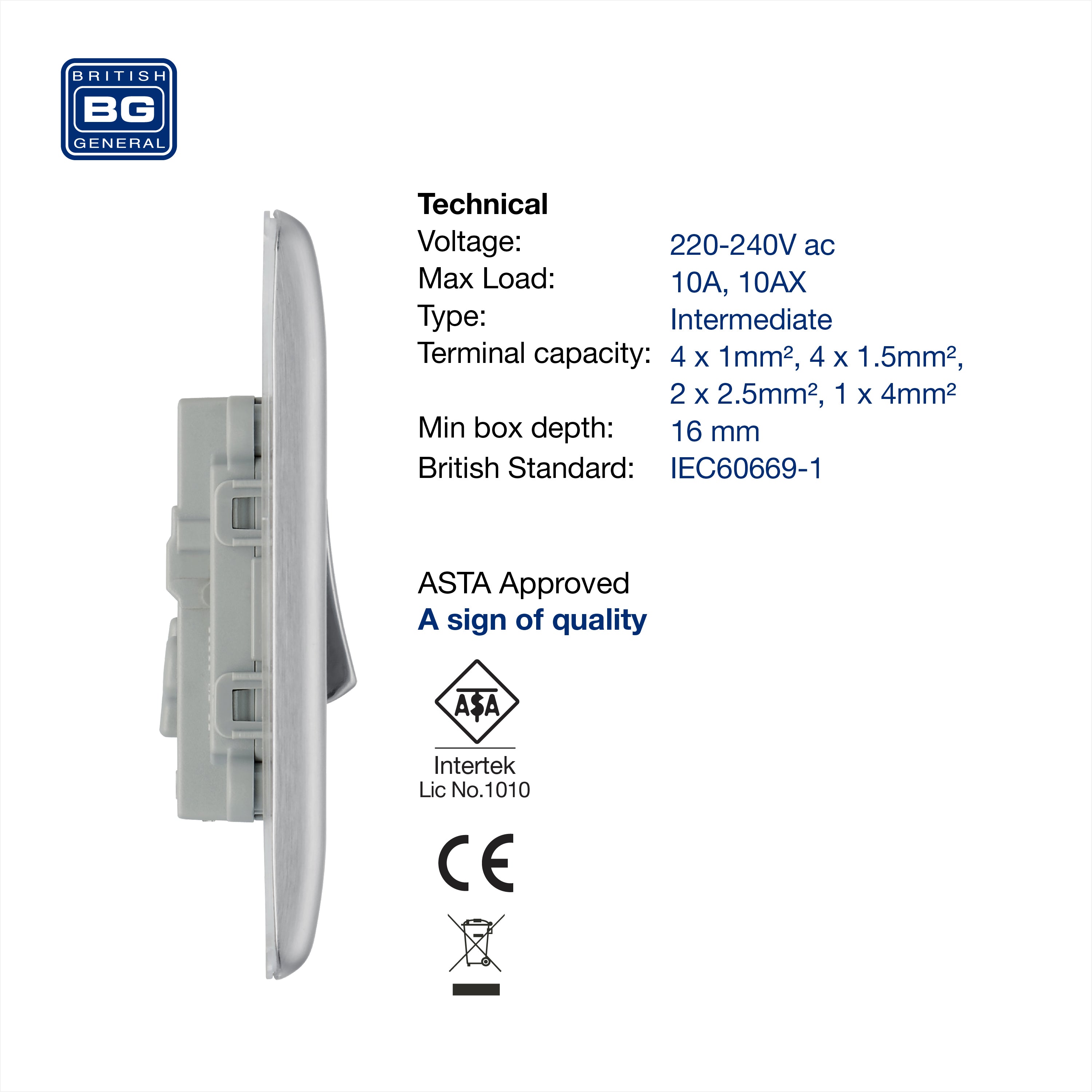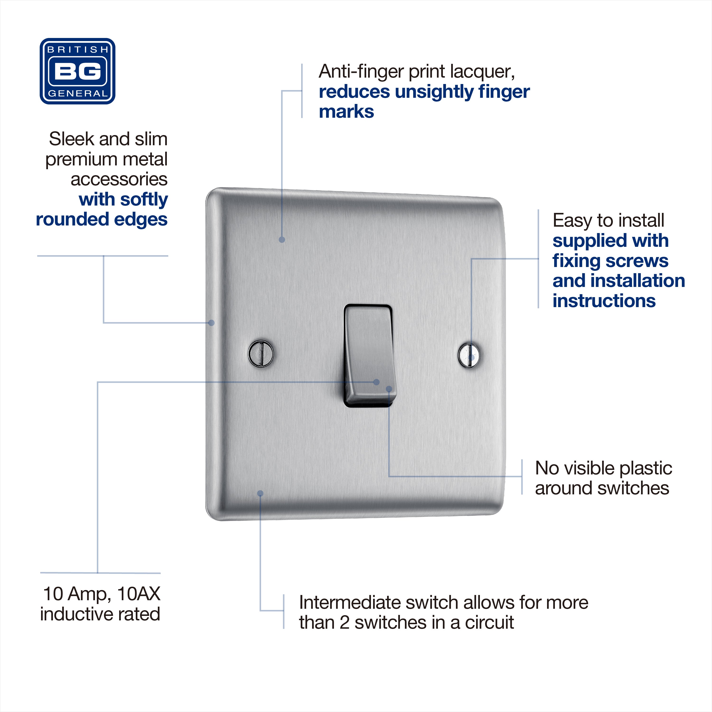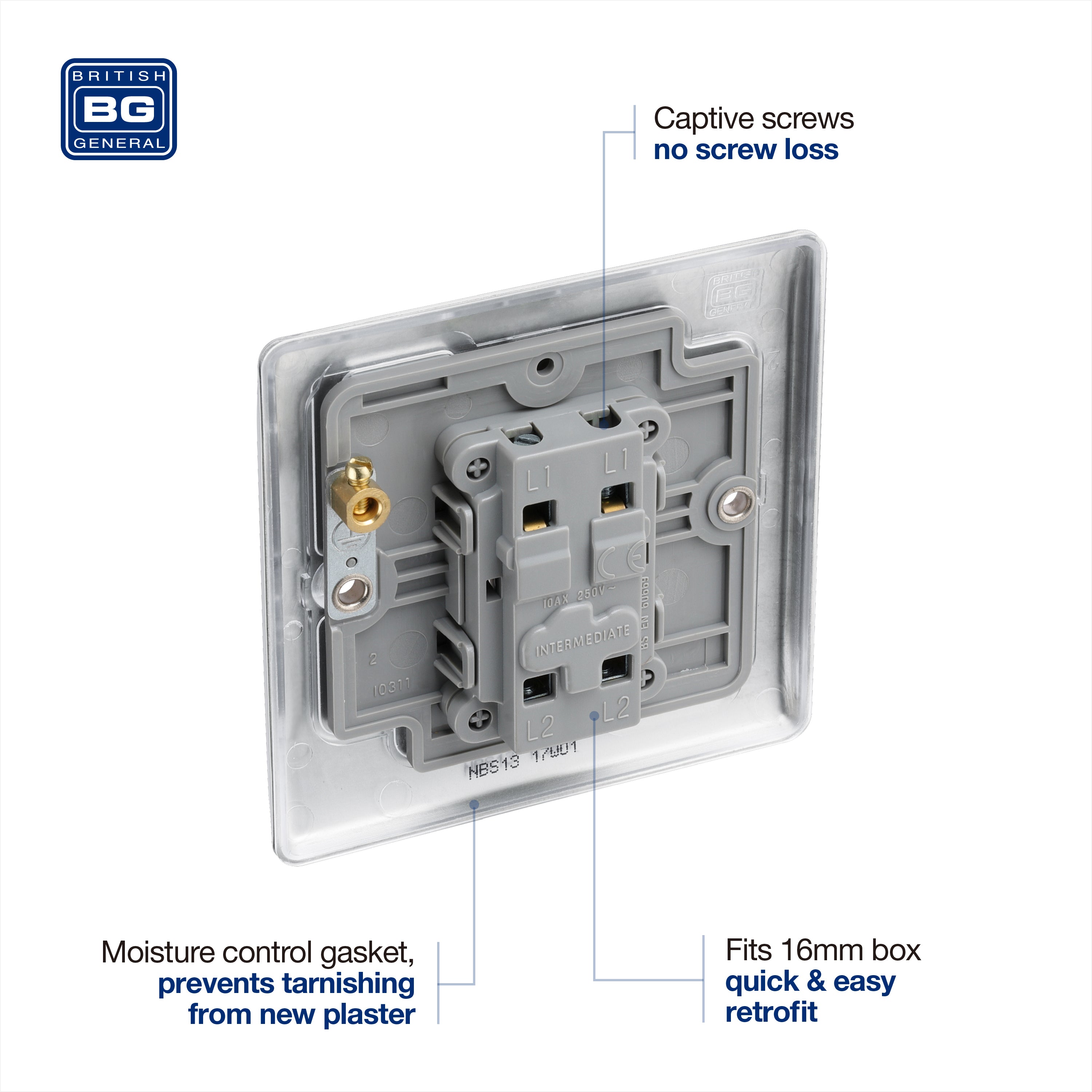 BG Nexus Metal Brushed Steel Intermediate Light Switch NBS13