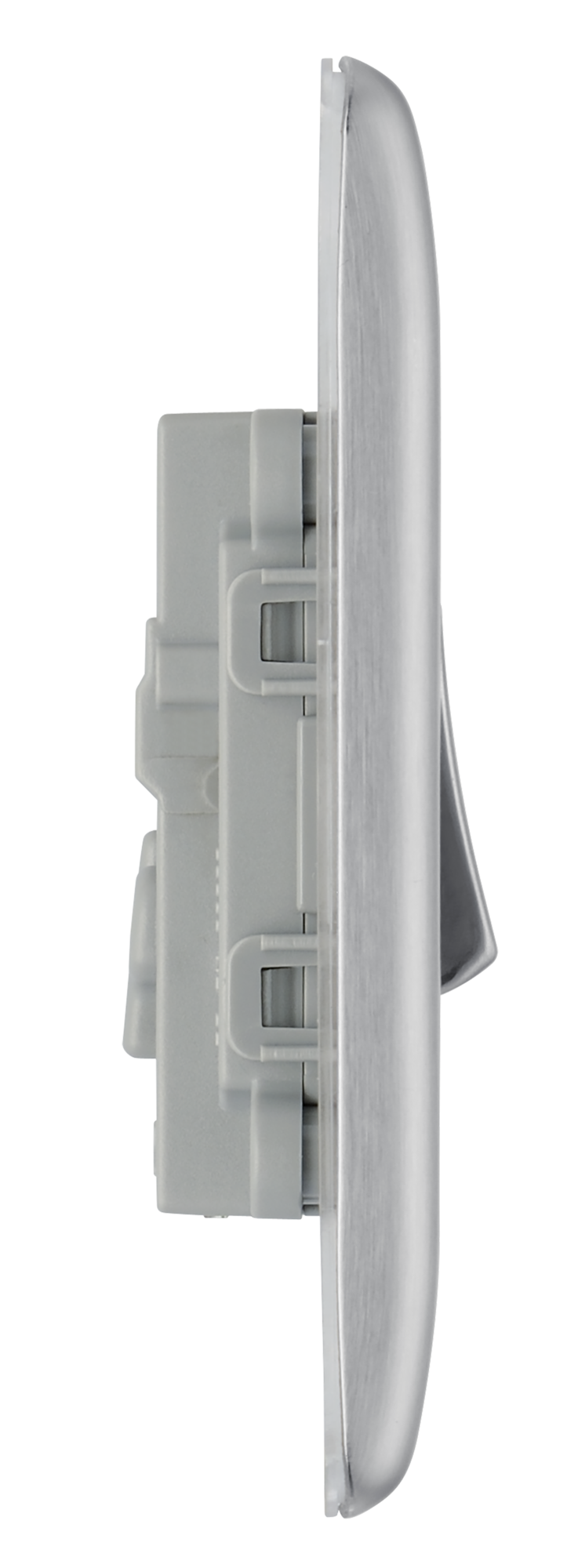 The NBS13 is a intermediate light switch from the BG Nexus Metal range, finished in brushed steel. This range of switches and sockets has been designed with a modern, slim profile and has a lightly lacquered surface to reduce fingerprint marks. The BG Nexus Metal range of switches and sockets comes with colour coded screws and has a full grid system to match.