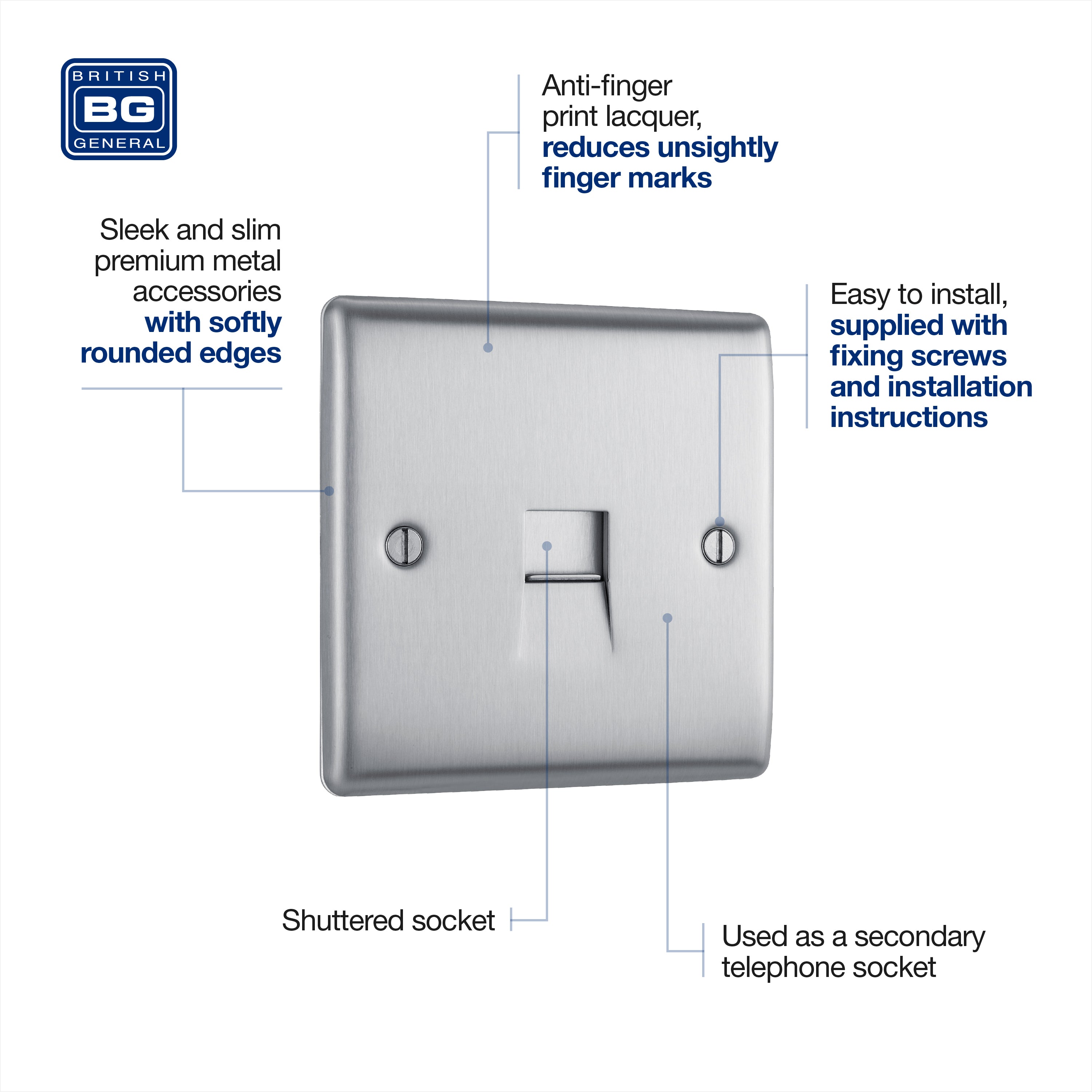 BG Nexus Metal Brushed Steel Secondary Telephone Socket NBSBTS1