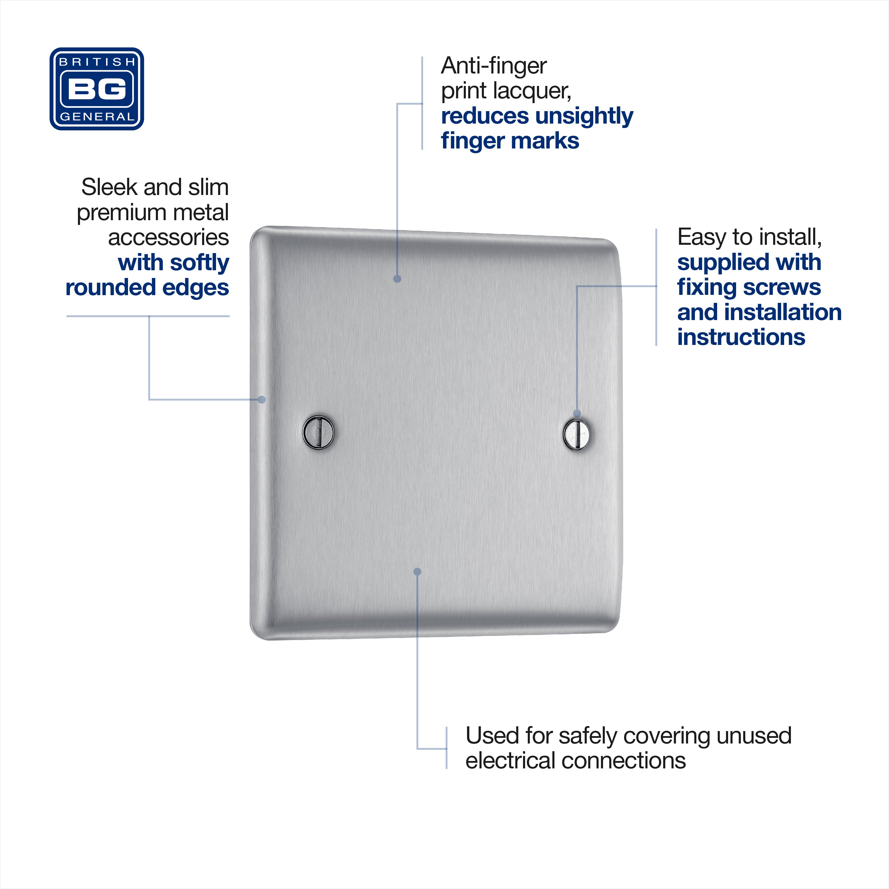 BG Nexus Metal Brushed Steel Single Blank Plate NBS94