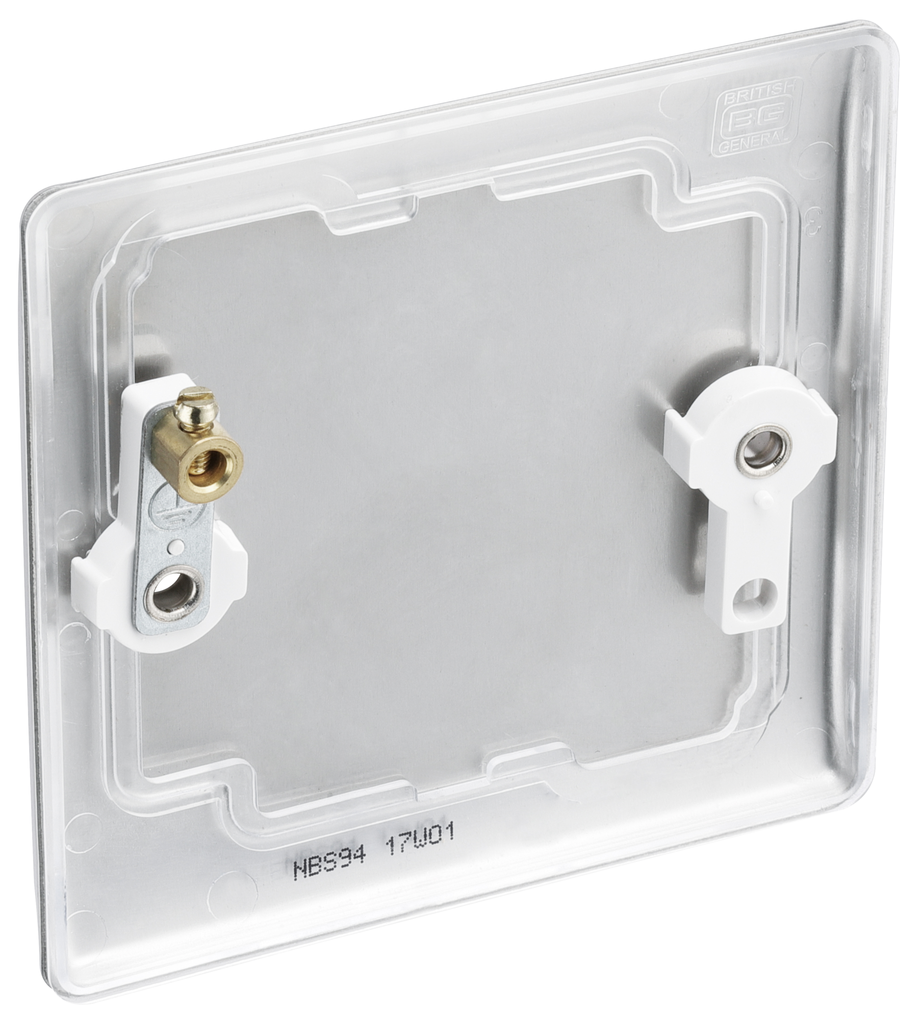 The NBS94 is a single blank plate from the BG Nexus Metal range, finished in brushed steel. This range of switches and sockets has been designed with a modern, slim profile and has a lightly lacquered surface to reduce fingerprint marks. The BG Nexus Metal range of switches and sockets comes with colour coded screws and has a full grid system to match.