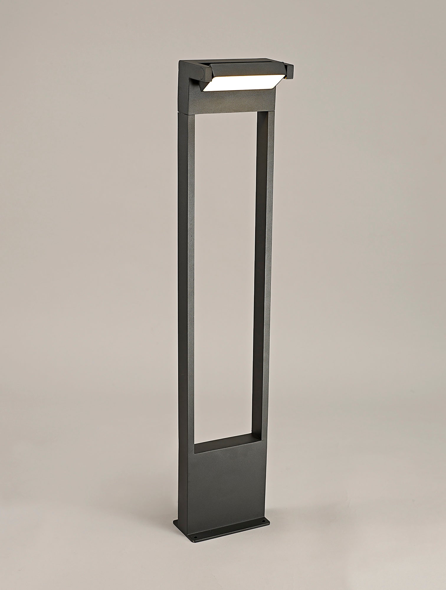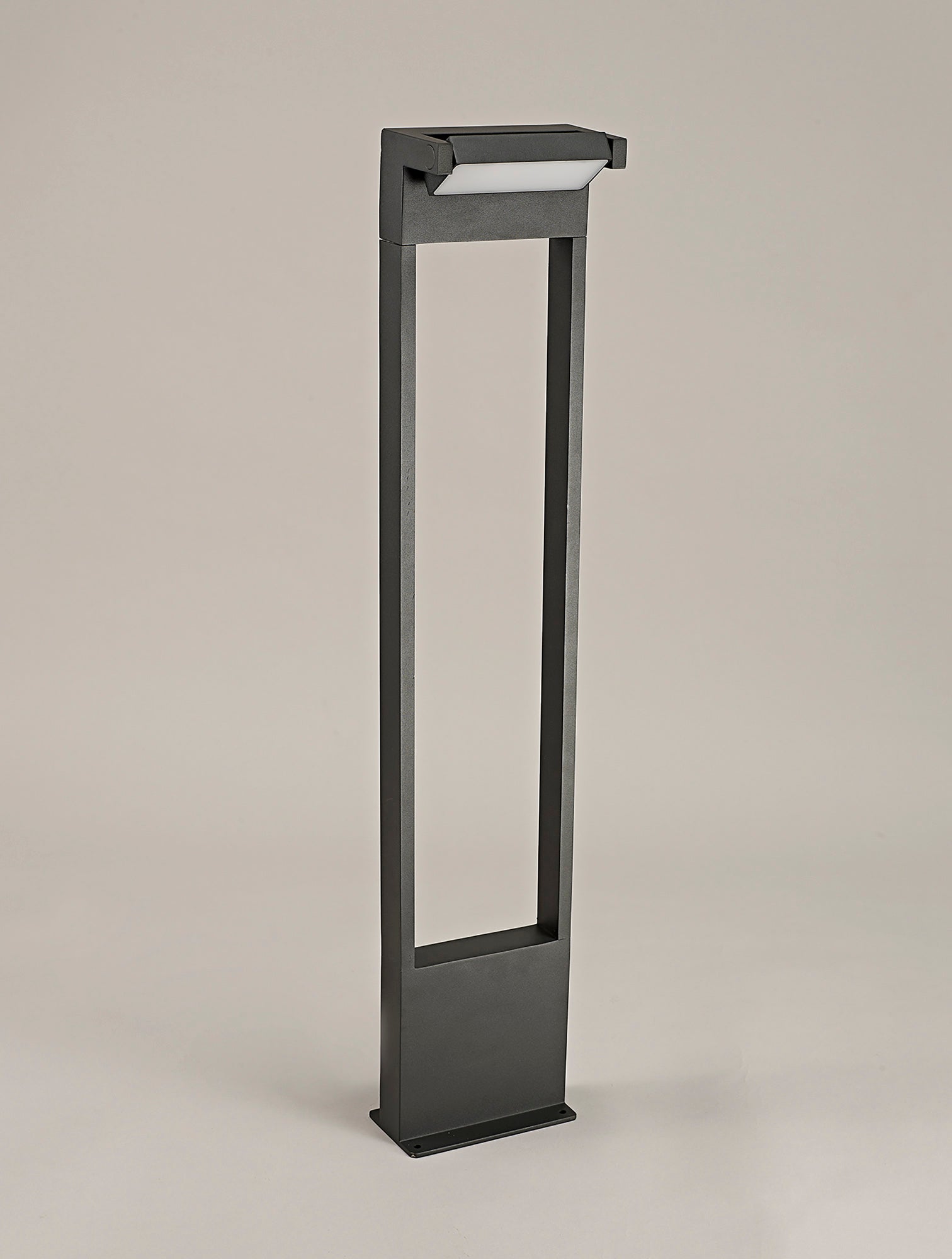 The Logan collection harbours a high powered 10W 3000K LED section encased in an opal white acrylic diffuser. The LED head is fixed within a durable graphite frame structure, perfect for the outdoor usage of an IP54 range of lighting options. The wall lamp available is adjustable in order to offer added directionality of the light projection. The slim rectangular shape of the short and tall post lamps take up little space as they successfully illuminate the chosen outdoor area.