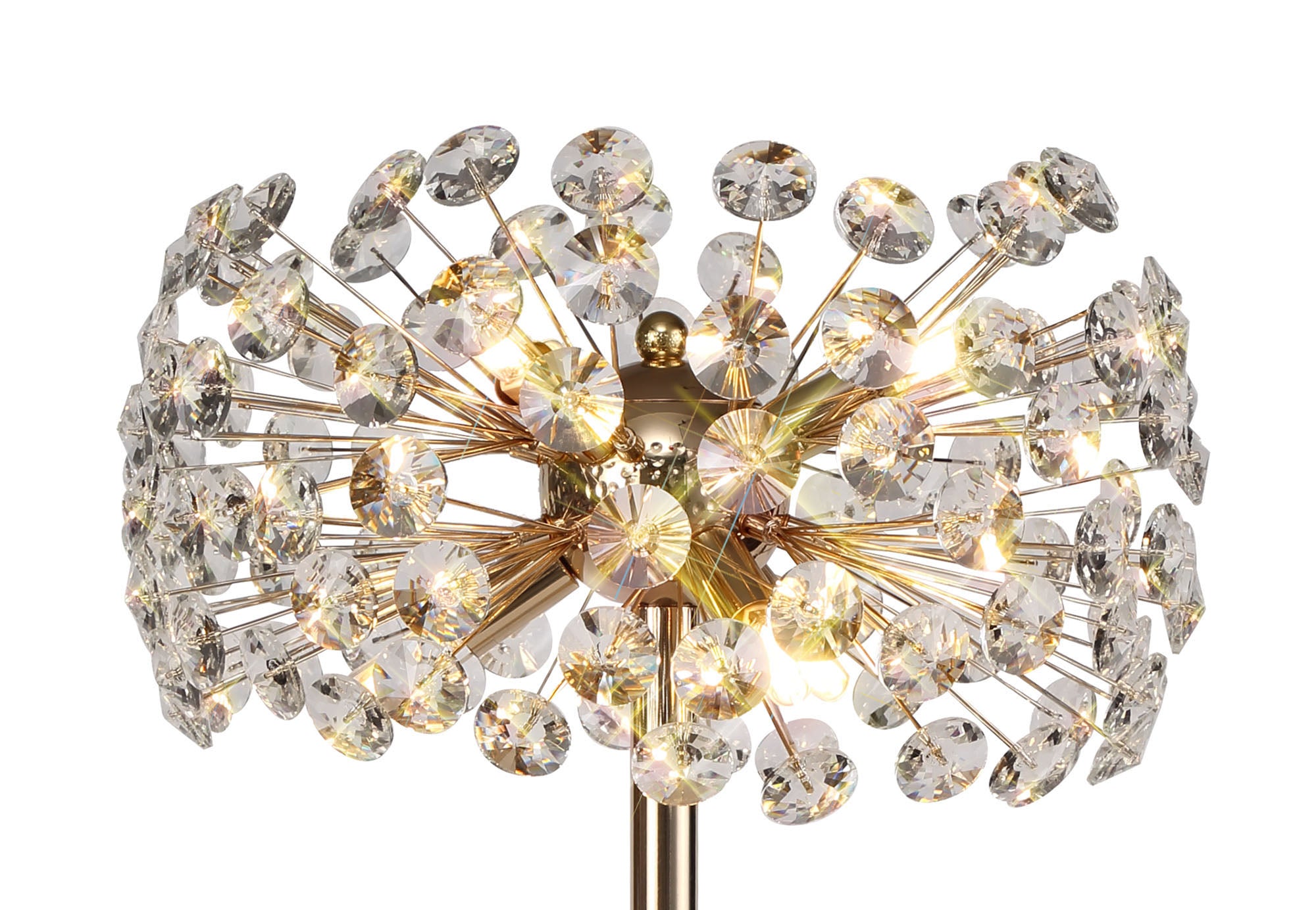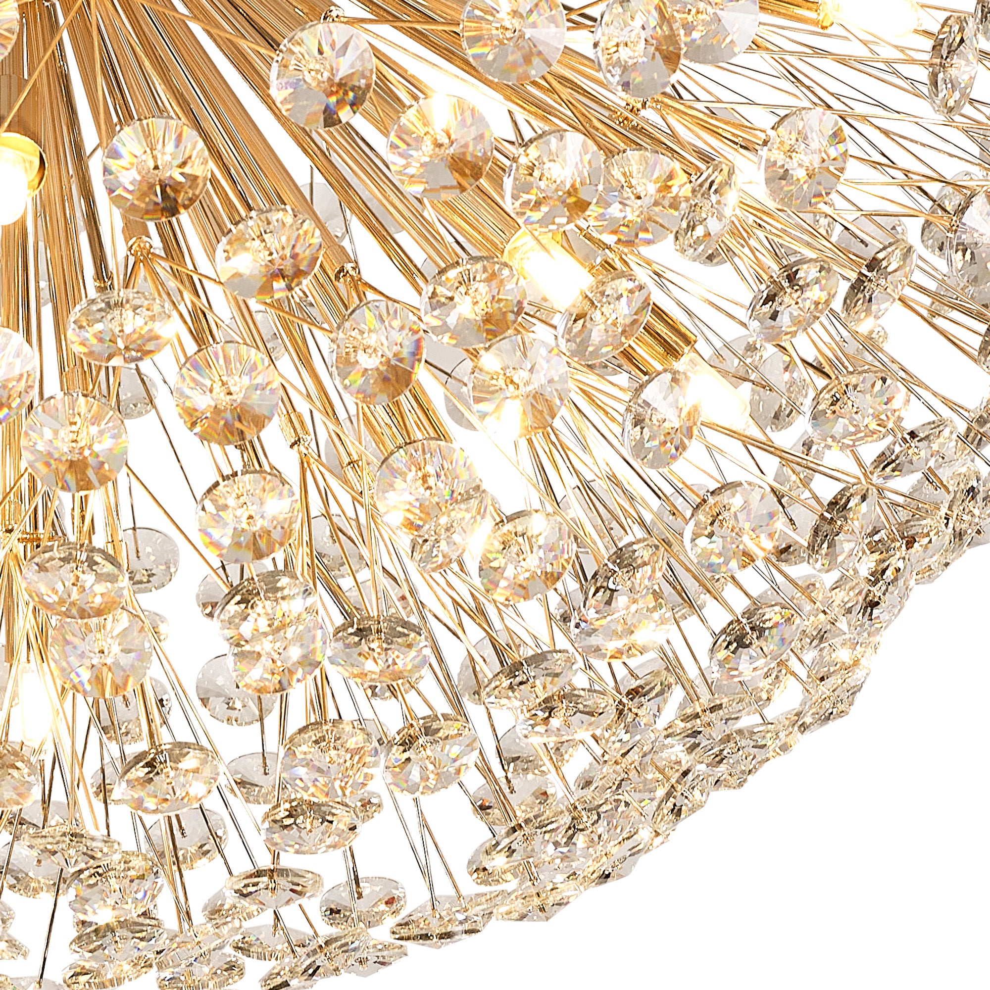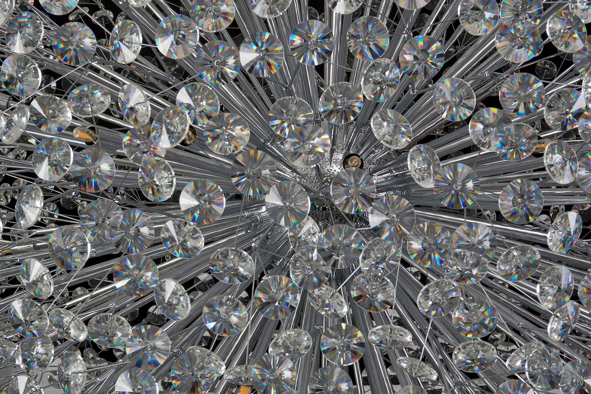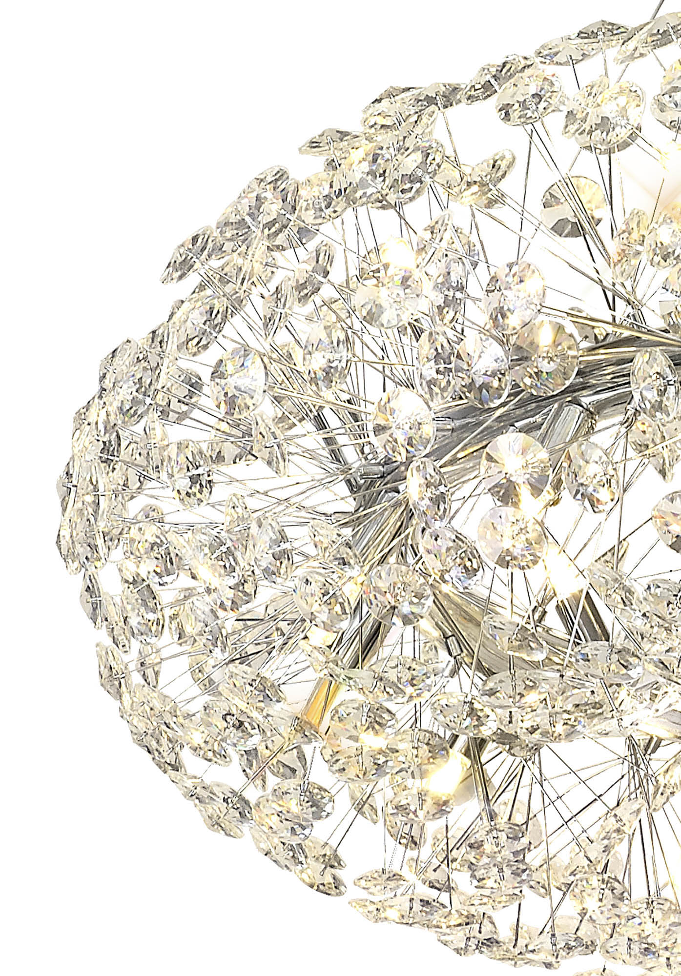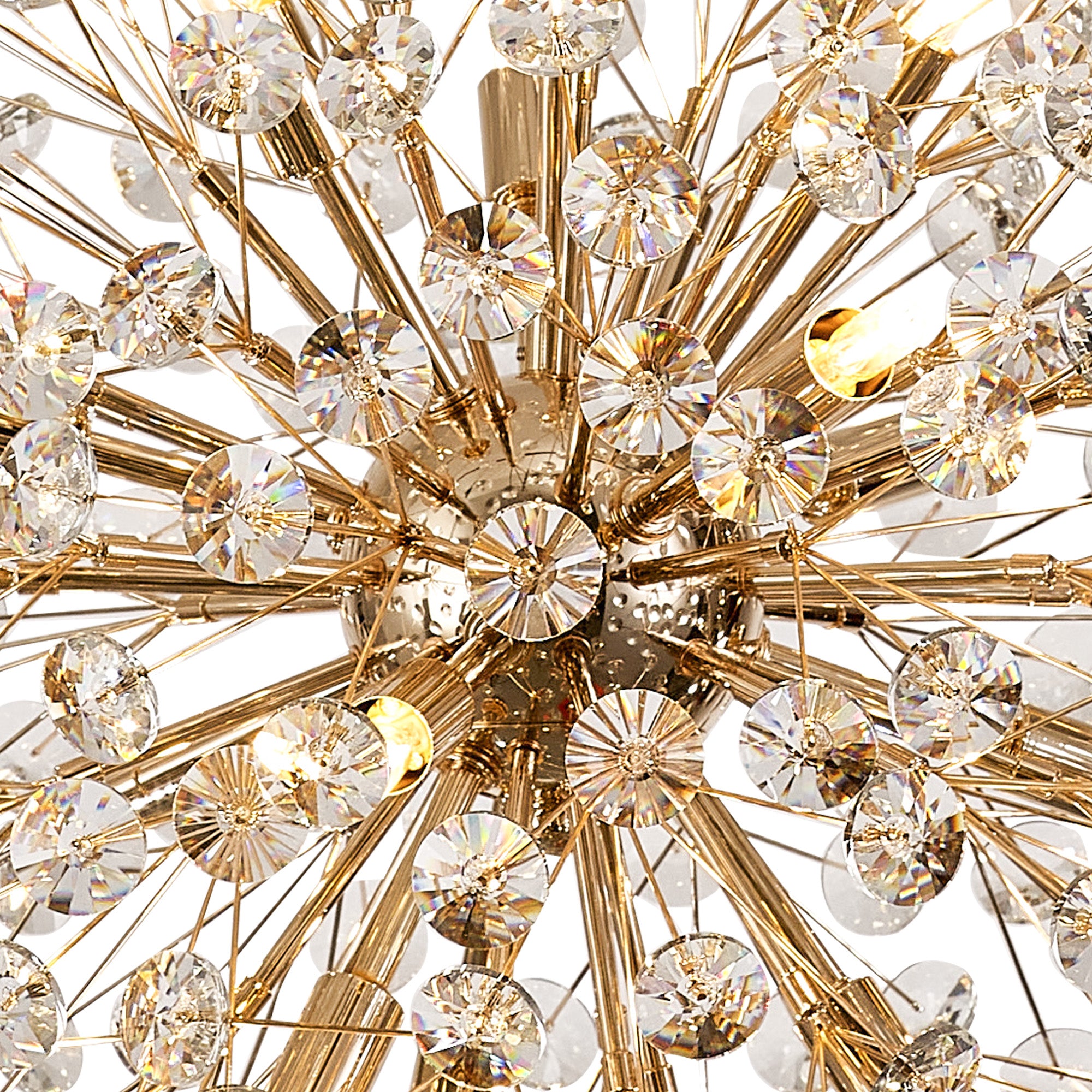 This stunning collection features slim, erratically angled stems that create a captivating cluster of clear crystal disks. The central framework comes in round, tiered, and oblong linear pendant designs, making each piece a striking addition to any space.
