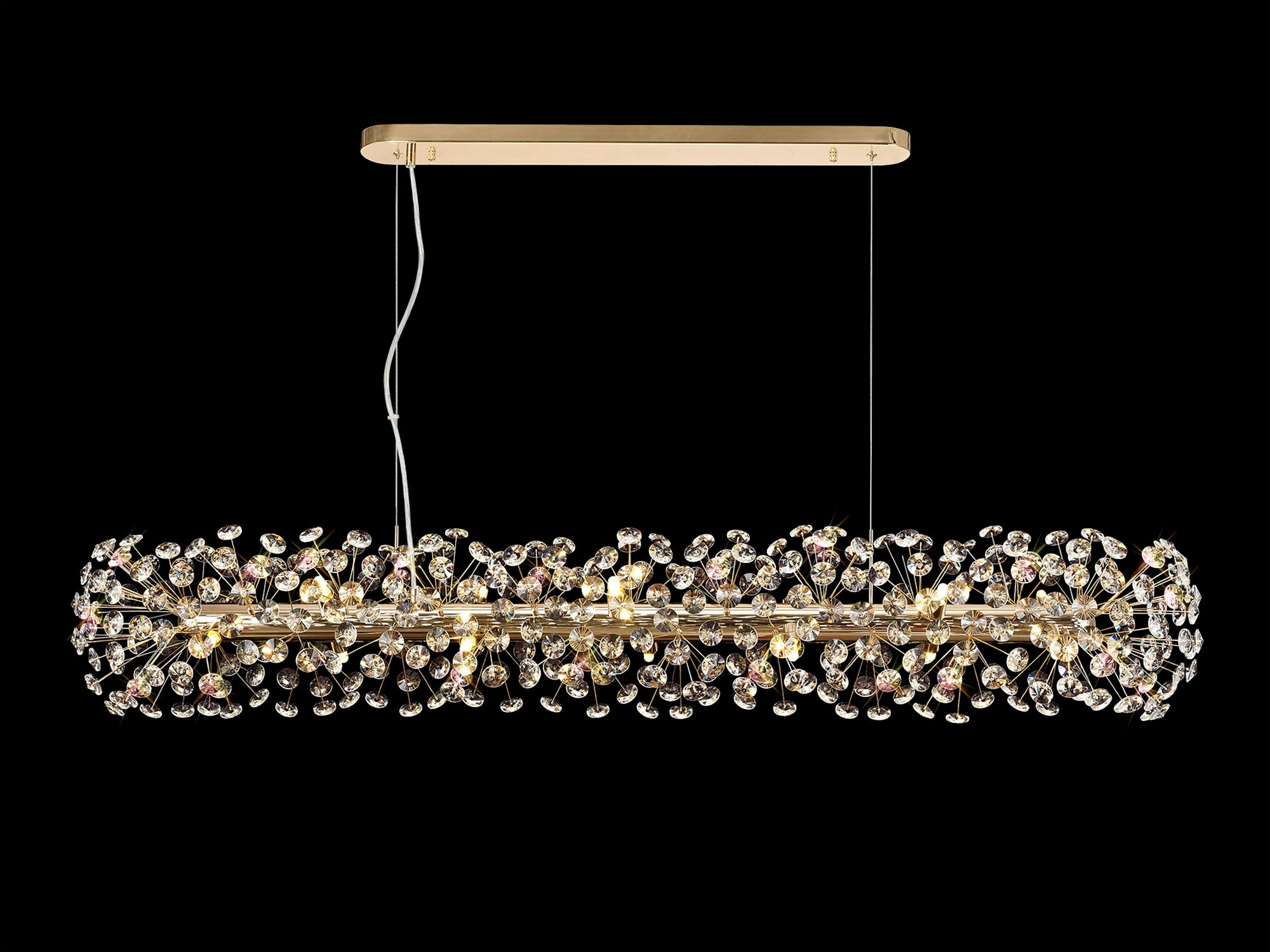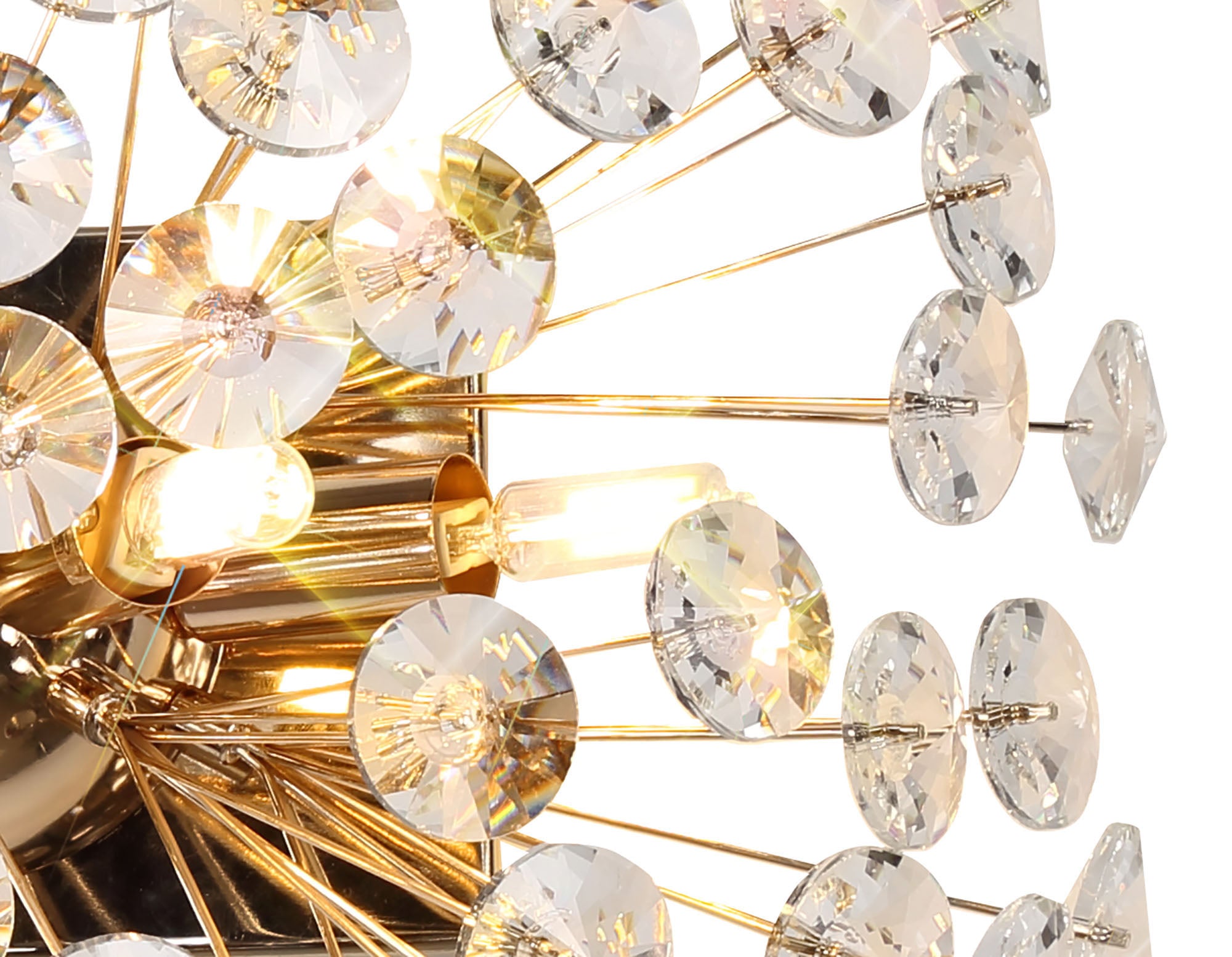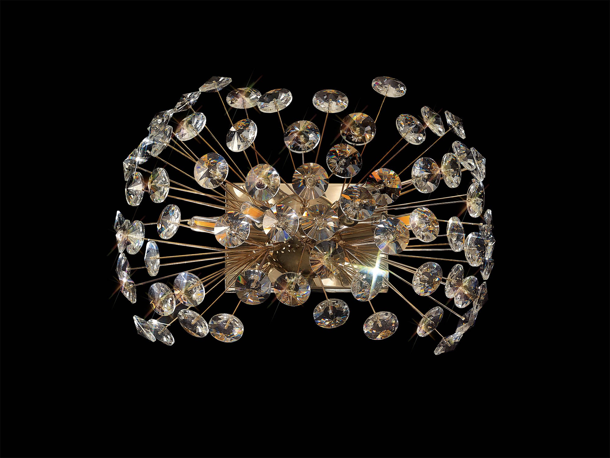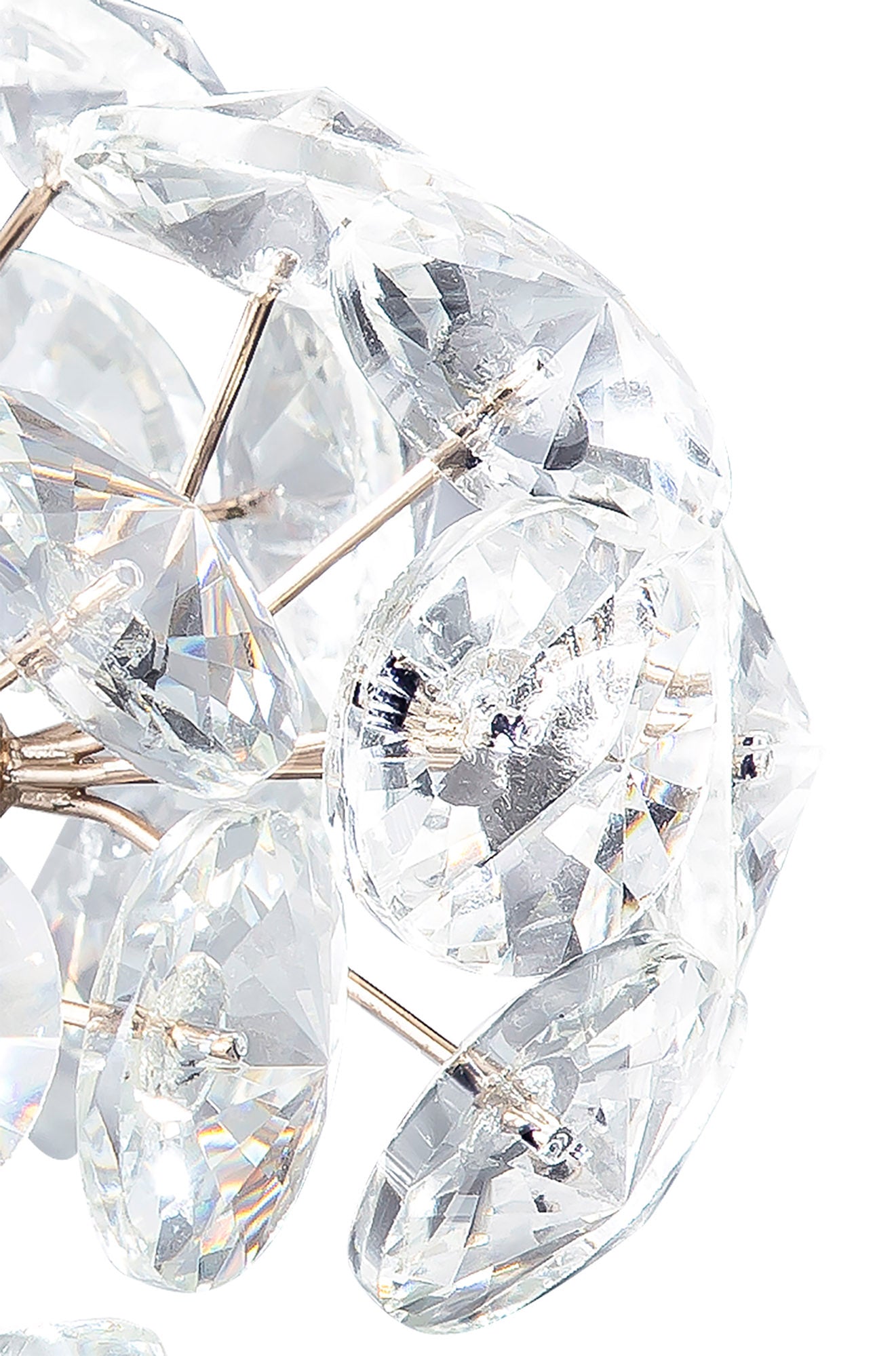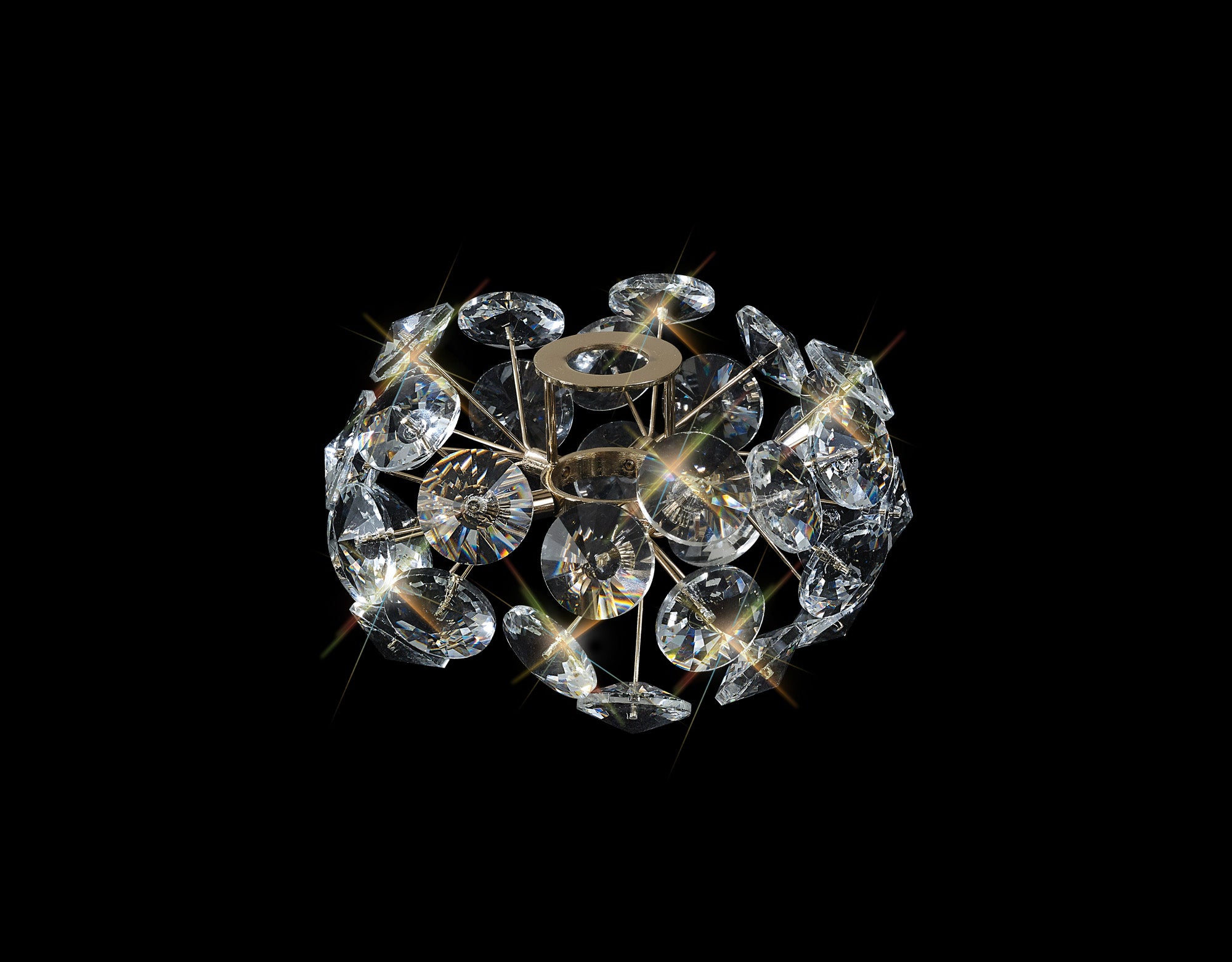 This stunning collection features slim, erratically angled stems that create a captivating cluster of clear crystal disks. The central framework comes in round, tiered, and oblong linear pendant designs, making each piece a striking addition to any space.