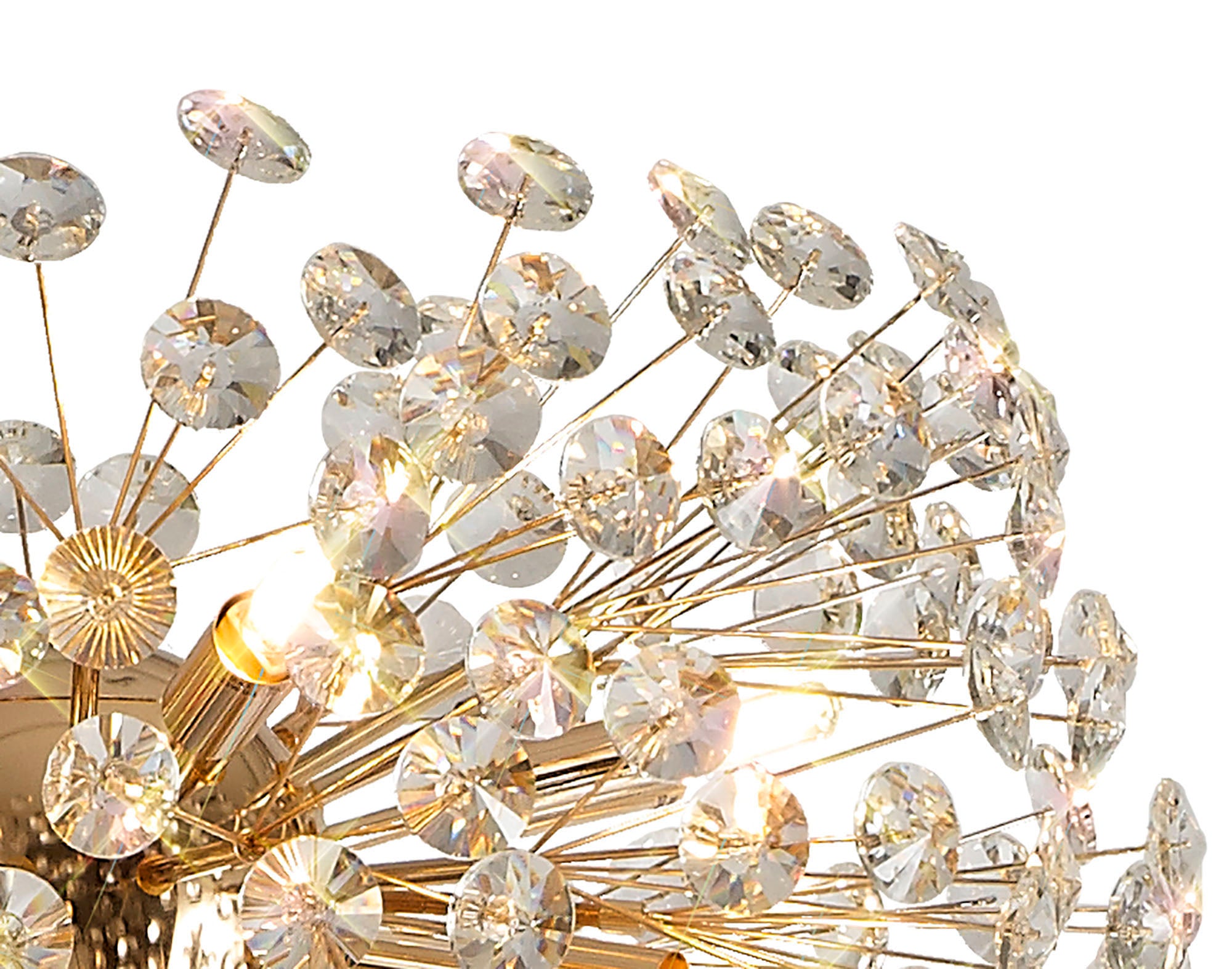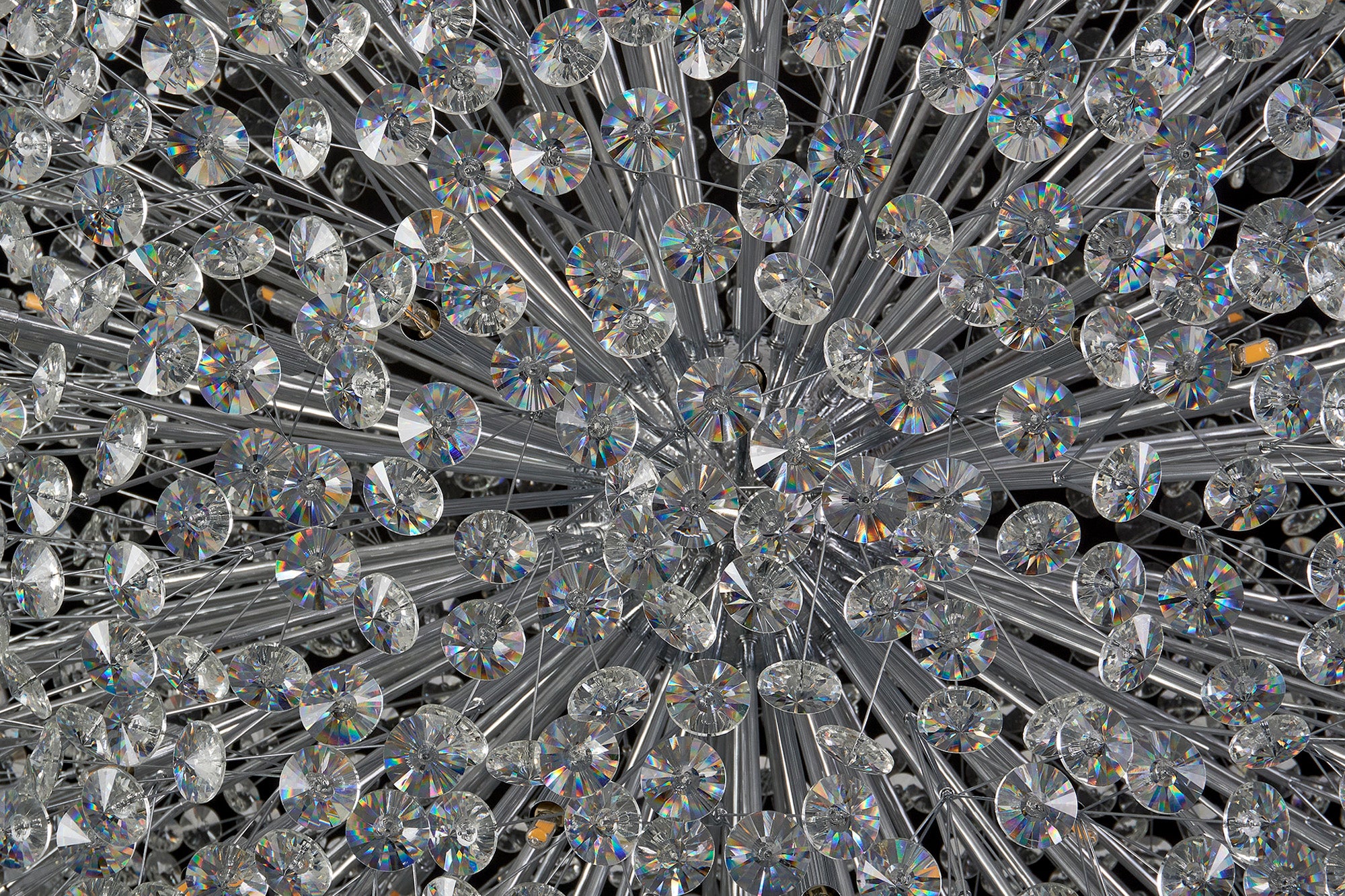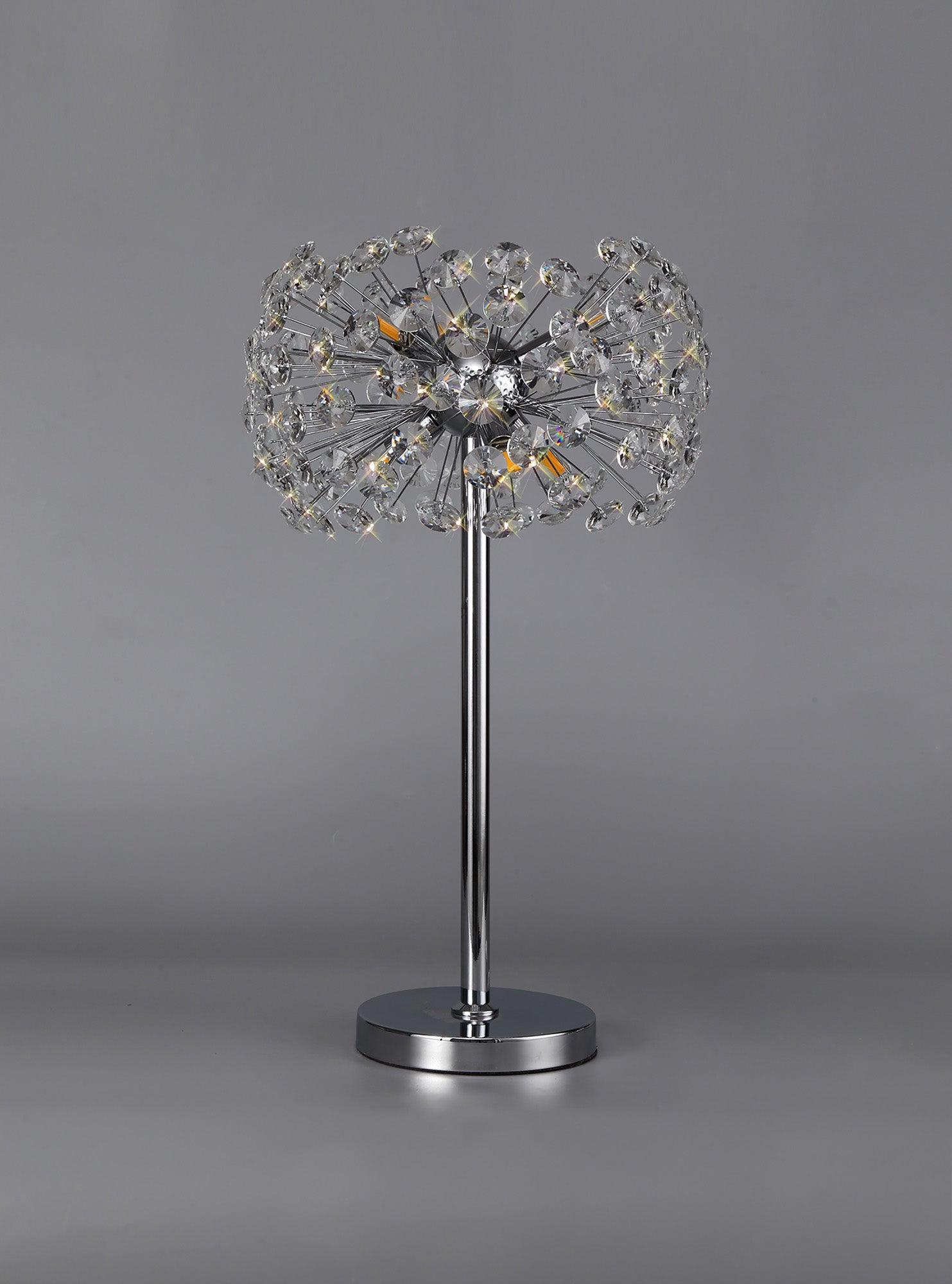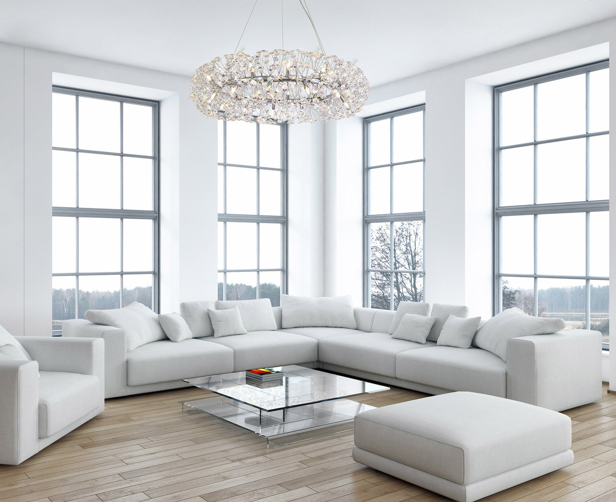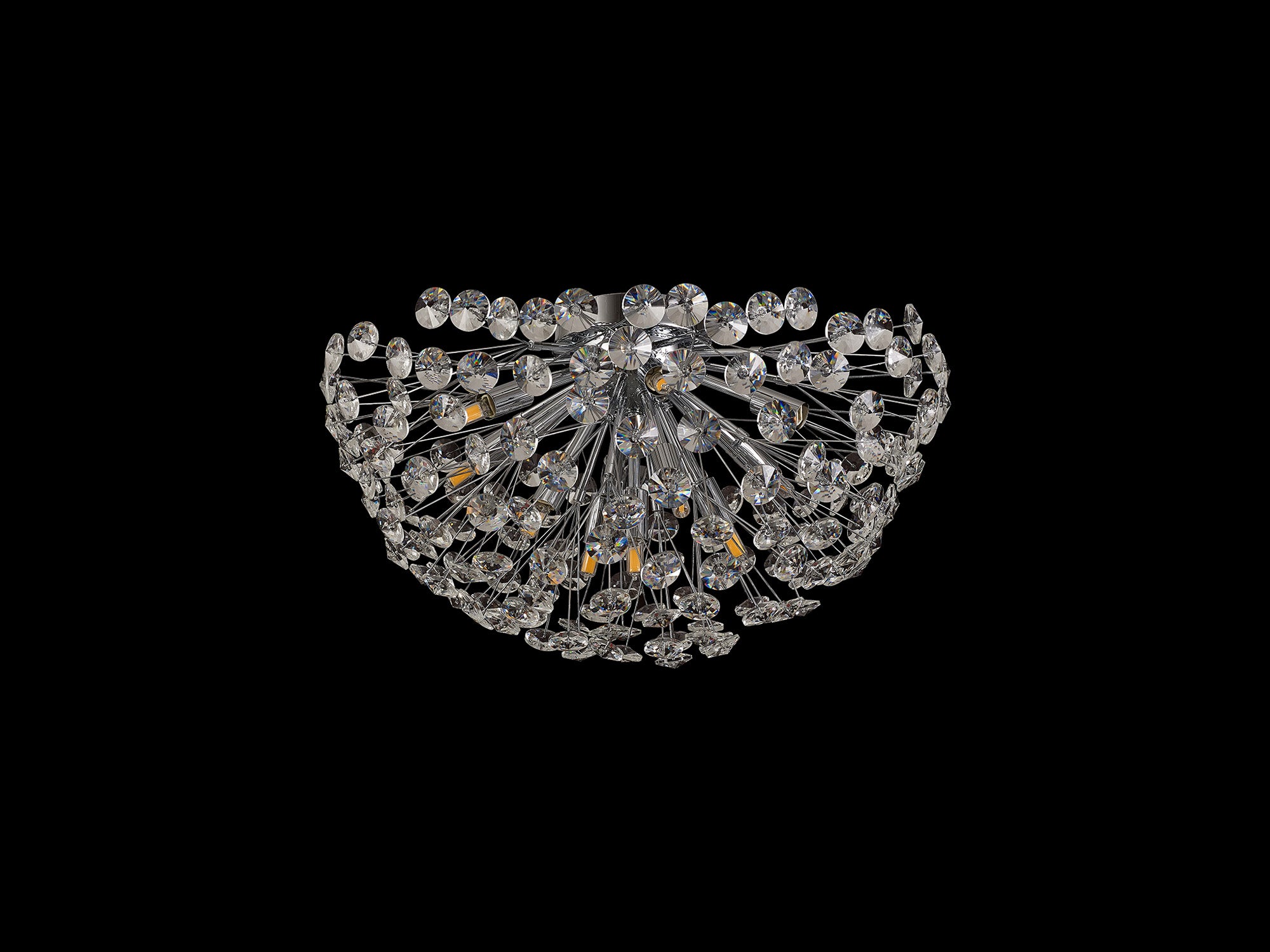 This stunning collection features slim, erratically angled stems that create a captivating cluster of clear crystal disks. The central framework comes in round, tiered, and oblong linear pendant designs, making each piece a striking addition to any space.