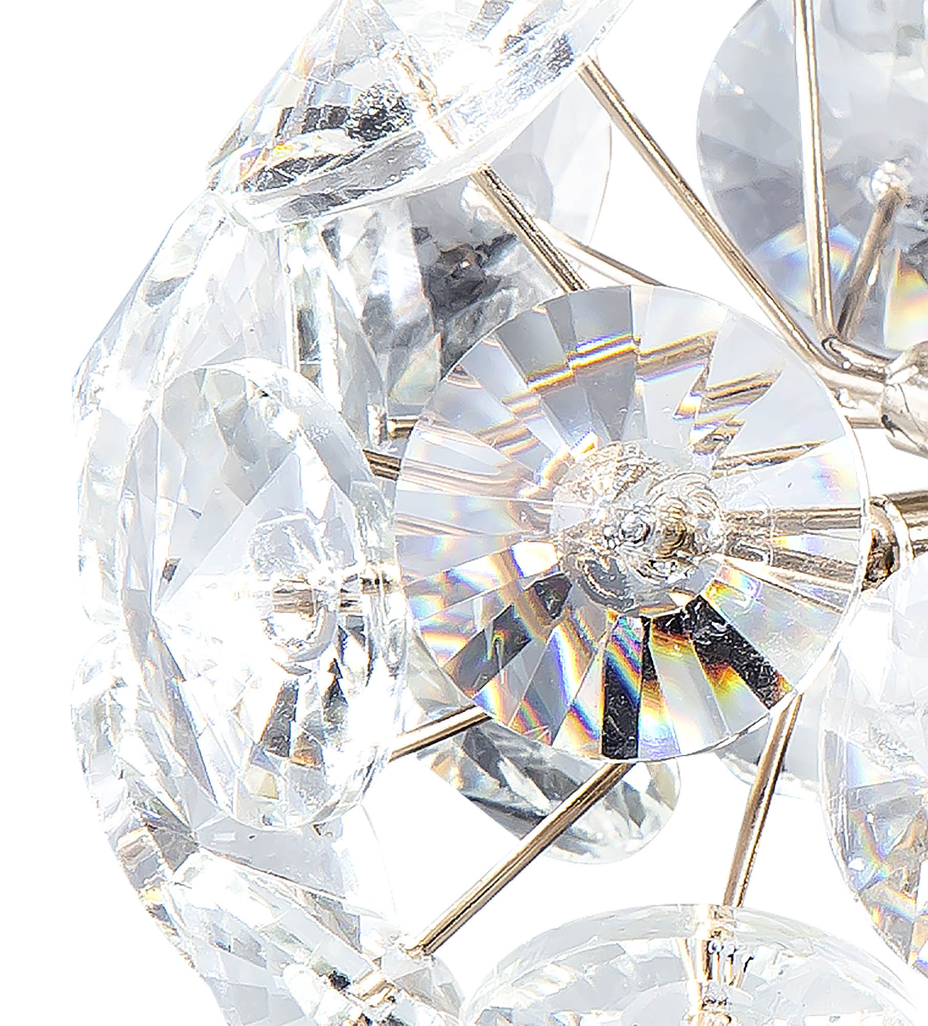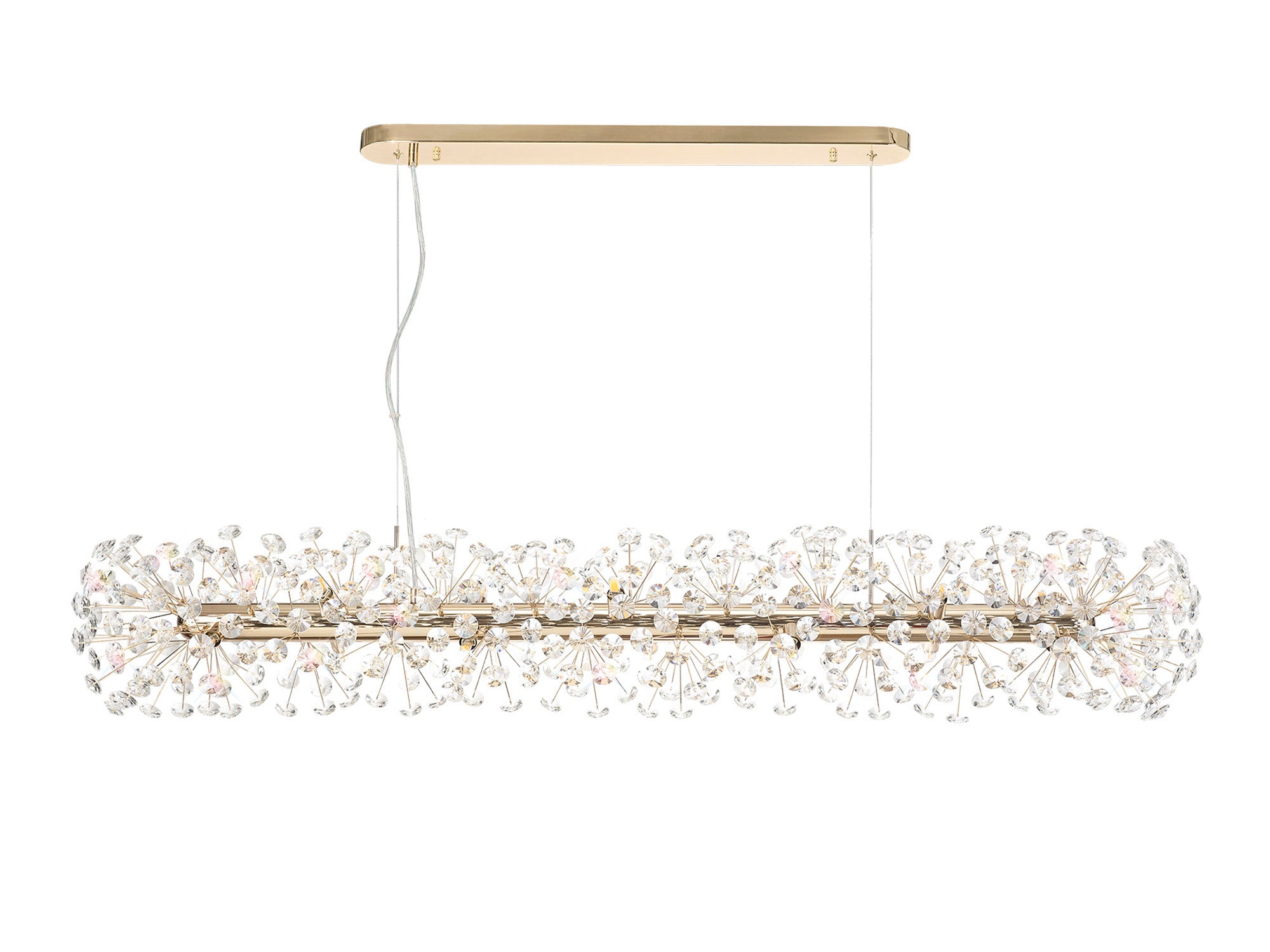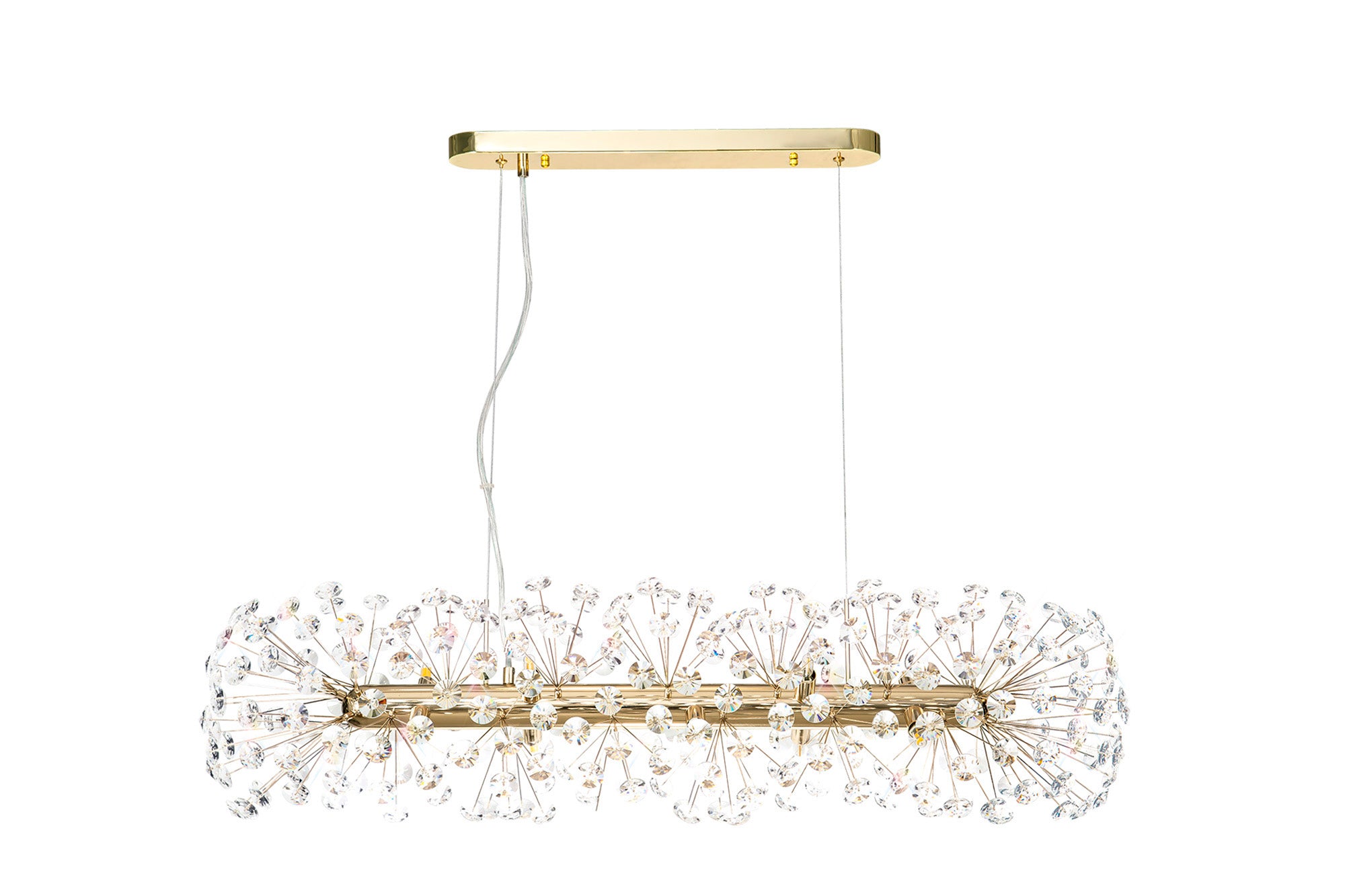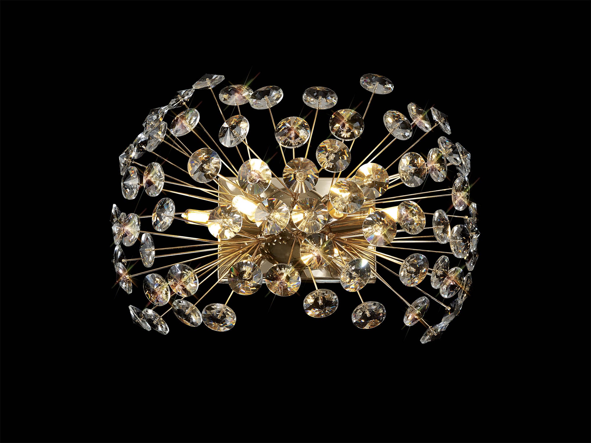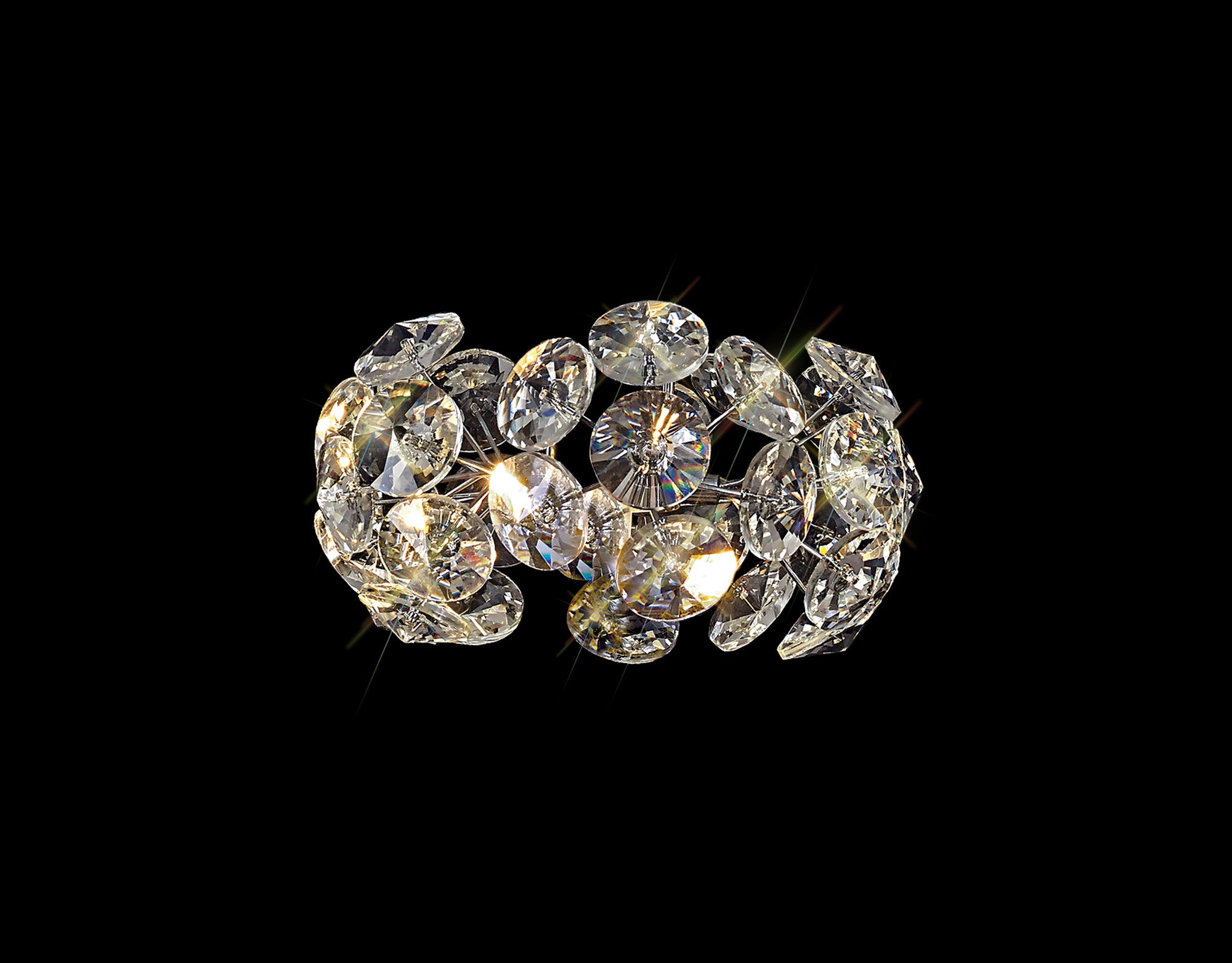This stunning collection features slim, erratically angled stems that create a captivating cluster of clear crystal disks. The central framework comes in round, tiered, and oblong linear pendant designs, making each piece a striking addition to any space.