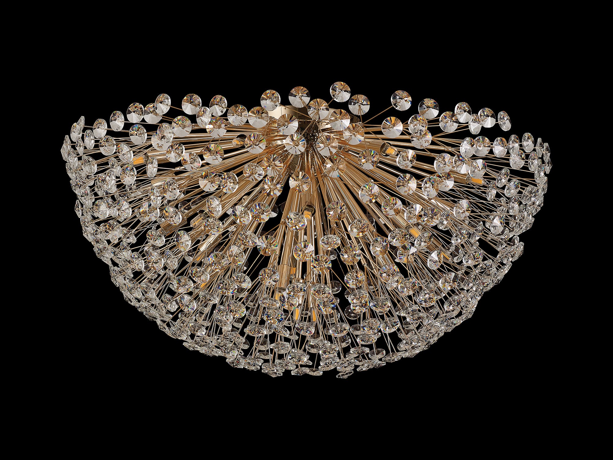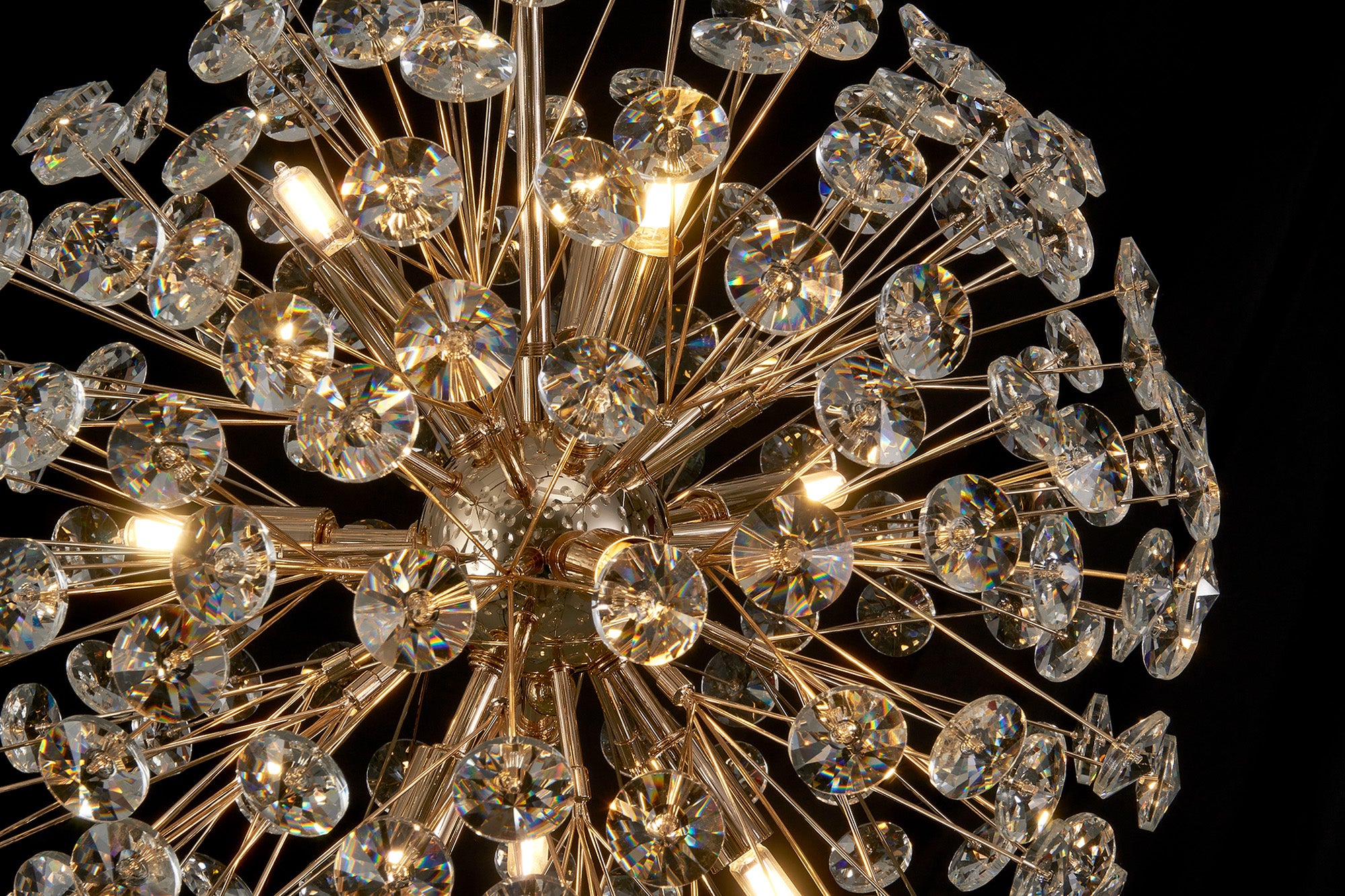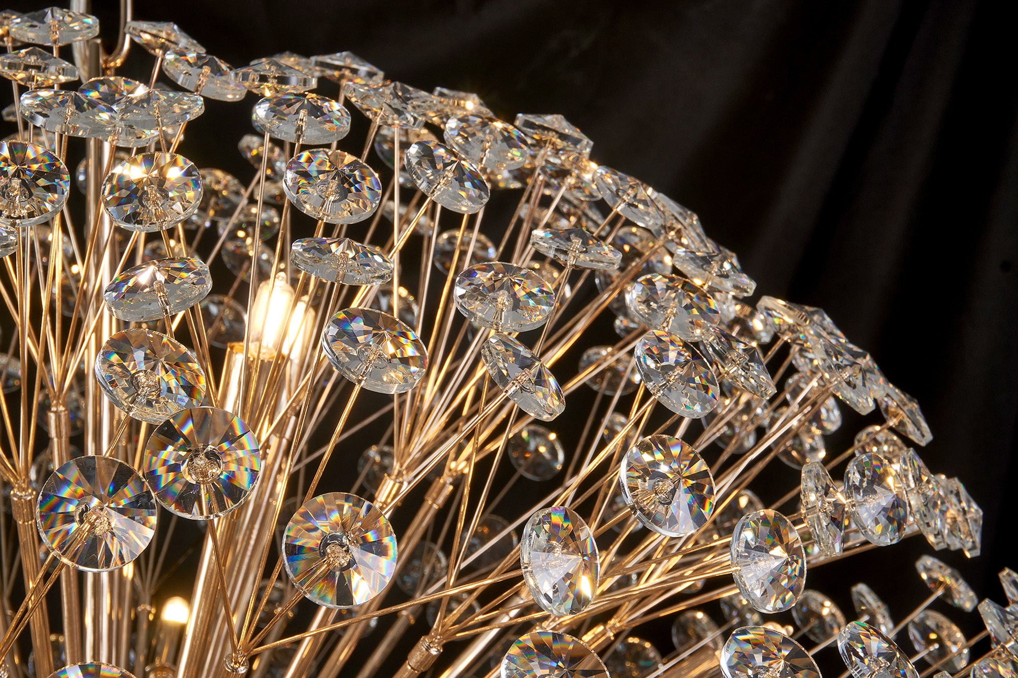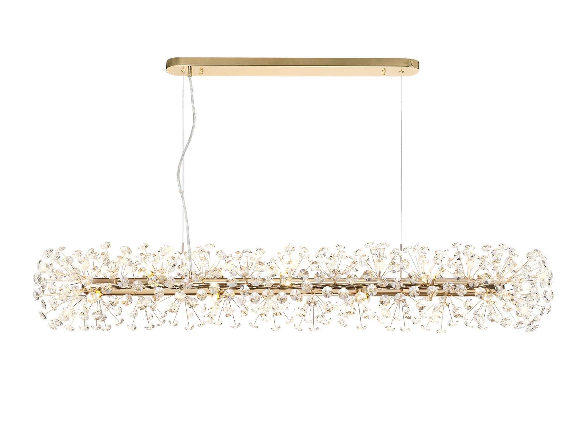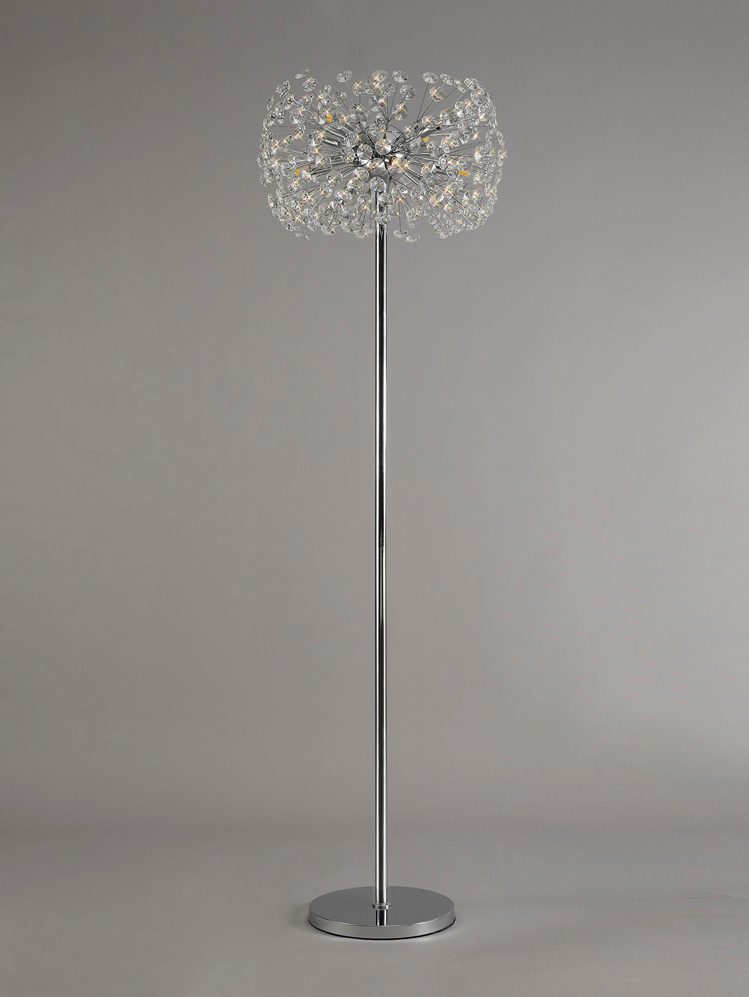 This stunning collection features slim, erratically angled stems that create a captivating cluster of clear crystal disks. The central framework comes in round, tiered, and oblong linear pendant designs, making each piece a striking addition to any space.