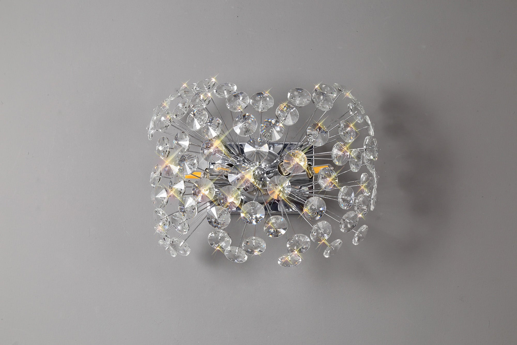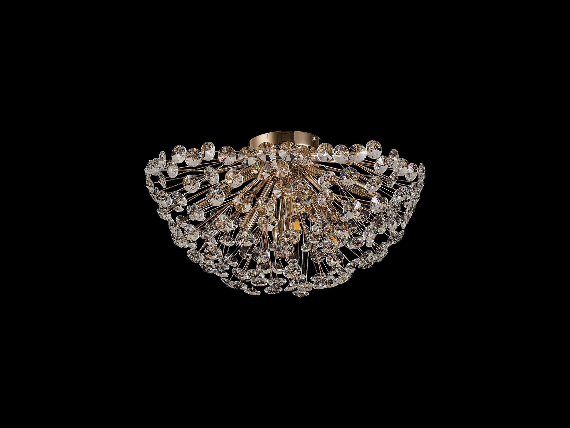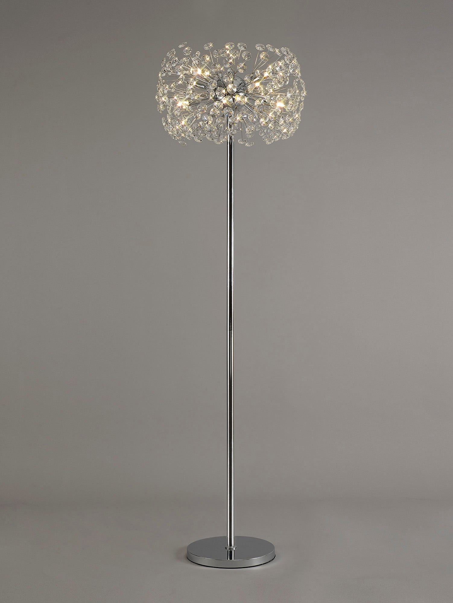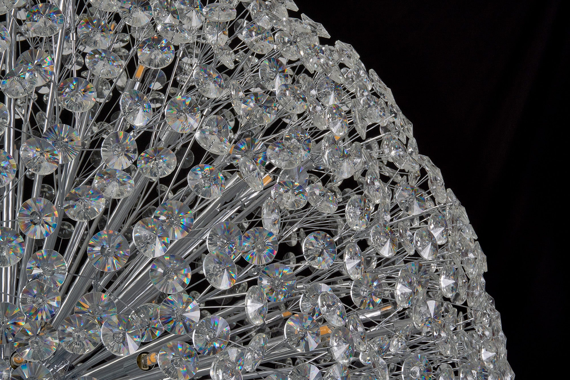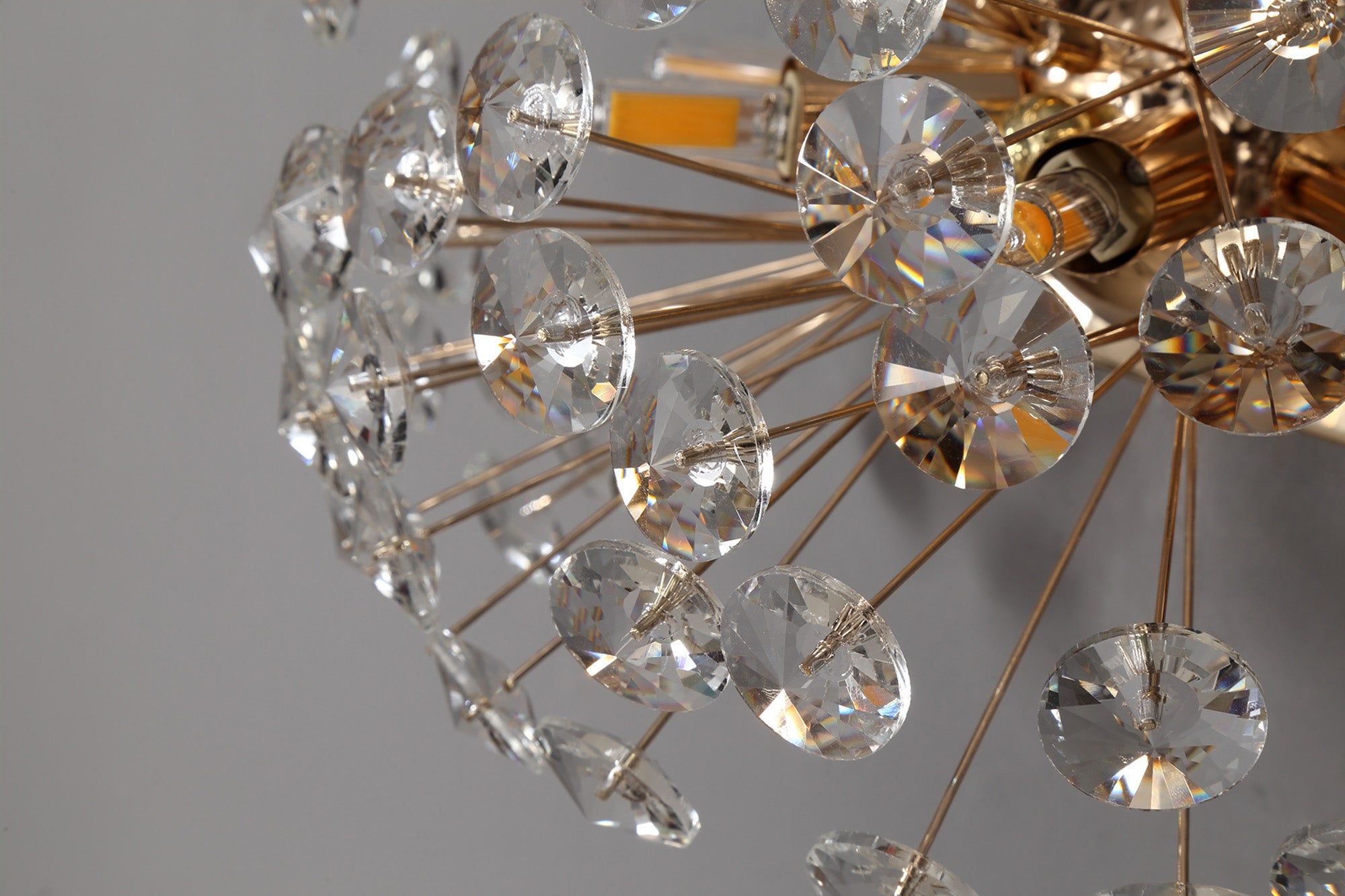 This stunning collection features slim, erratically angled stems that create a captivating cluster of clear crystal disks. The central framework comes in round, tiered, and oblong linear pendant designs, making each piece a striking addition to any space.