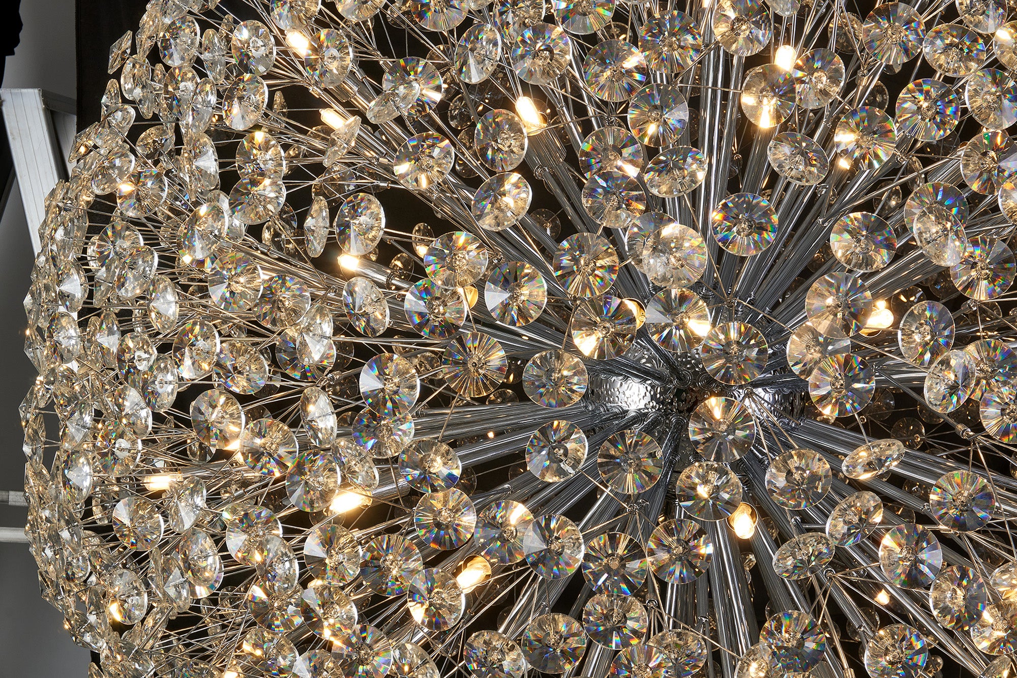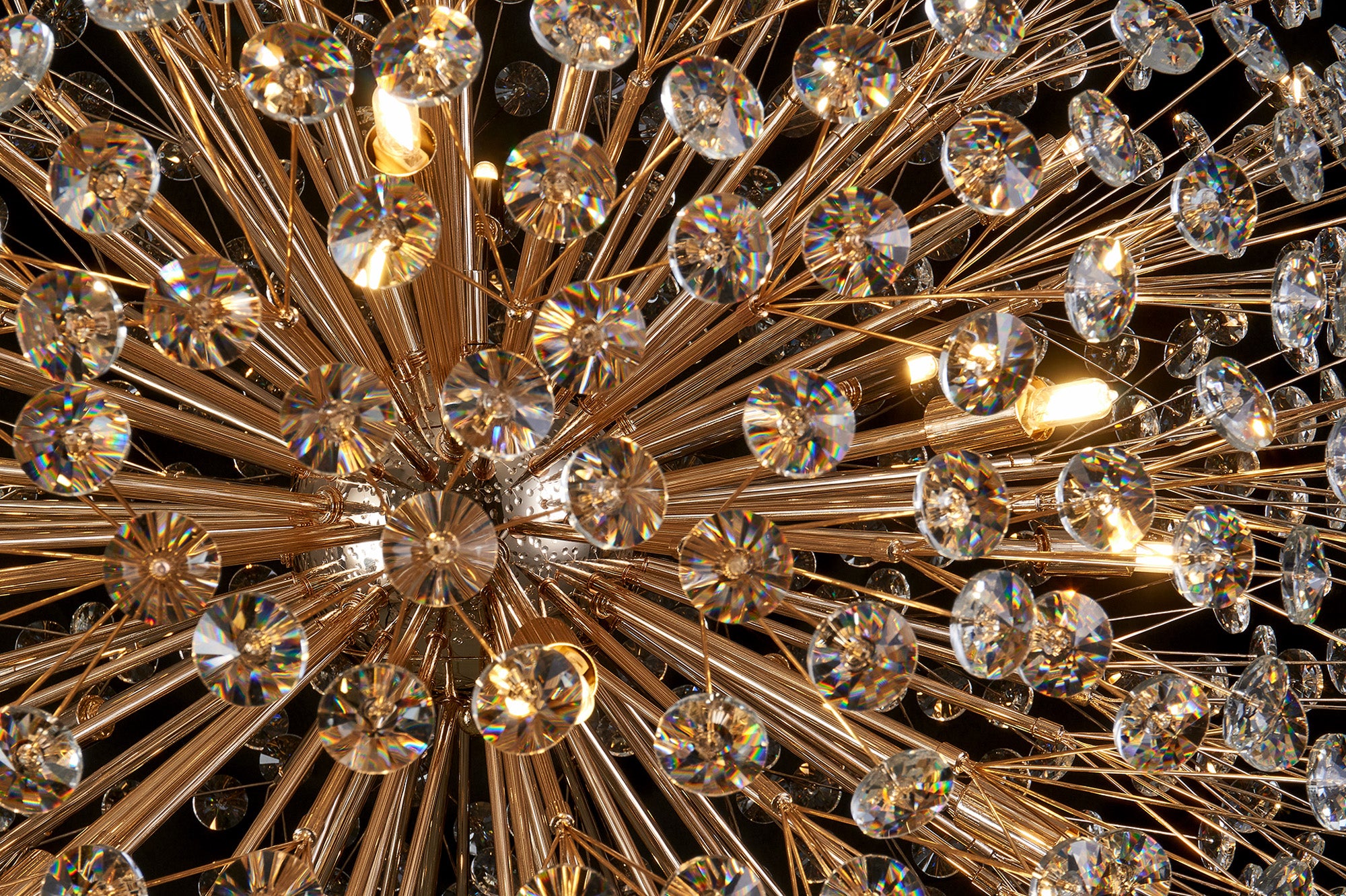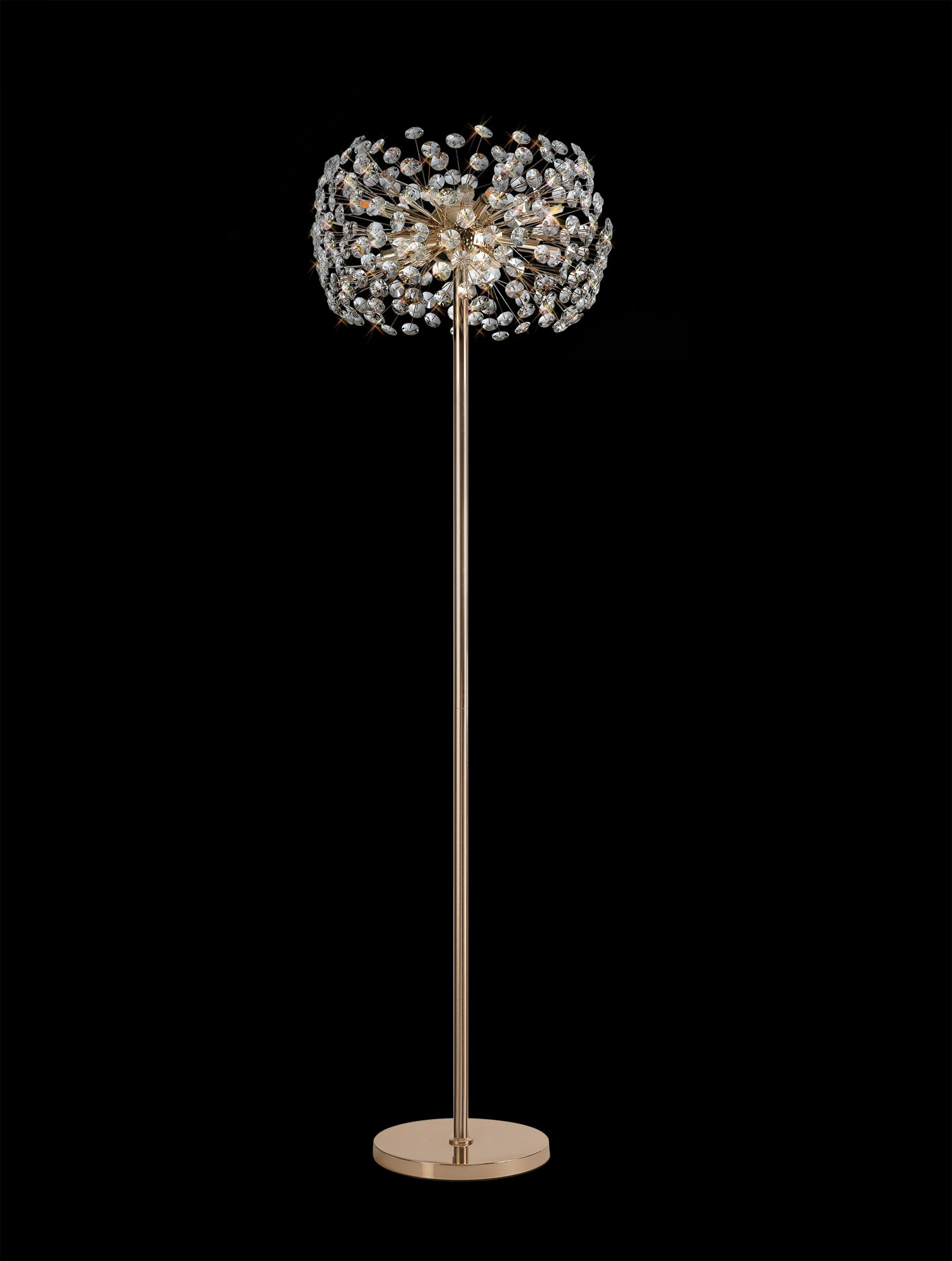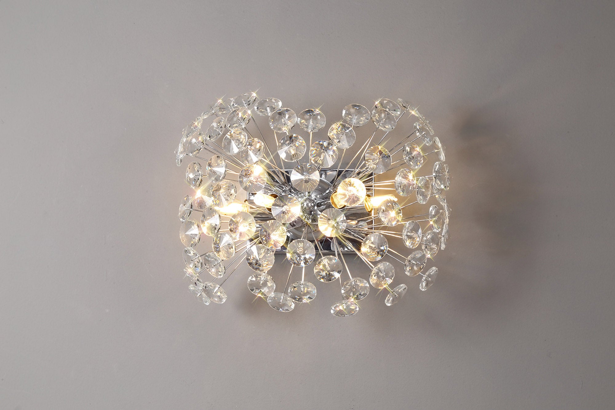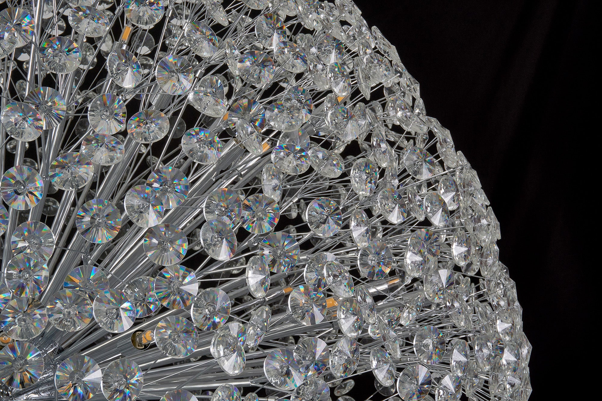 This stunning collection features slim, erratically angled stems that create a captivating cluster of clear crystal disks. The central framework comes in round, tiered, and oblong linear pendant designs, making each piece a striking addition to any space.