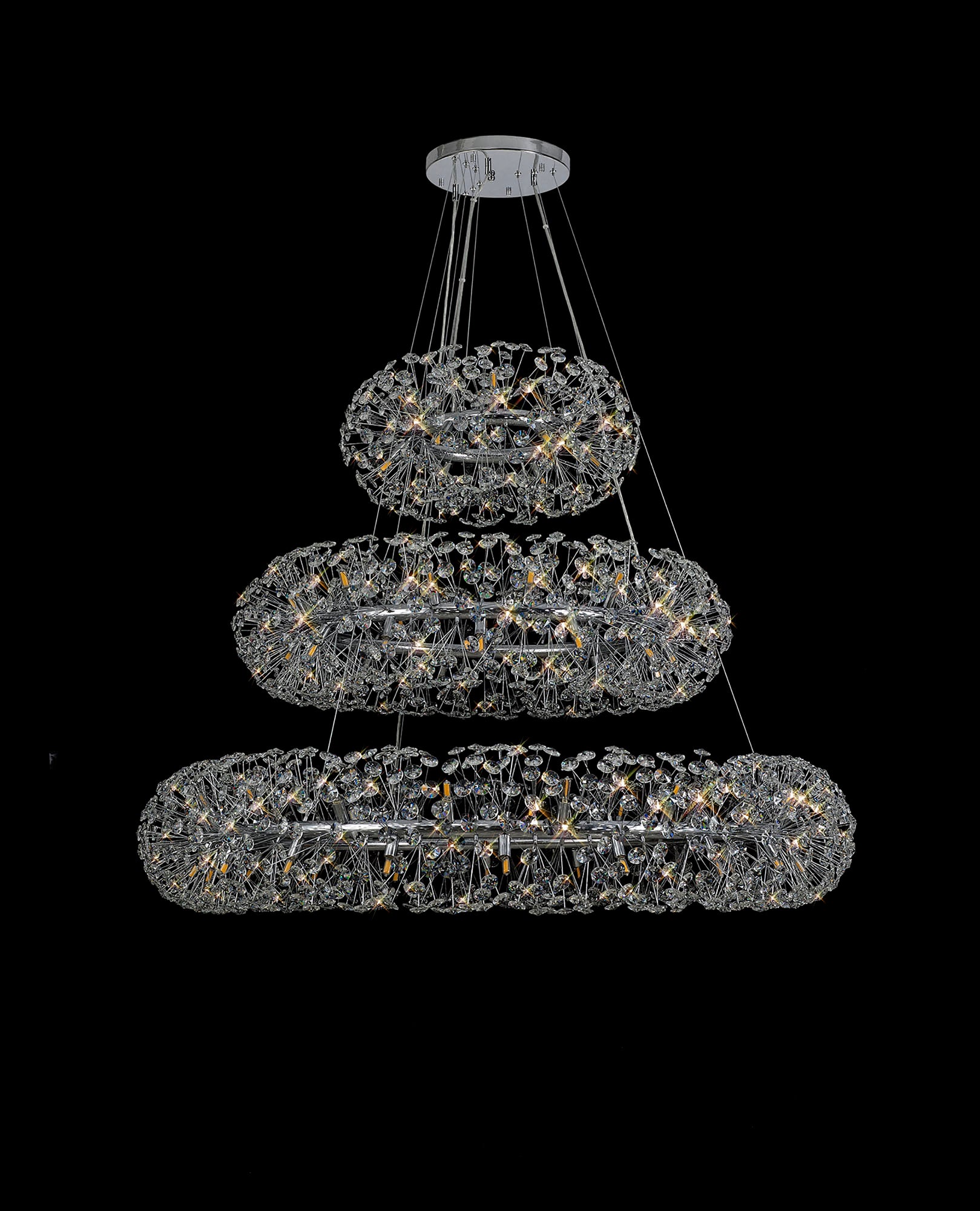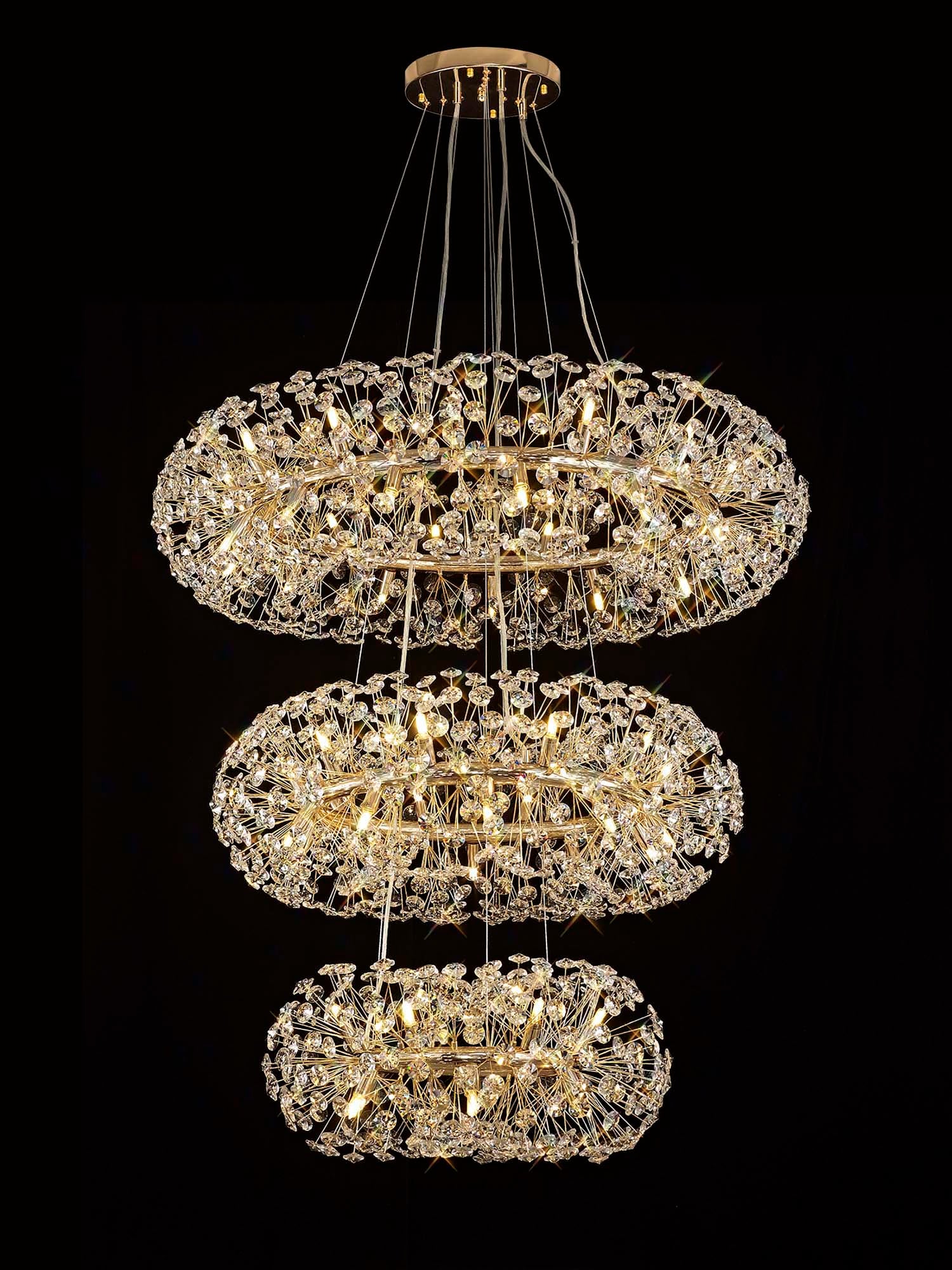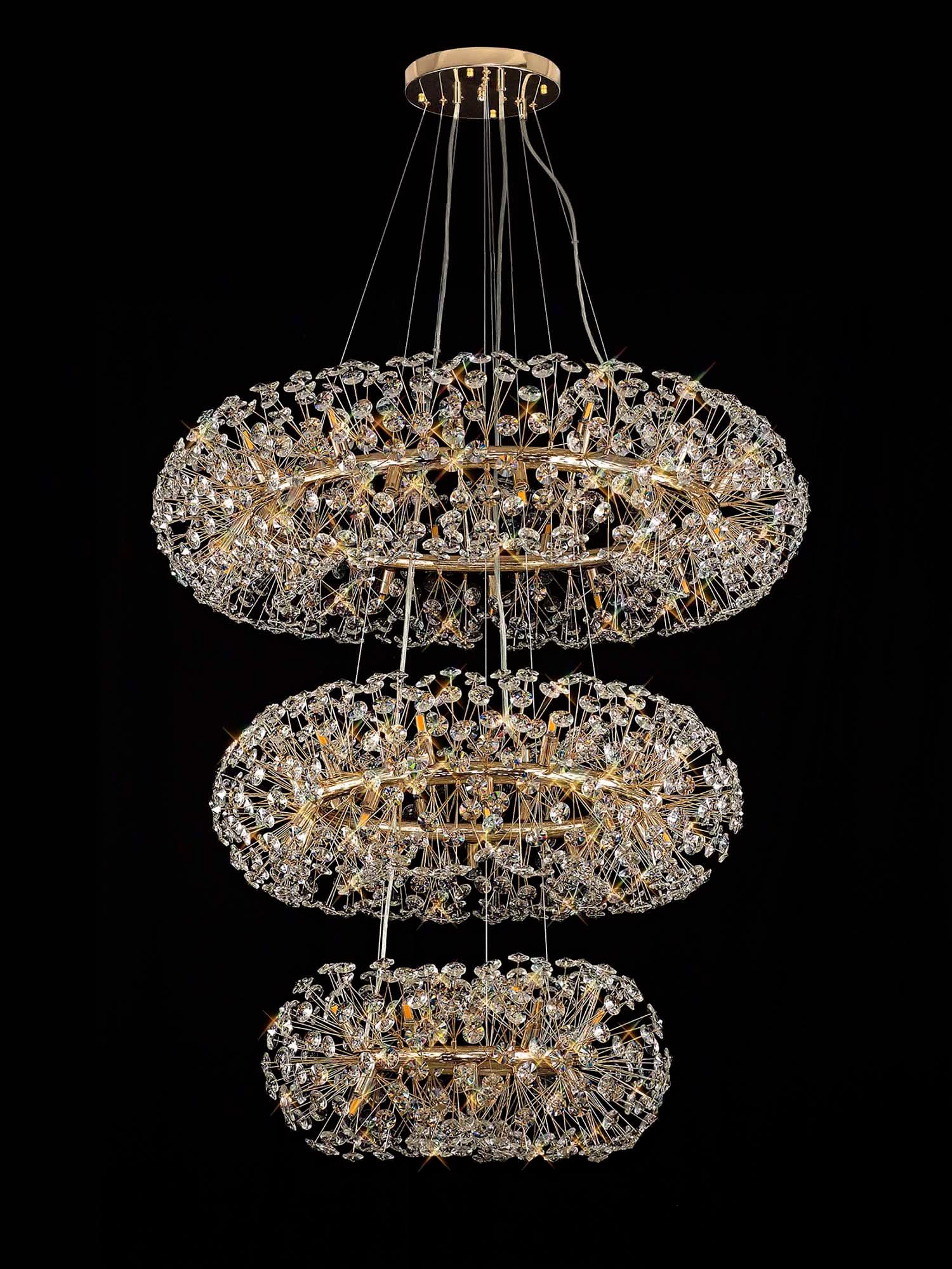 The Chakkar range by Lightologist is our best-selling collection of decorative ceiling pendant chandeliers, offered in elegant French Gold and polished chrome finishes with options ranging from single to triple tiers.