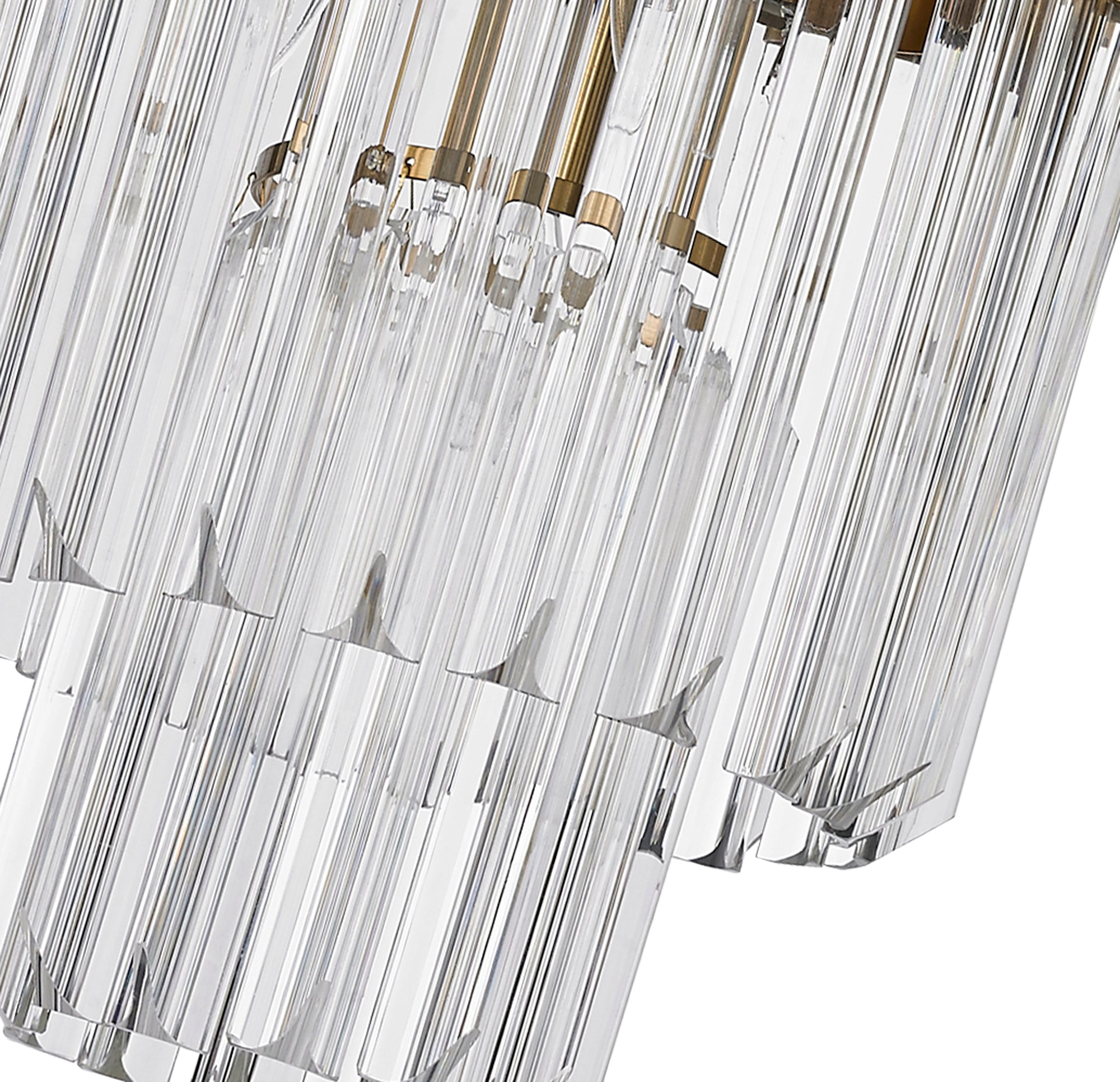 The popularity of the Knightsbridge collections initial release has been so overwhelming that the collection has now been extensively expanded to meet a wider range of specification needs. This contemporary design which originally combined a traditional brass finish with clear crystal glass pieces, now offers a polished nickel finish with either clear or smoked glass. The long angular shape of the glass which are in a tiered form, can now be found on larger more dramatic designs including a five tier and rectangular pendant to name only a few. Knightsbridge has a traditional noble effect composed with modern materials to create a range suitable for either a modern or more traditional room setting. The unique pyramid forms protruding from the frame provide an intriguing overall shape across this comprehensive collection.