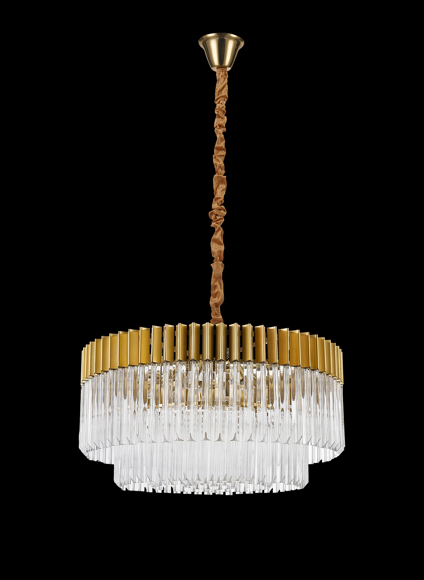 The popularity of the Knightsbridge collections initial release has been so overwhelming that the collection has now been extensively expanded to meet a wider range of specification needs. This contemporary design which originally combined a traditional brass finish with clear crystal glass pieces, now offers a polished nickel finish with either clear or smoked glass. The long angular shape of the glass which are in a tiered form, can now be found on larger more dramatic designs including a five tier and rectangular pendant to name only a few. Knightsbridge has a traditional noble effect composed with modern materials to create a range suitable for either a modern or more traditional room setting. The unique pyramid forms protruding from the frame provide an intriguing overall shape across this comprehensive collection.