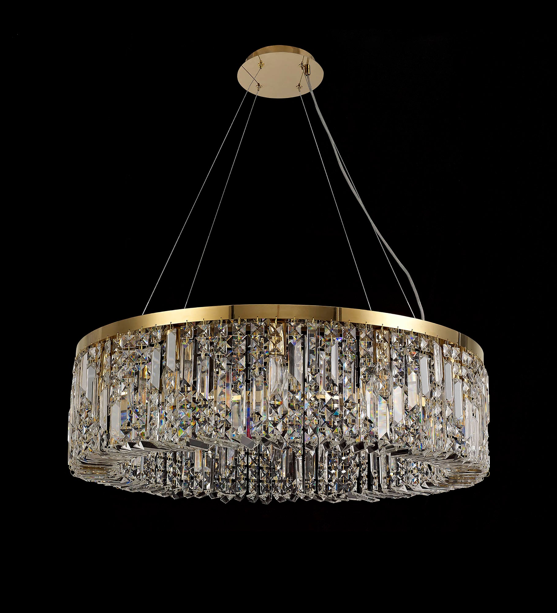 Mayfair 80cm Round Pendant Chandelier, 12 Light E14, Gold/Crystal Item Weight: 16.8kg - LO178173