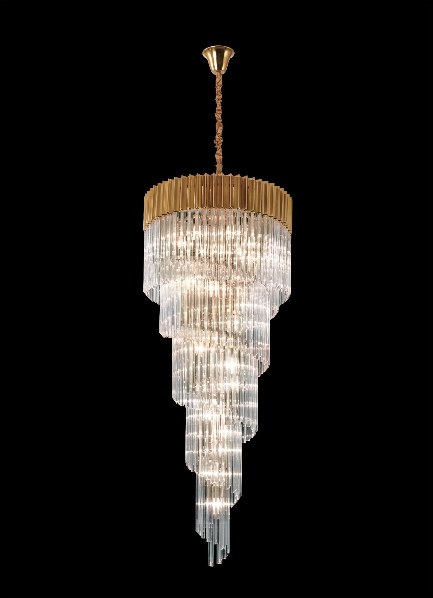 The popularity of the Knightsbridge collections initial release has been so overwhelming that the collection has now been extensively expanded to meet a wider range of specification needs. This contemporary design which originally combined a traditional brass finish with clear crystal glass pieces, now offers a polished nickel finish with either clear or smoked glass. The long angular shape of the glass which are in a tiered form, can now be found on larger more dramatic designs including a five tier and rectangular pendant to name only a few. Knightsbridge has a traditional noble effect composed with modern materials to create a range suitable for either a modern or more traditional room setting. The unique pyramid forms protruding from the frame provide an intriguing overall shape across this comprehensive collection.