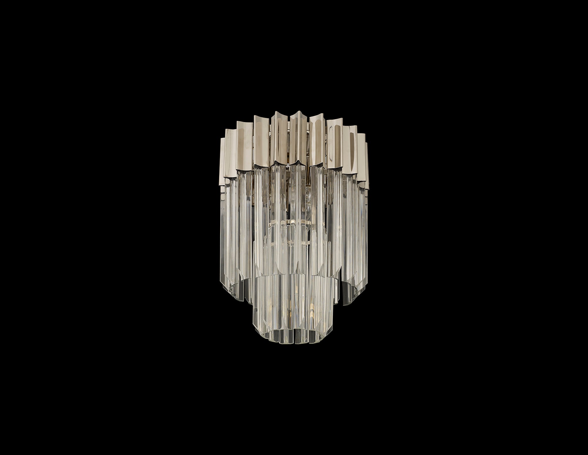 The popularity of the Knightsbridge collections initial release has been so overwhelming that the collection has now been extensively expanded to meet a wider range of specification needs. This contemporary design which originally combined a traditional brass finish with clear crystal glass pieces, now offers a polished nickel finish with either clear or smoked glass. The long angular shape of the glass which are in a tiered form, can now be found on larger more dramatic designs including a five tier and rectangular pendant to name only a few. Knightsbridge has a traditional noble effect composed with modern materials to create a range suitable for either a modern or more traditional room setting. The unique pyramid forms protruding from the frame provide an intriguing overall shape across this comprehensive collection.