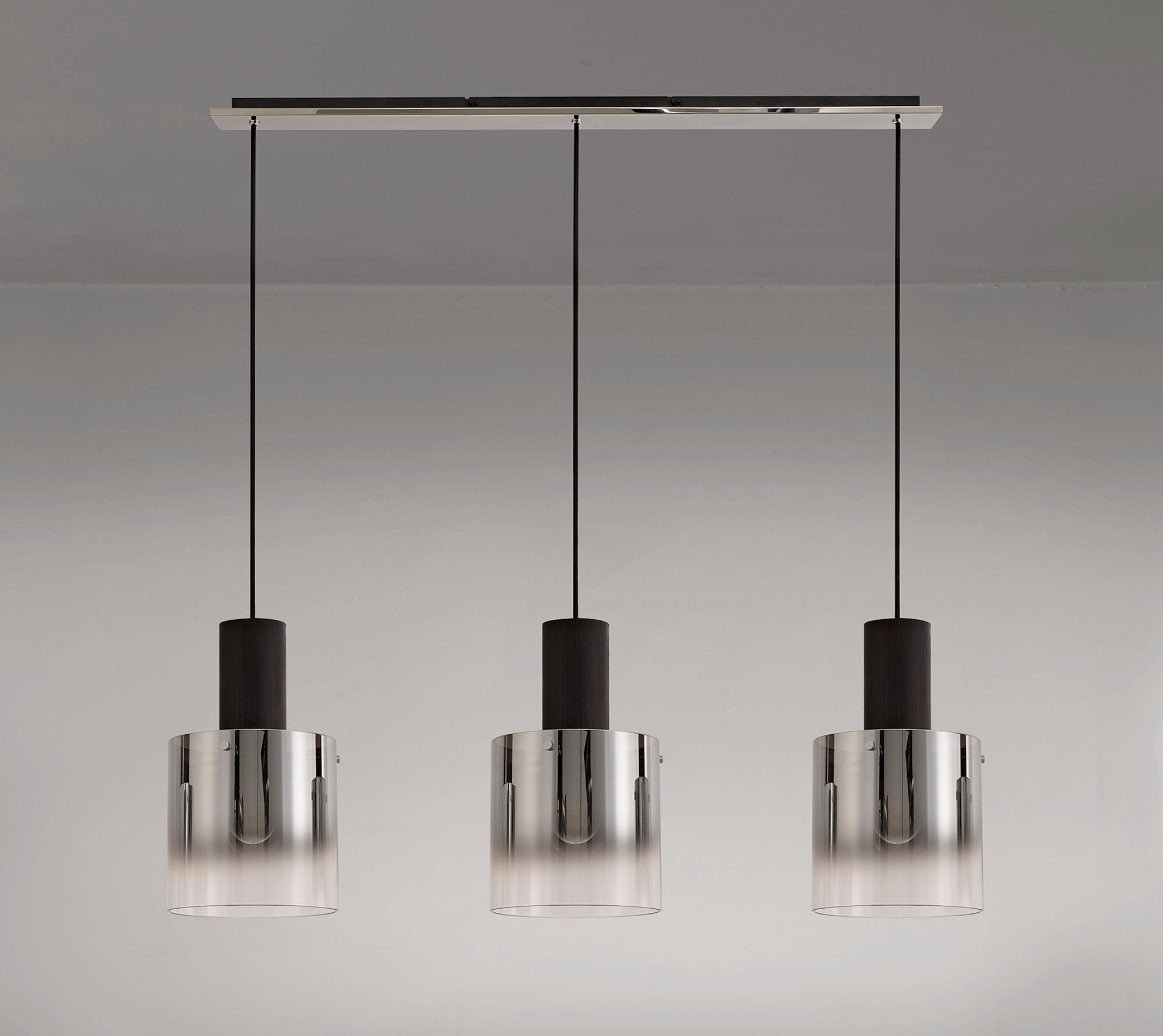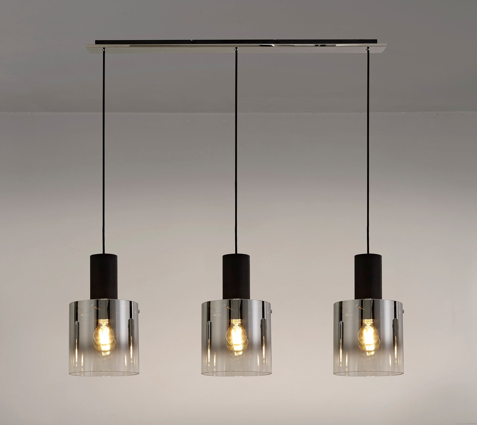 Lois Linear 3 Light Black & Chrome Smoked Glass Adjustable Pendant LO175903