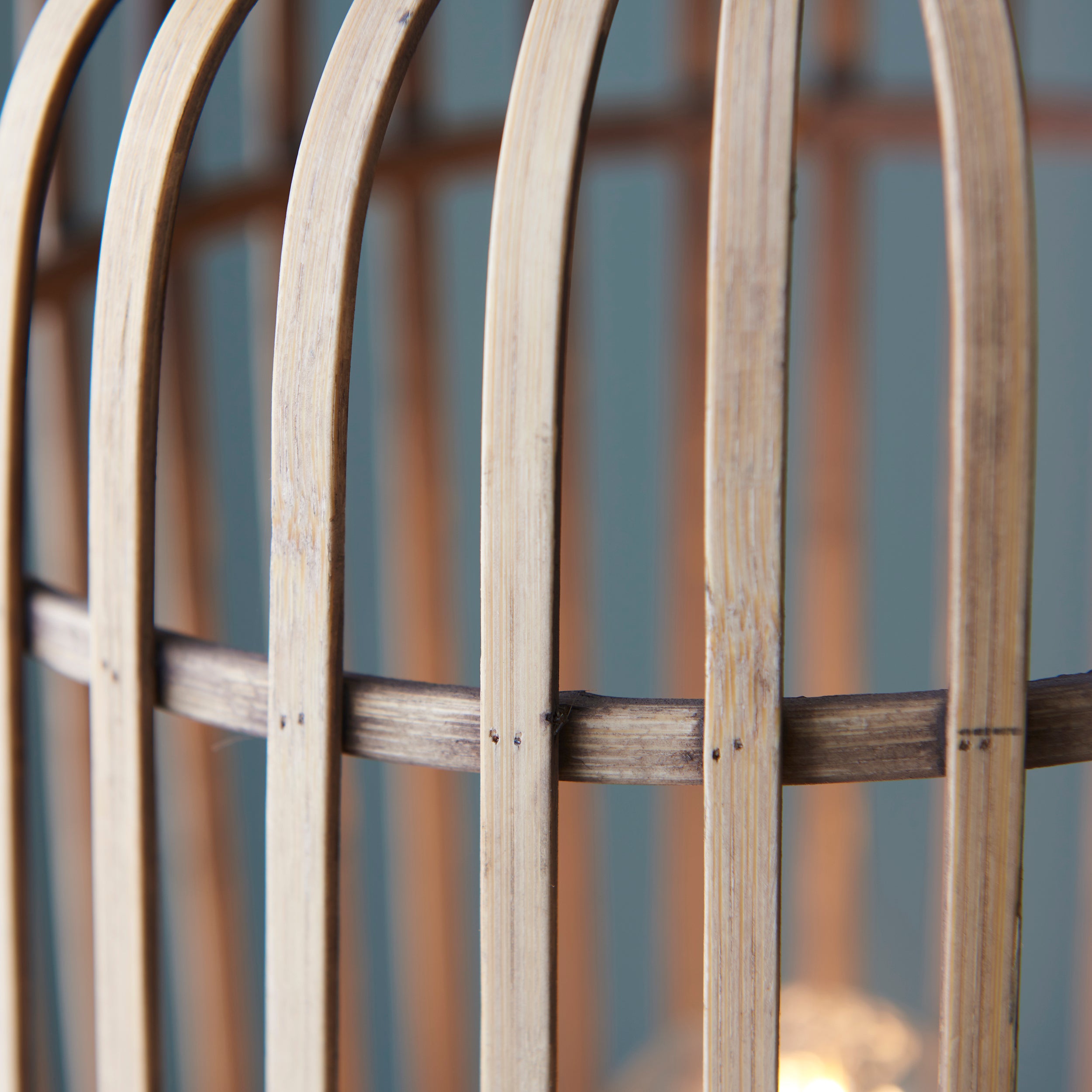 A simple and stylish floor light inspired by nature, sustainably sourced light bamboo cage, creating a soft warm light. Finished with matt black paint detailing.