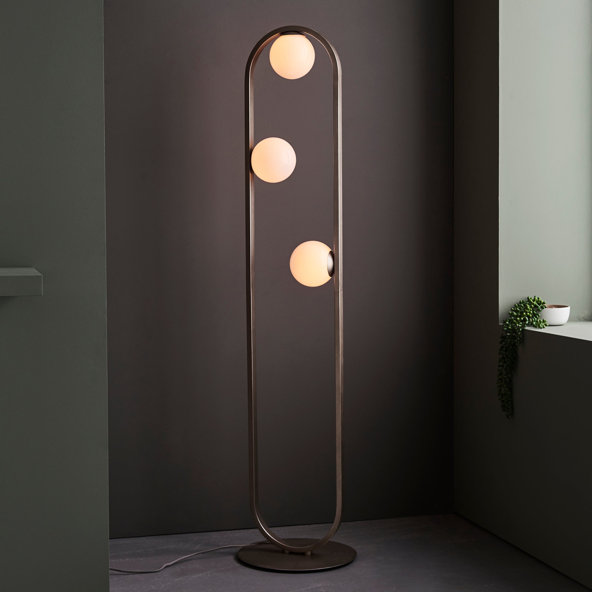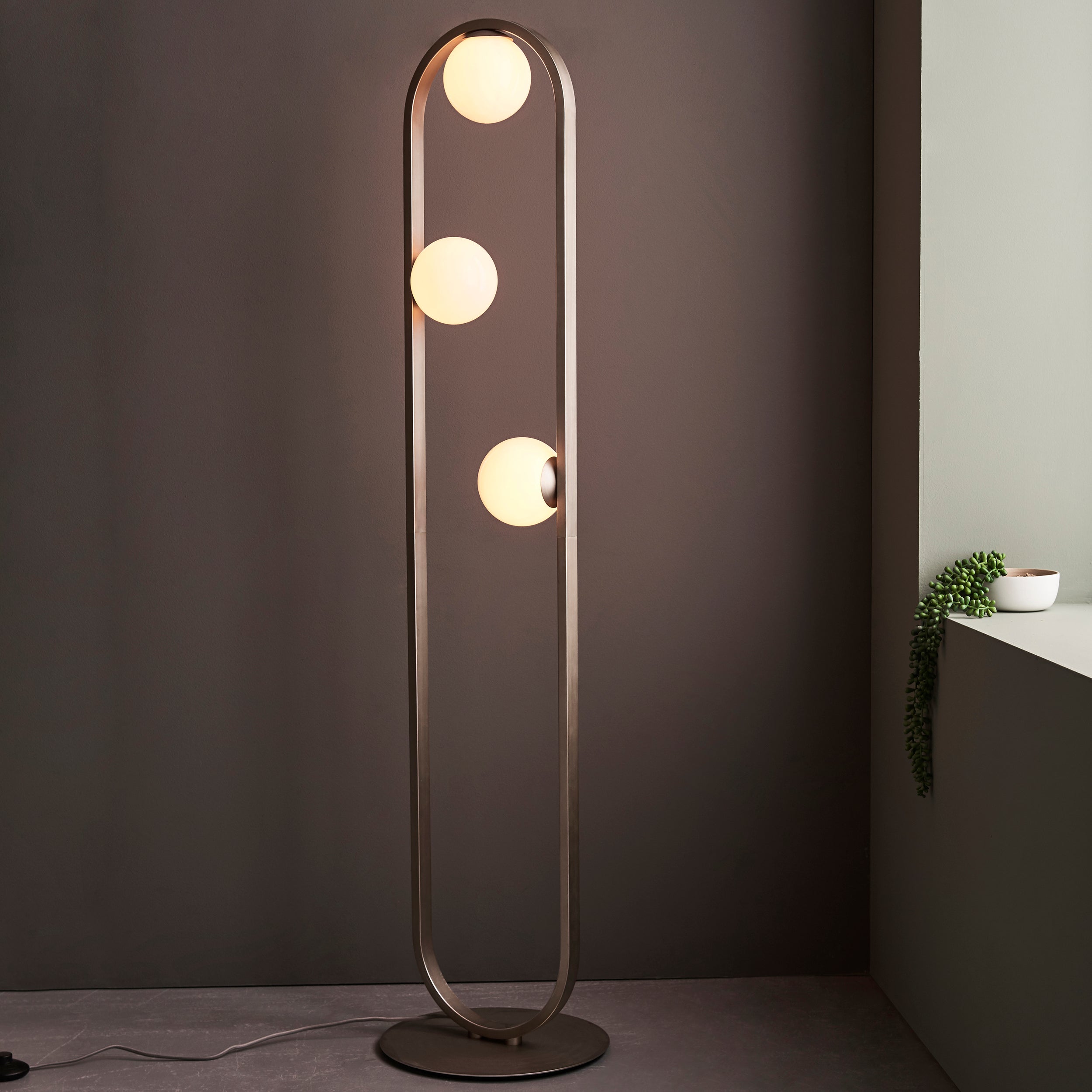 Lightologist Enzo Brushed silver finish & gloss opal glass Complete Floor Light