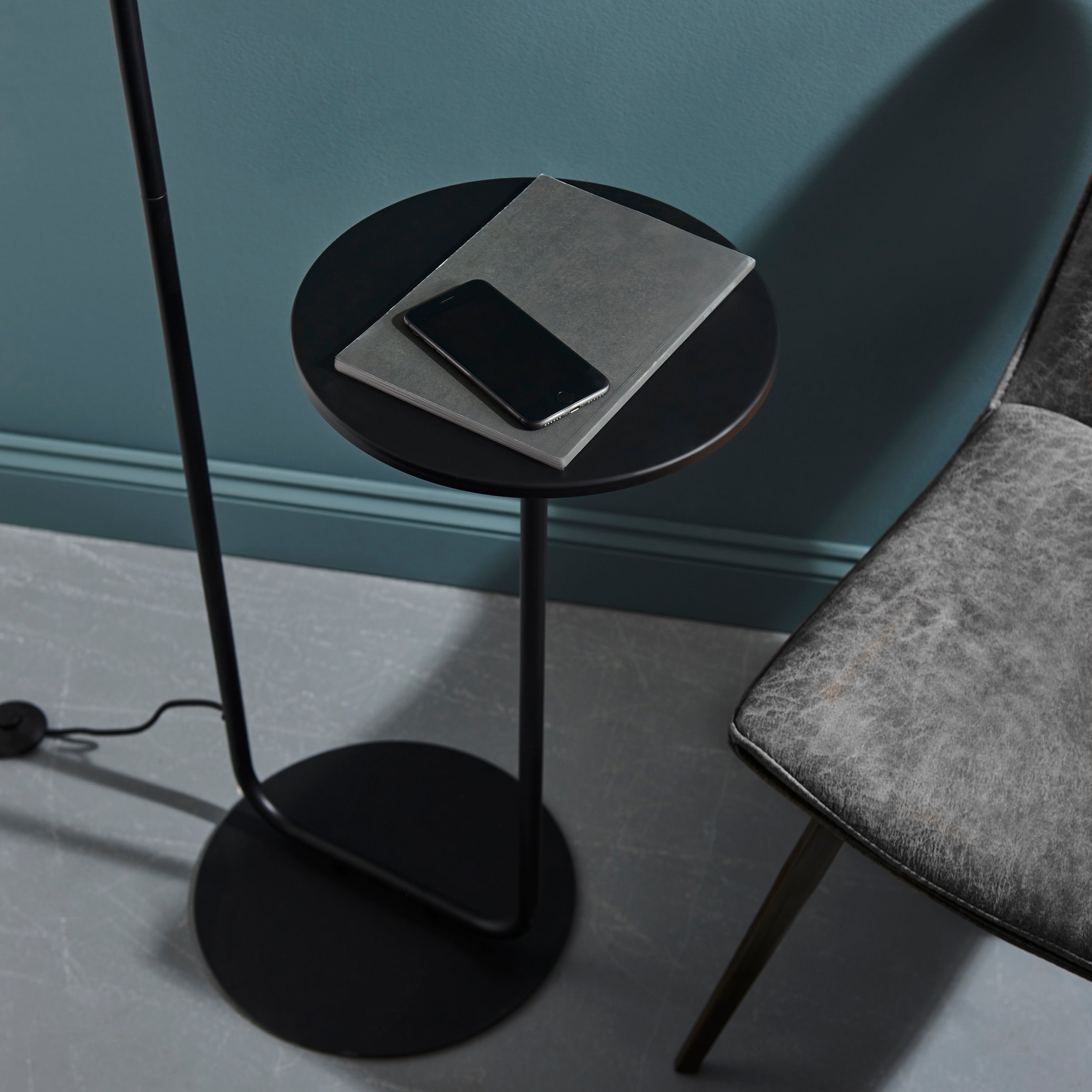 Lightologist Satin black paint & black fabric Base & shade Floor Light
