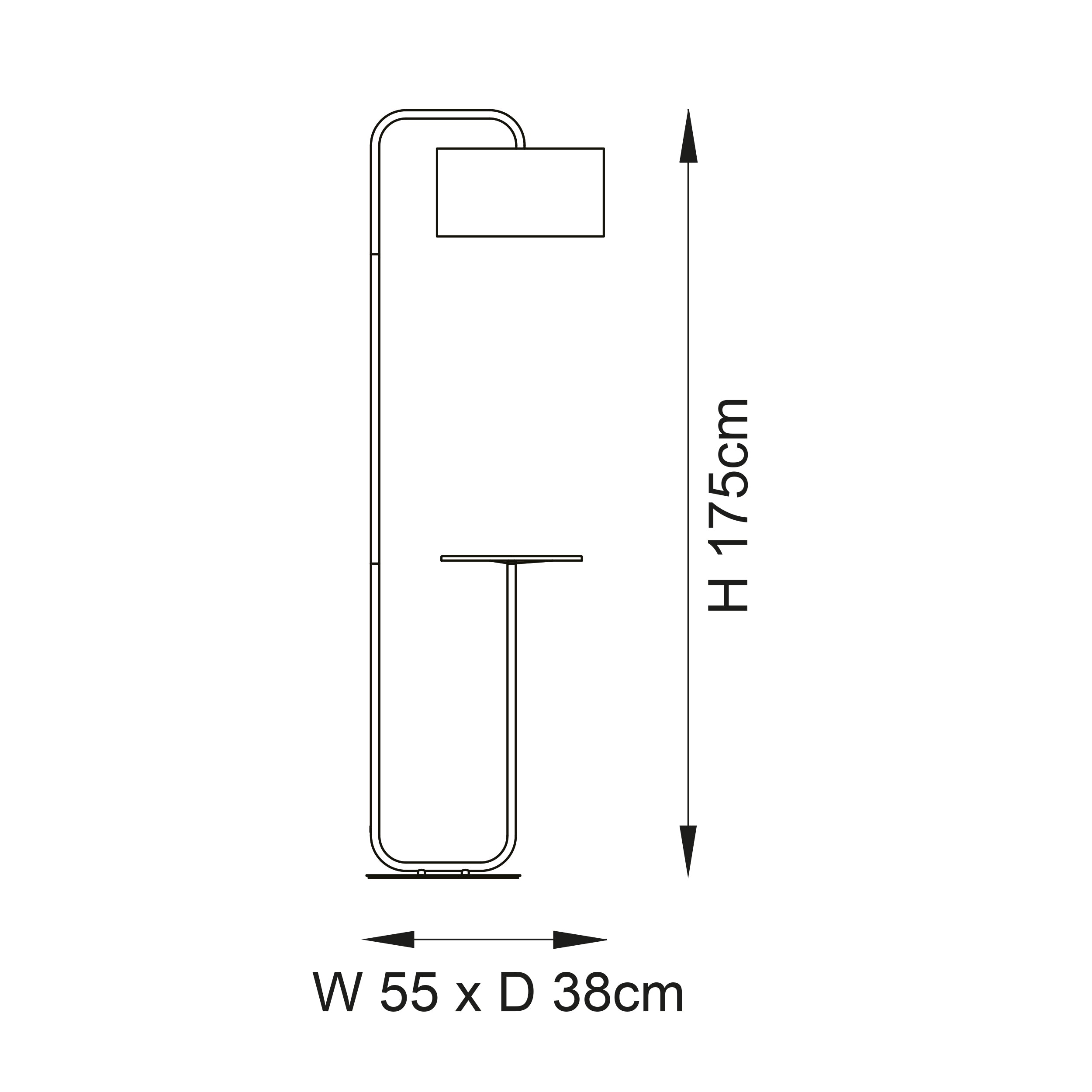 - H: 1750mm W: 550mm D: 380mm