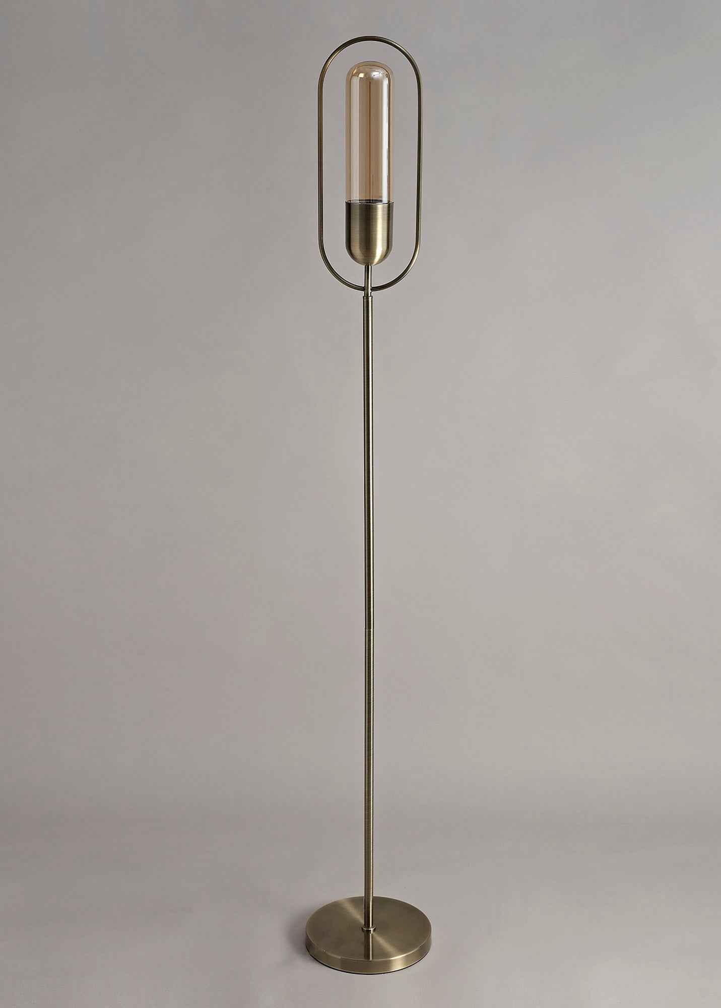 Neo Floor Lamp, 1 x 7W LED, 4000K, 790lm, Antique Brass/Amber, 3yrs Warranty