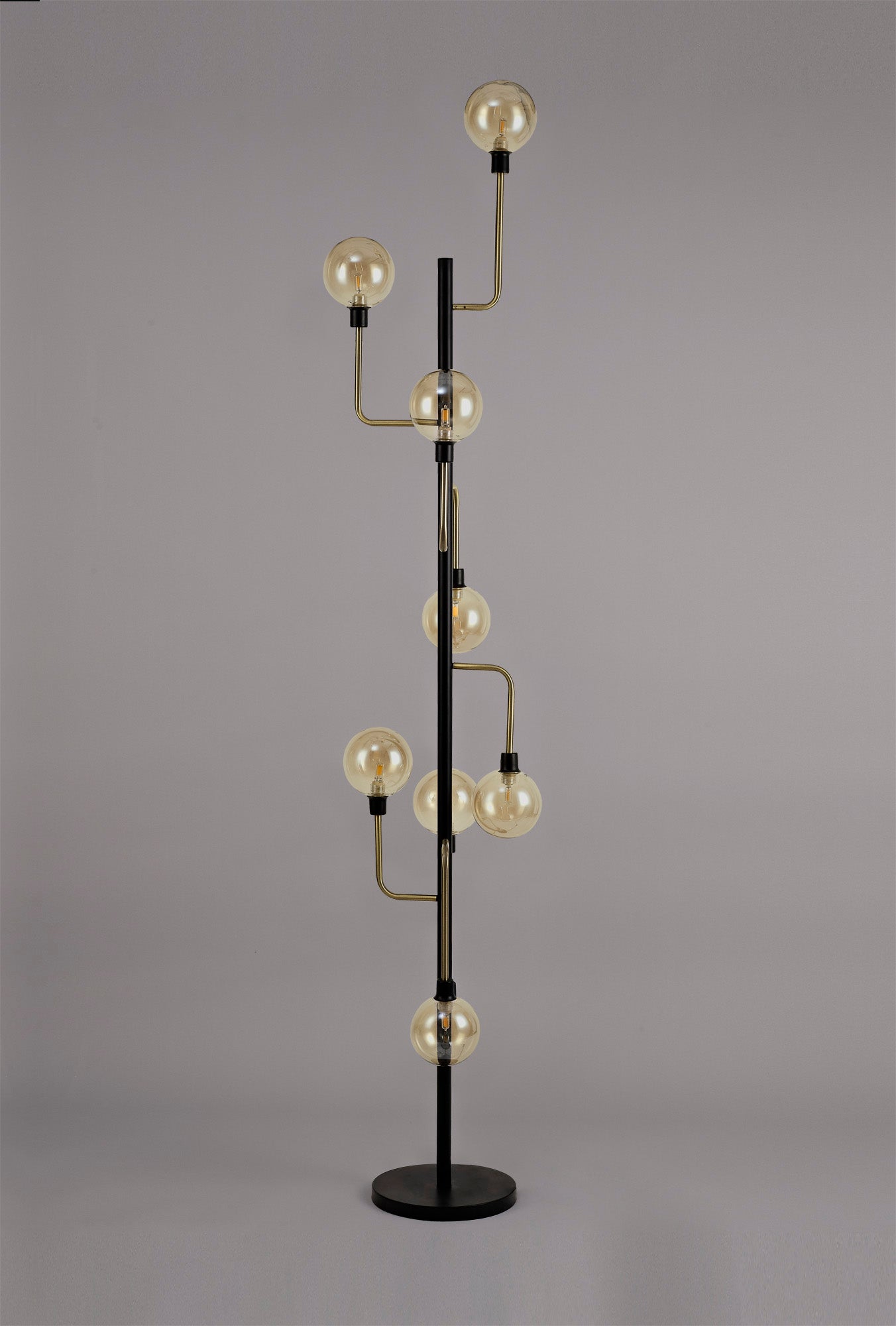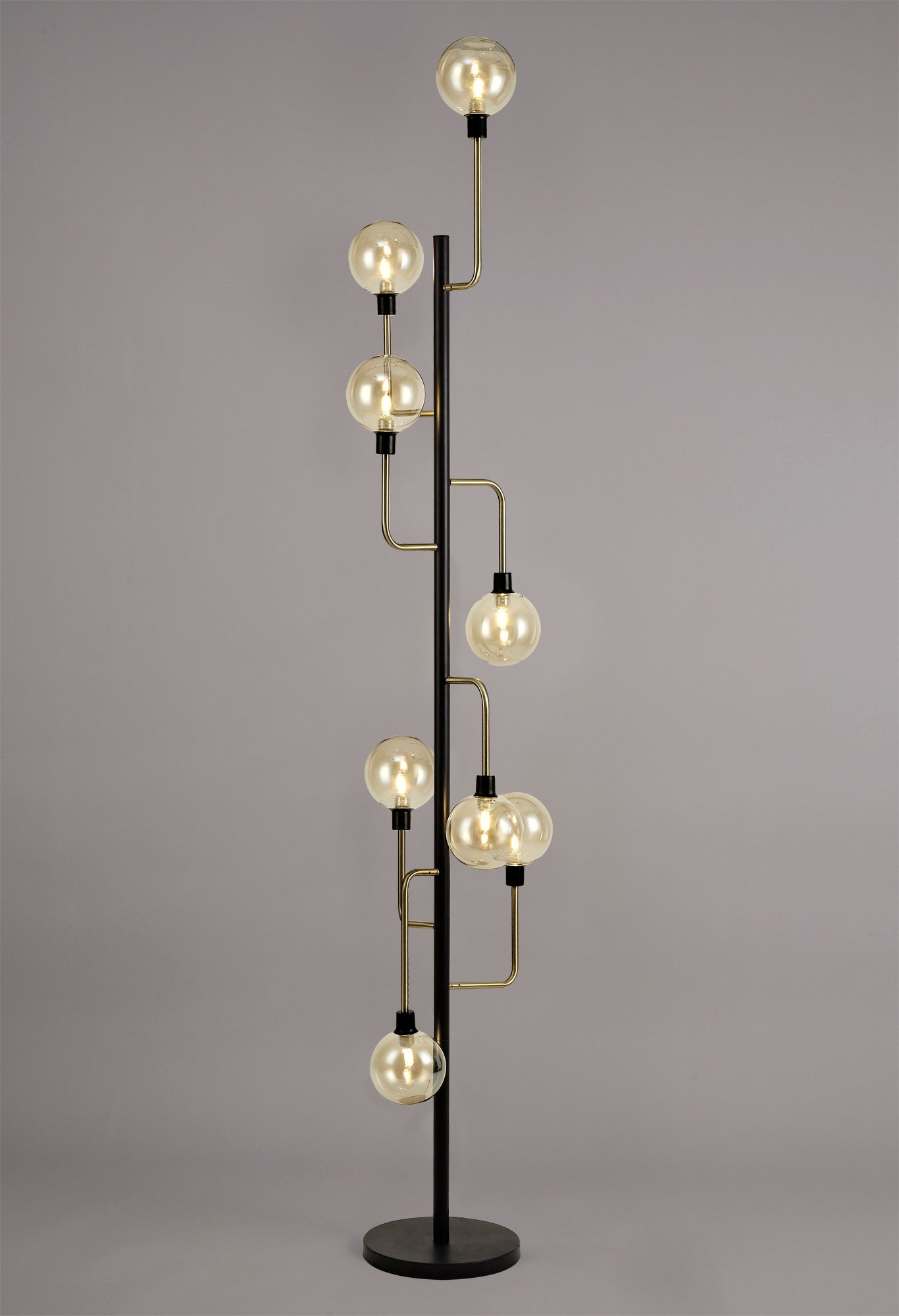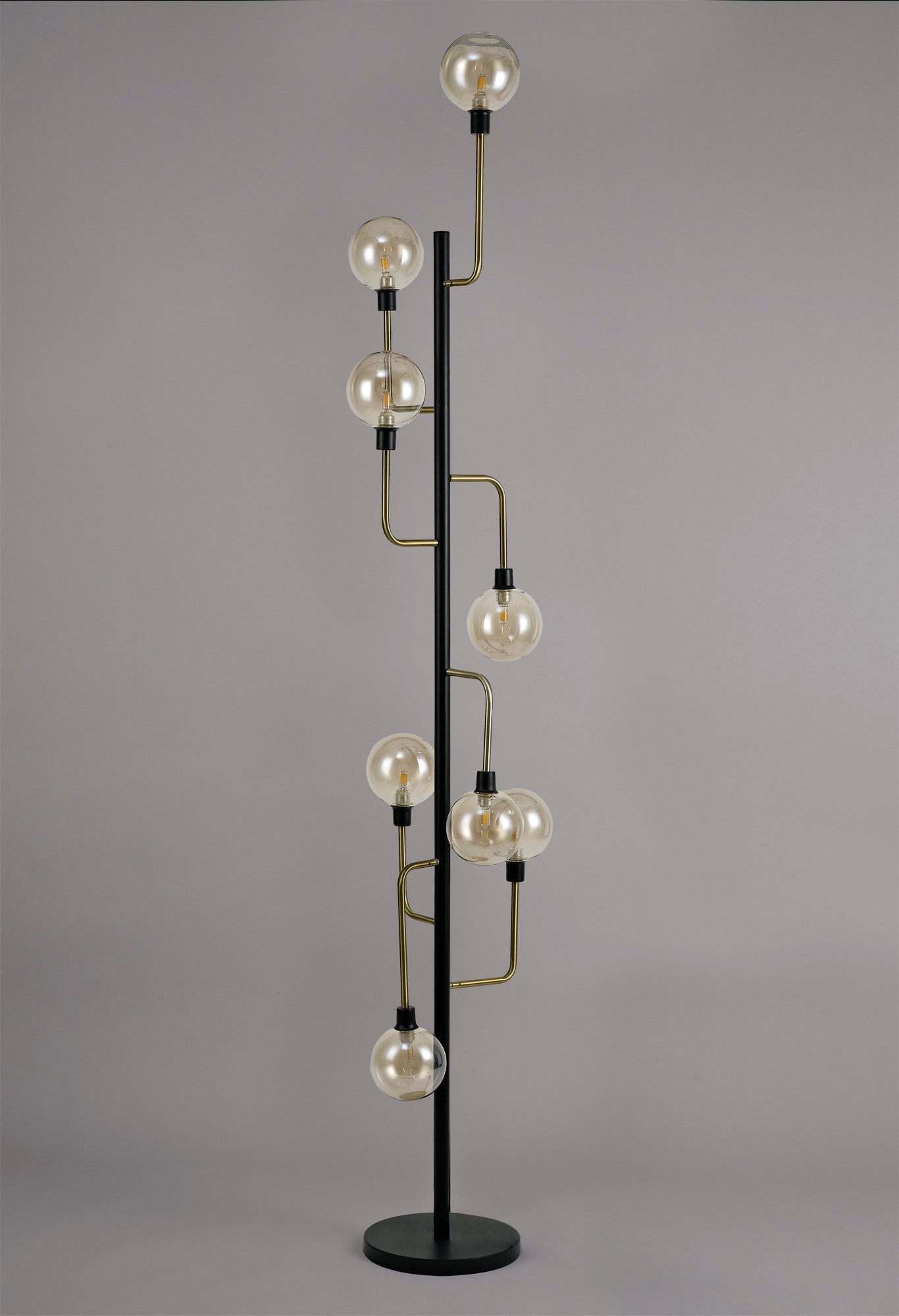 Denon Floor Lamp, 8 Light G9, Matt Black/Antique Brass/Cognac Glass