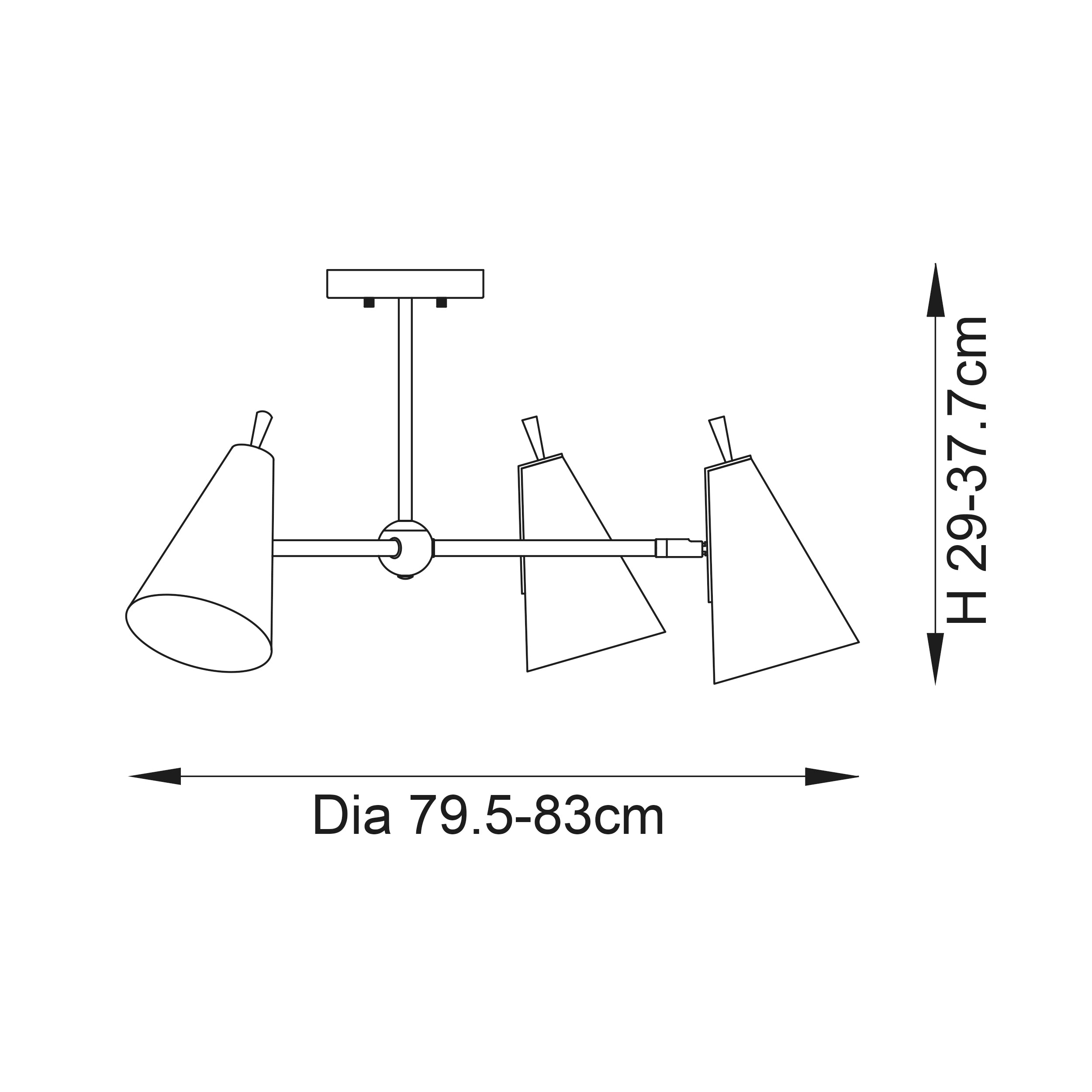 Lightologist Matt antique brass plate & matt black Multi arm lamp Semi flush Light