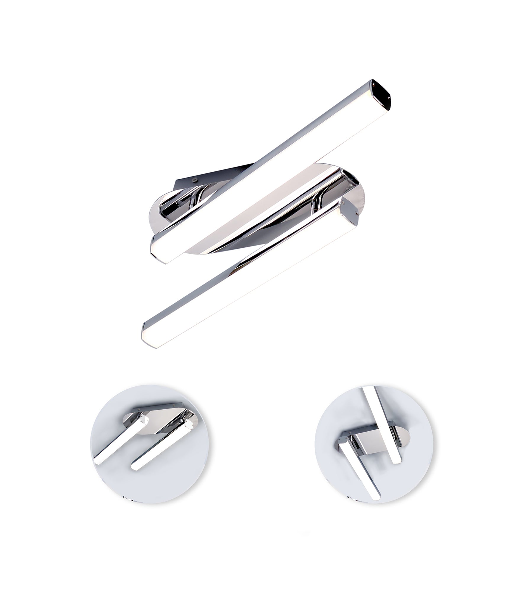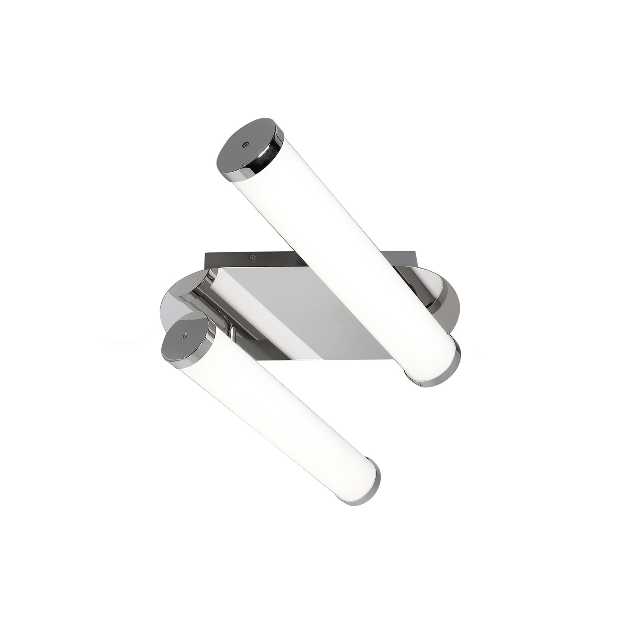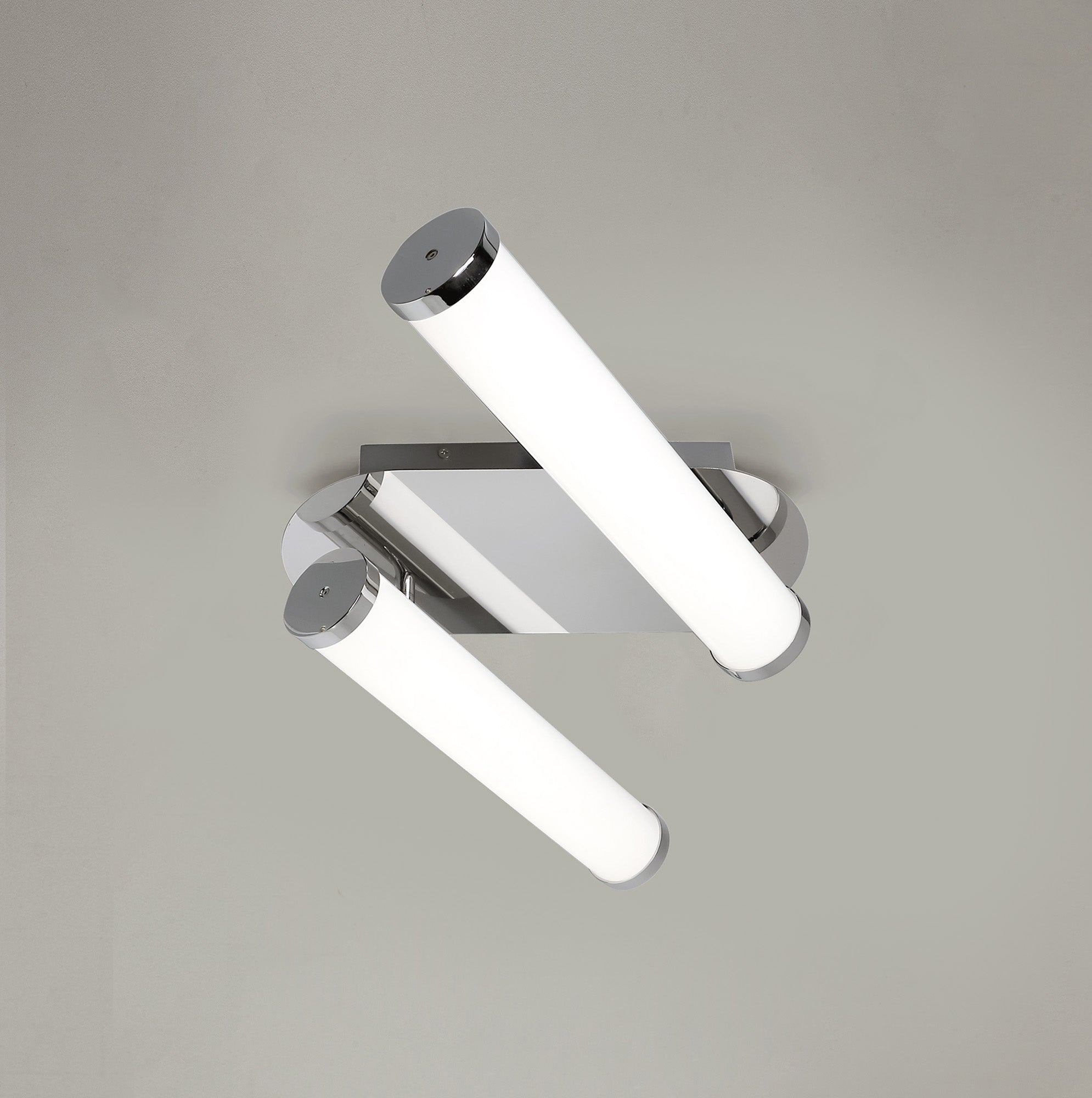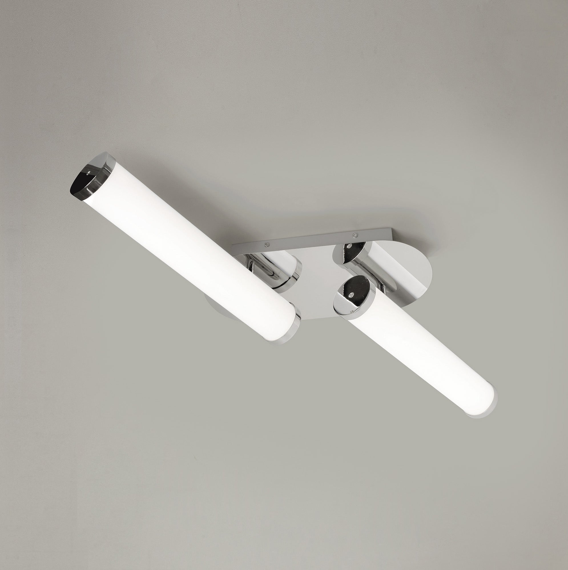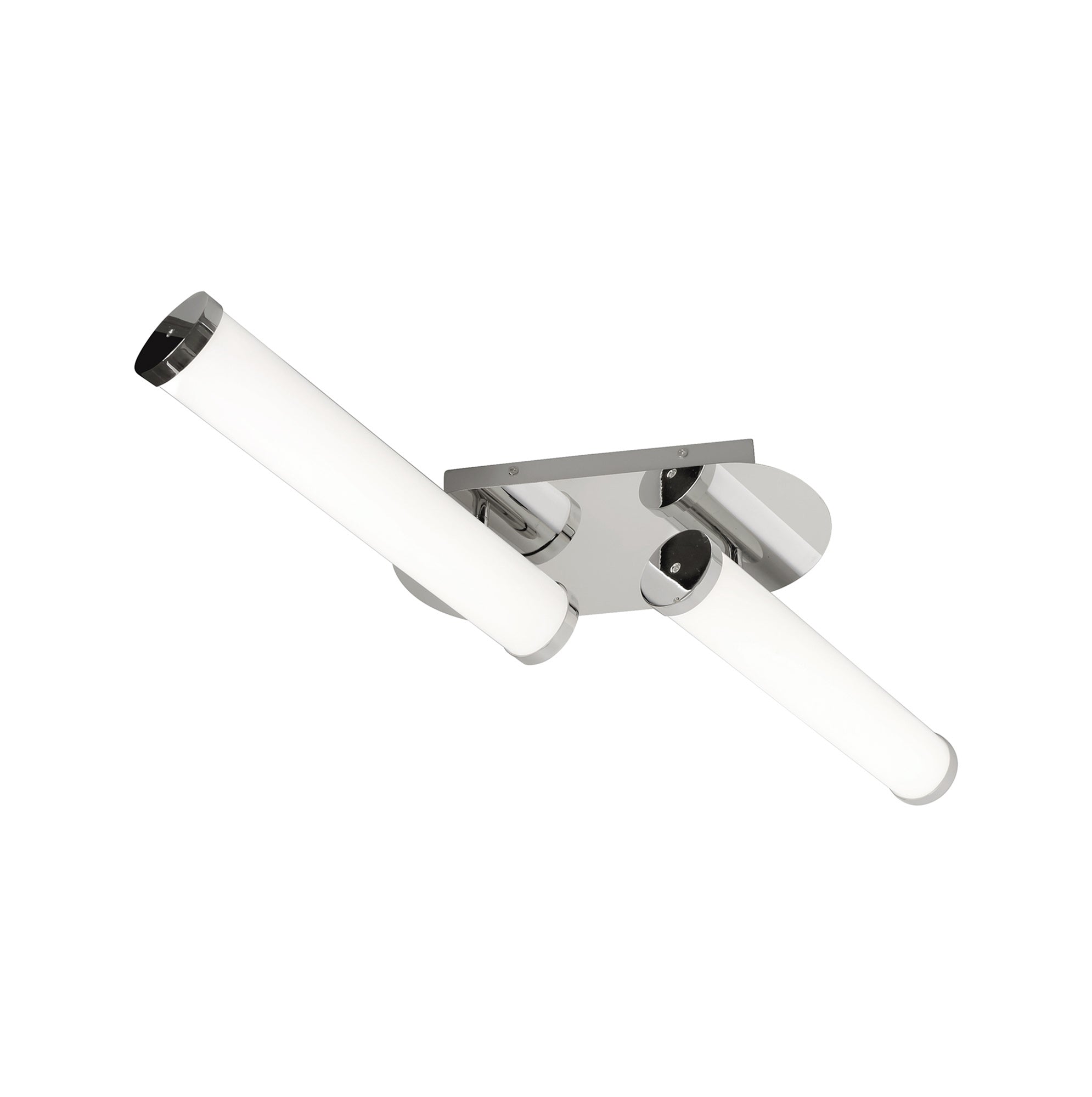 Tela's tubular opal white diffusers ensure a complete ambient dispersal of lumination from the integral LEDs. The cool 4000K colour of the LEDs is the ideal temperature for IP44 rated bathroom fixtures where a bright clearer light is required. Three various wall lamps and a ceiling light are finished in polished chrome giving a further modern touch to the collection.