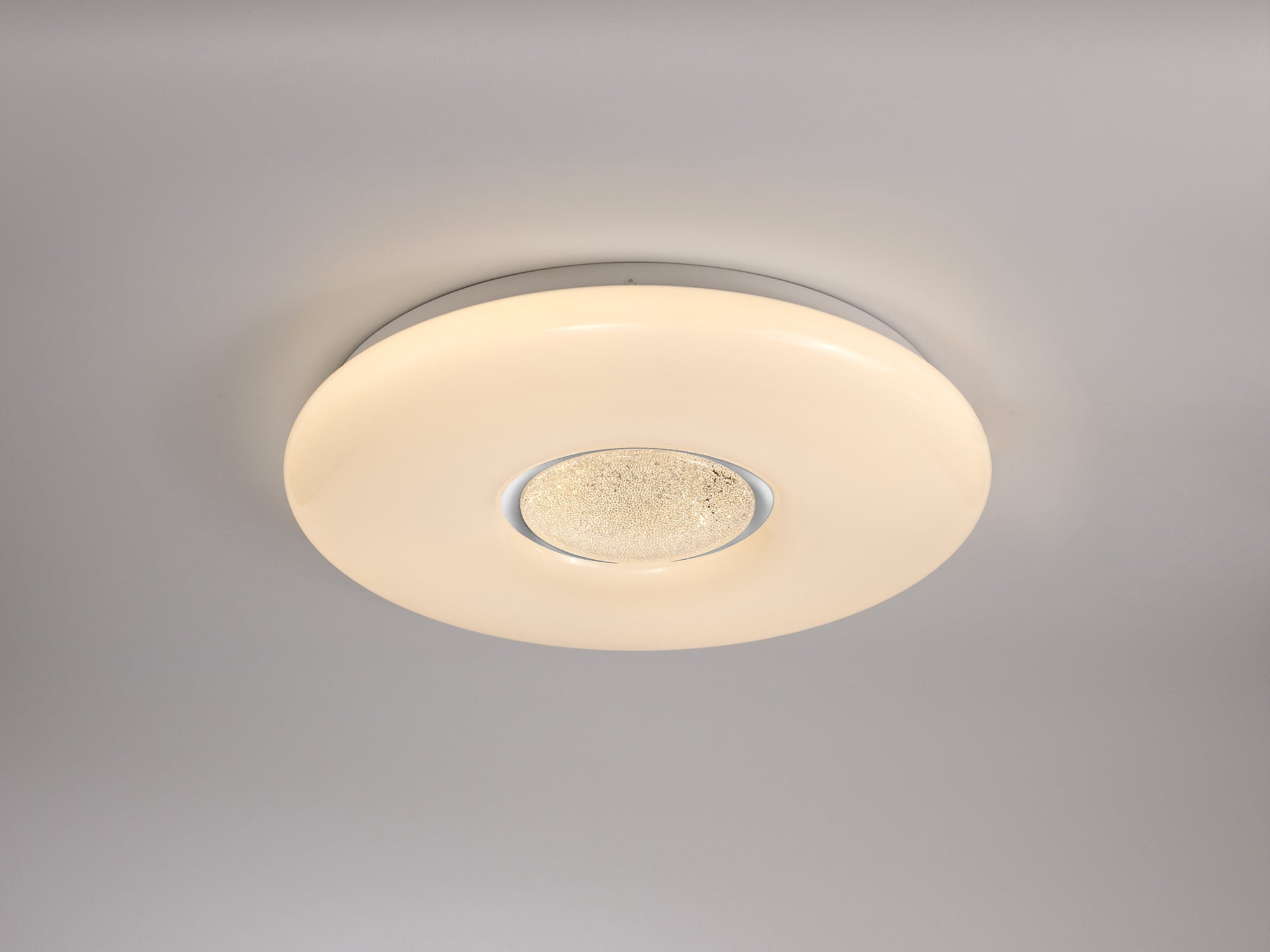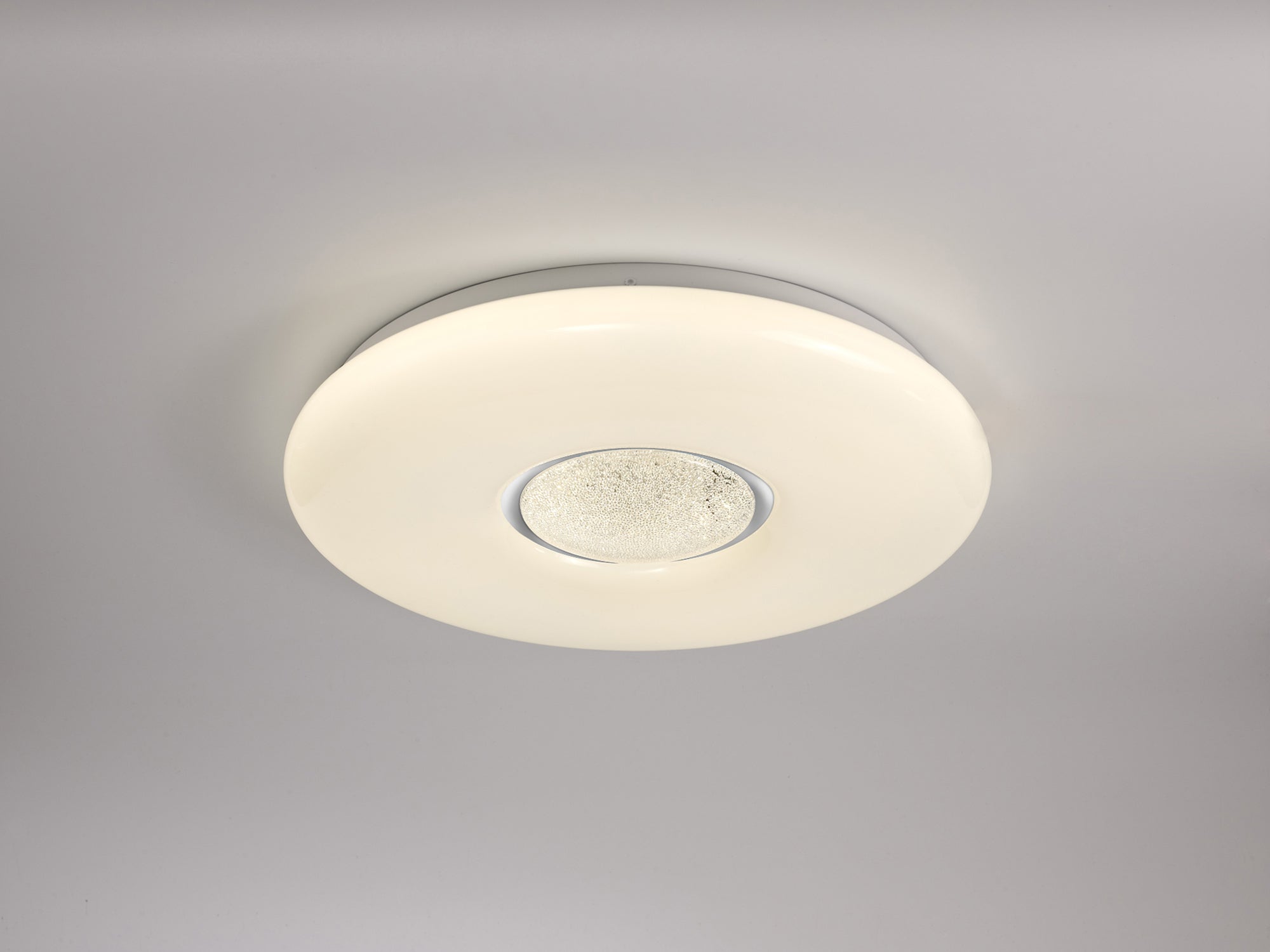 This sleek modern design provides an ideal energy saving option for a low ceiling space. The doughnut shaped opal white diffuser has a smooth glossy finish to complement the distinctive crystalline centre, adding a touch of elegance to a seemingly simple fixture. Offrineg even greater appeal, the integral LEDs have a dimmable function which can be adjusted with the CCT switchable function. Adaptability partnered with modern flare make Moderna a must have range.