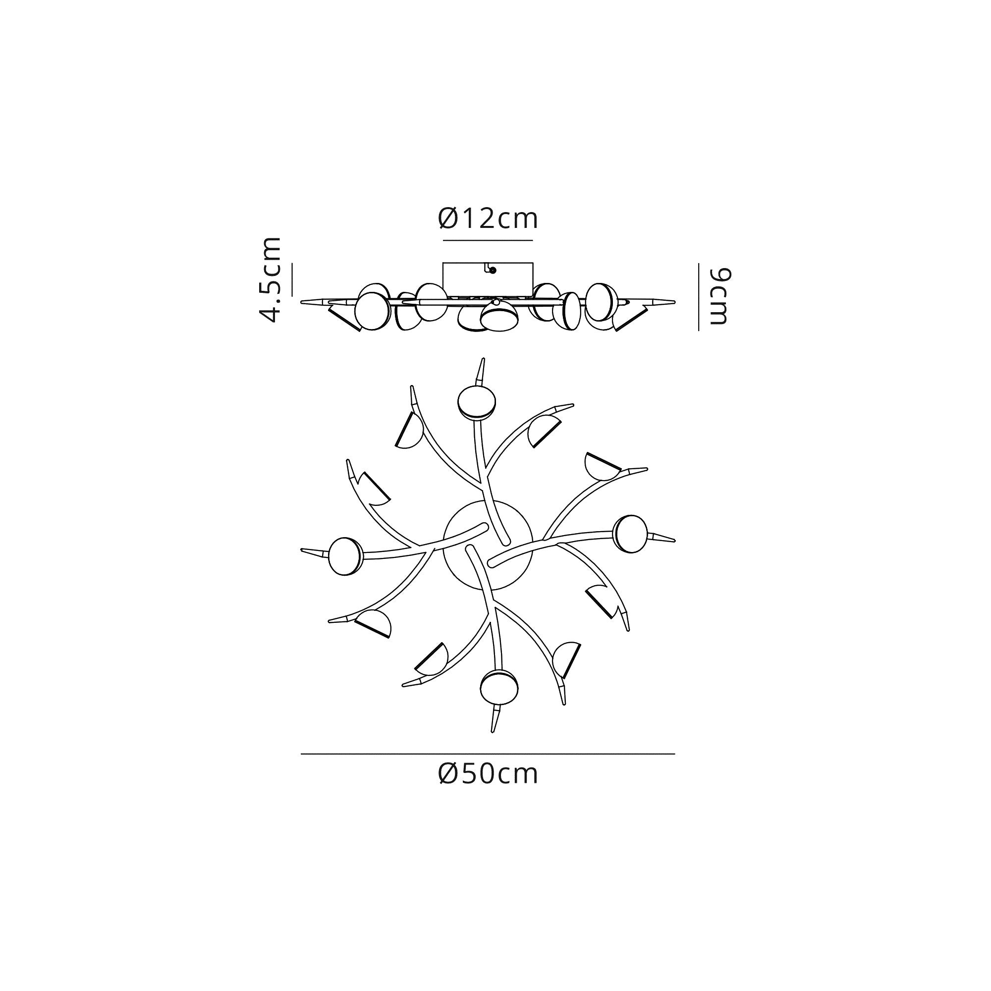 Extol 12 Light Semi-Flush, 12 x 3W LED, 3000K, 1980lm, Black/Antique Brass, 3yrs Warranty