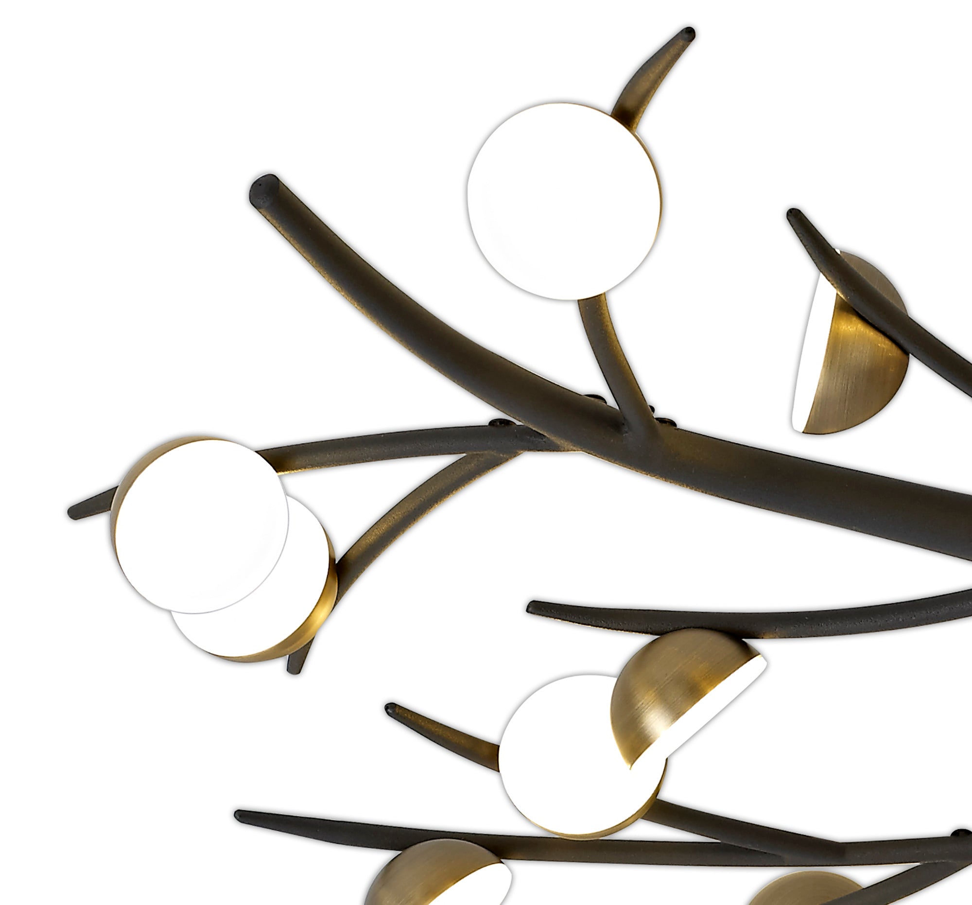 The harmoniously placed, round LED heads are distributed along the sleek fluidic lines to create an art nouveau concept bringing the essence of nature into your home. High quality LED technology partnered with the form of the fixtures and black/antique brass finish provides an idyllic ovolance. From flush ceiling lights, to a linear pendant and wall lights, Extol offers a comprehensive range of lighting to suit your room setting.